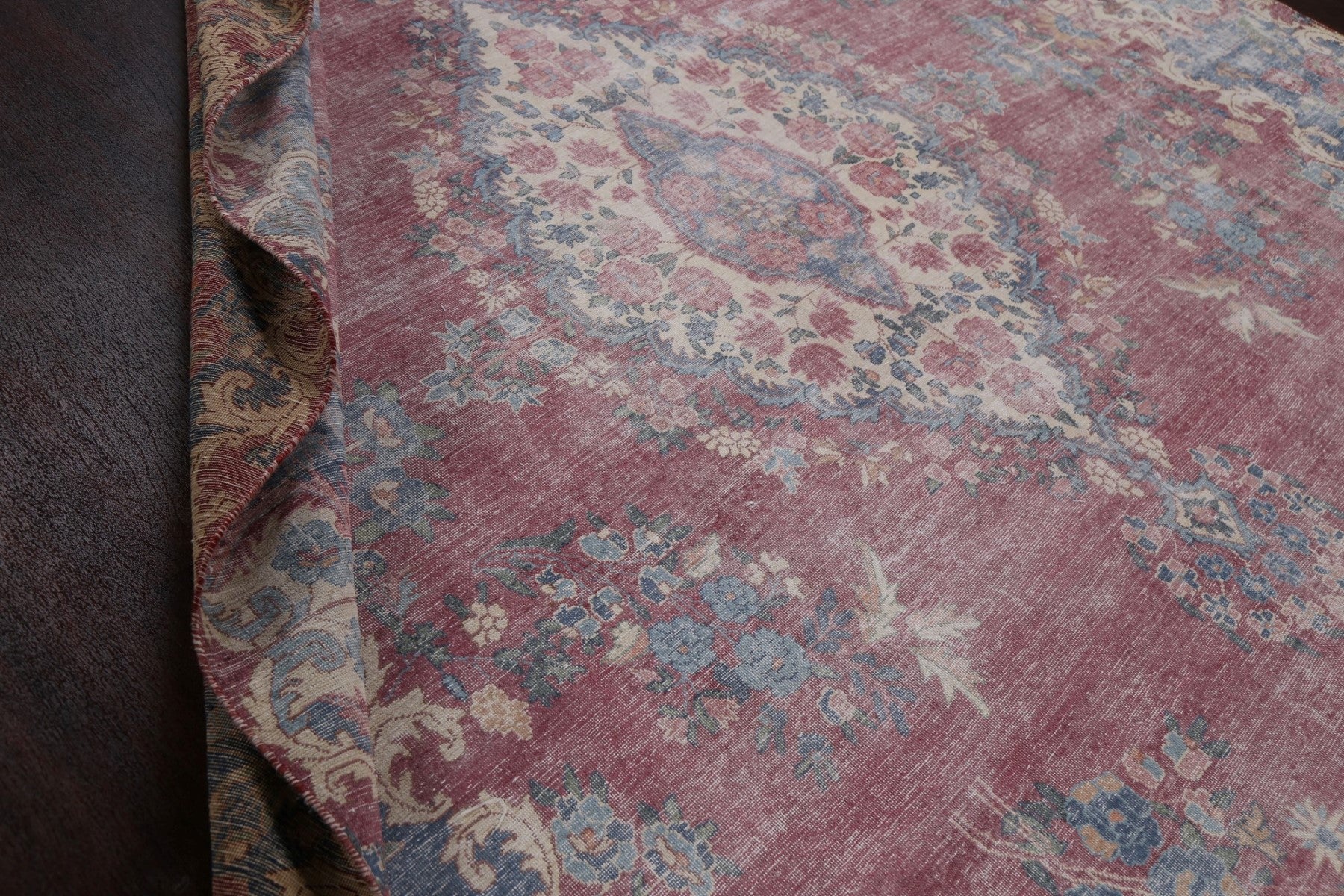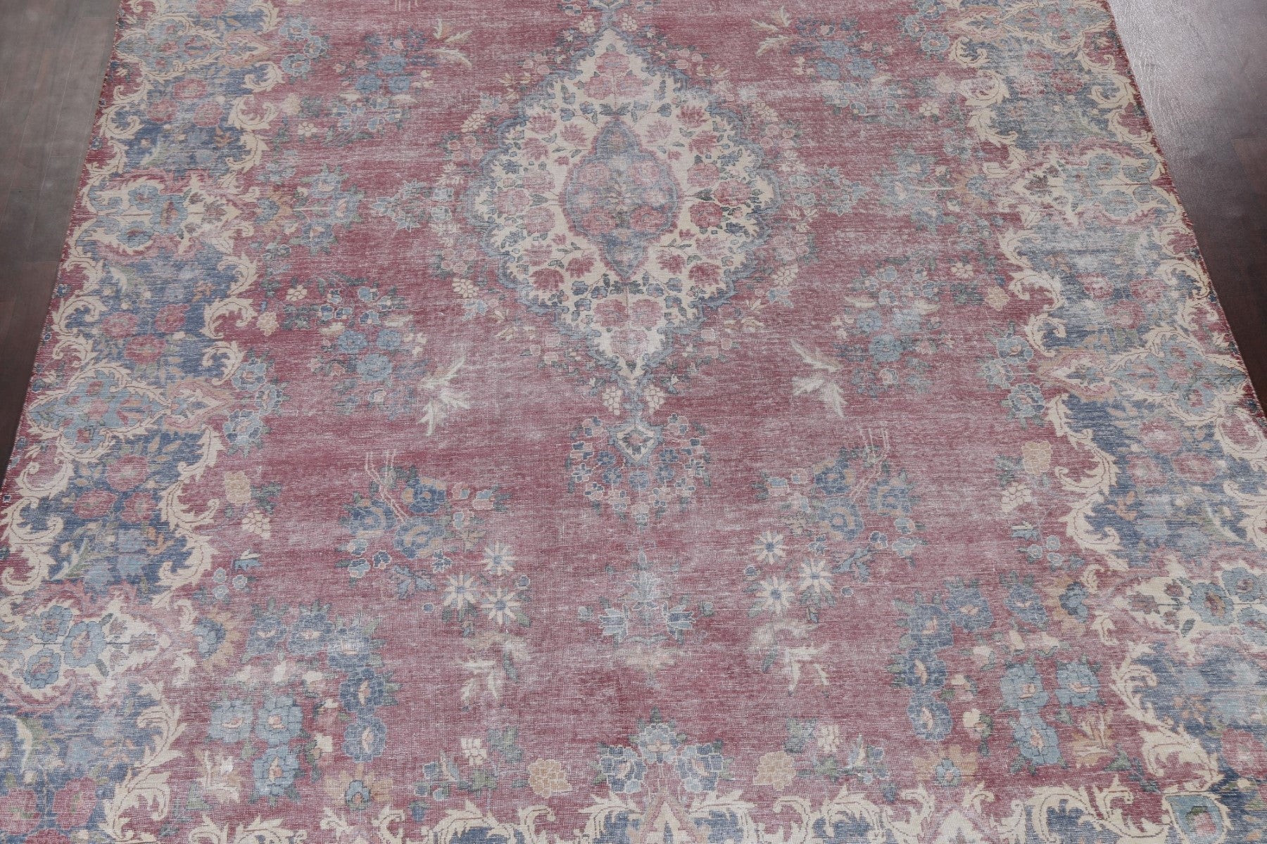 A Beautiful Genuine Persia ( Persia ) Kerman rug is Hand Knotted by skillful weavers in Persia ( Persia ) with 100% Wool Material. This rug is in Very Good (Evenly Low Pile) condition. dimensions are 15' 0'' X 9' 11'' in foot and 457 X 302 in centimeter. the primary color is Purples.
