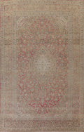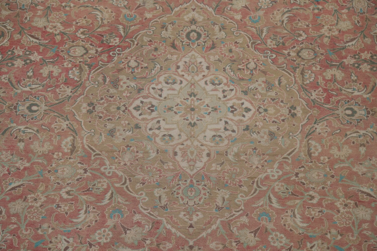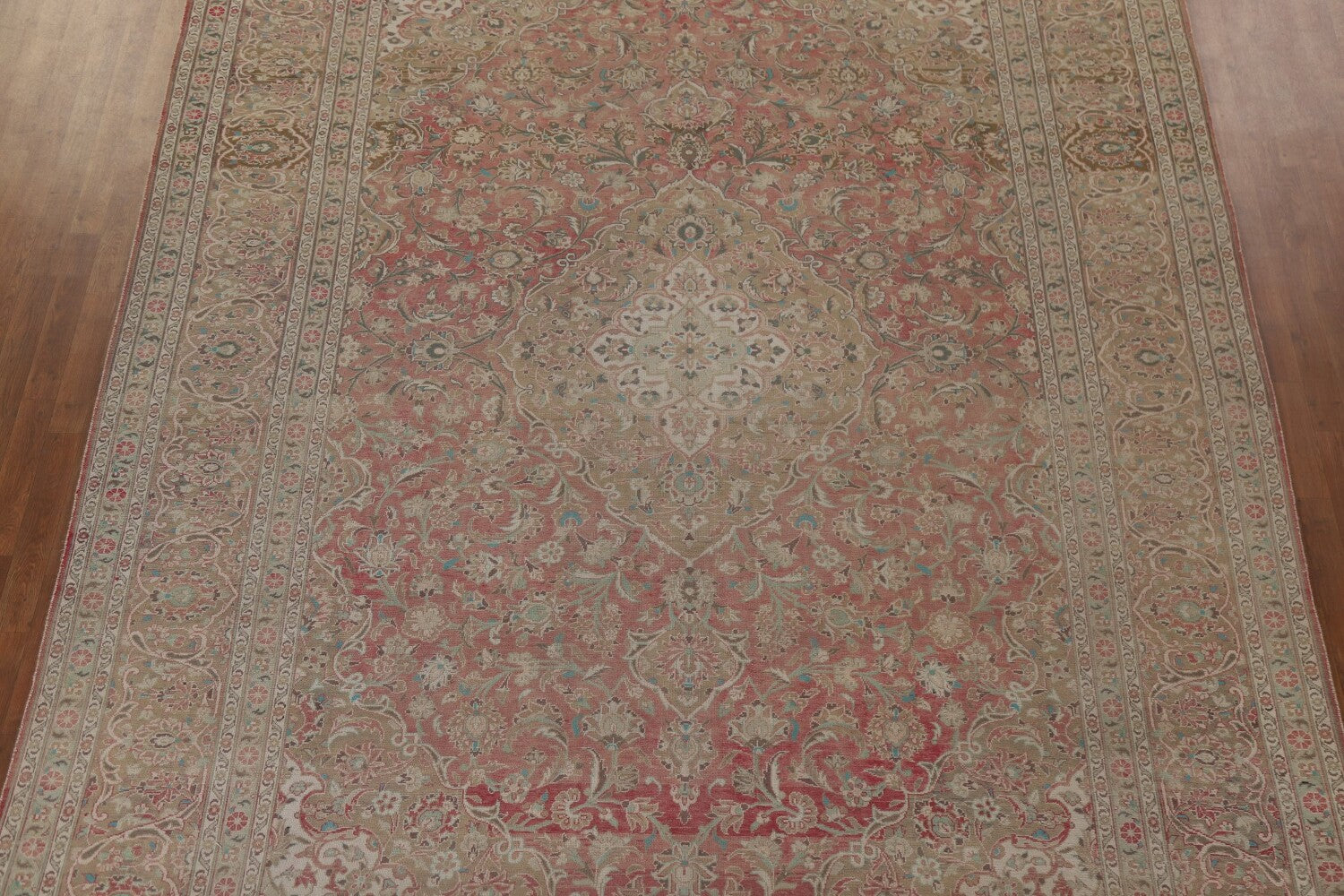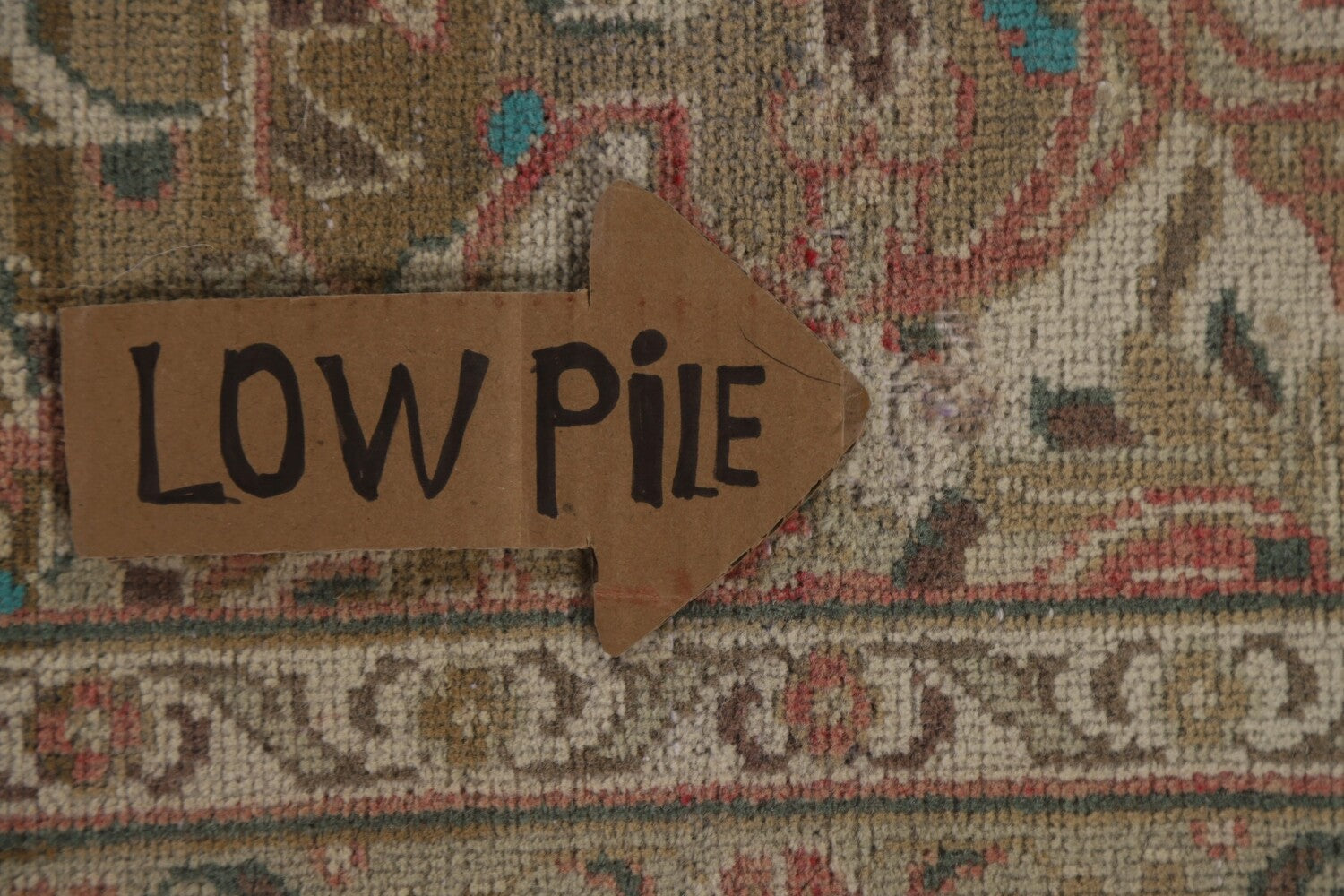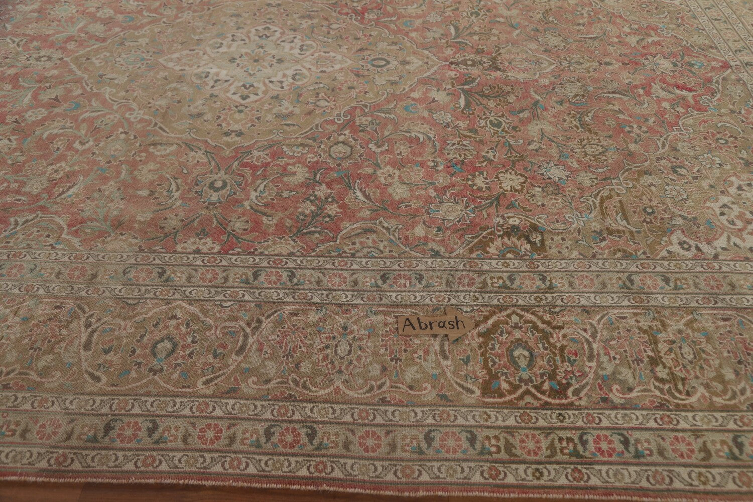 A Beautiful Genuine Persia ( Persia ) Mashad rug is Hand Knotted by skillful weavers in Persia ( Persia ) with 100% Wool Material. This rug is in Very Good (Low Pile-Abrash) condition. dimensions are 13' 9'' X 9' 7'' in foot and 419 X 292 in centimeter. the primary color is Pink.