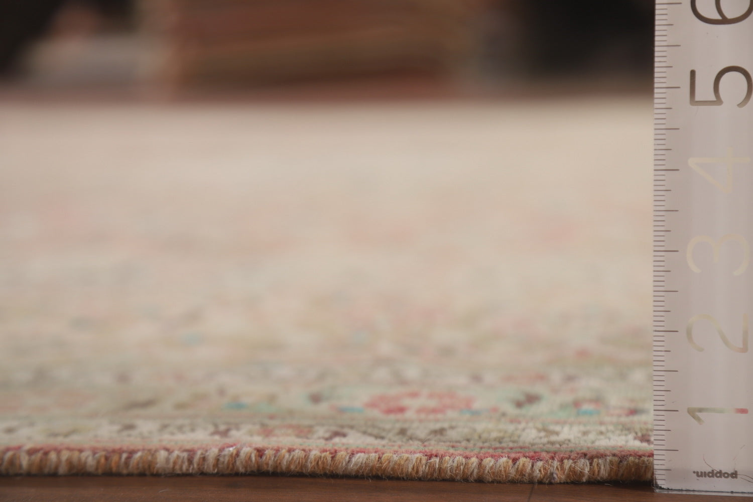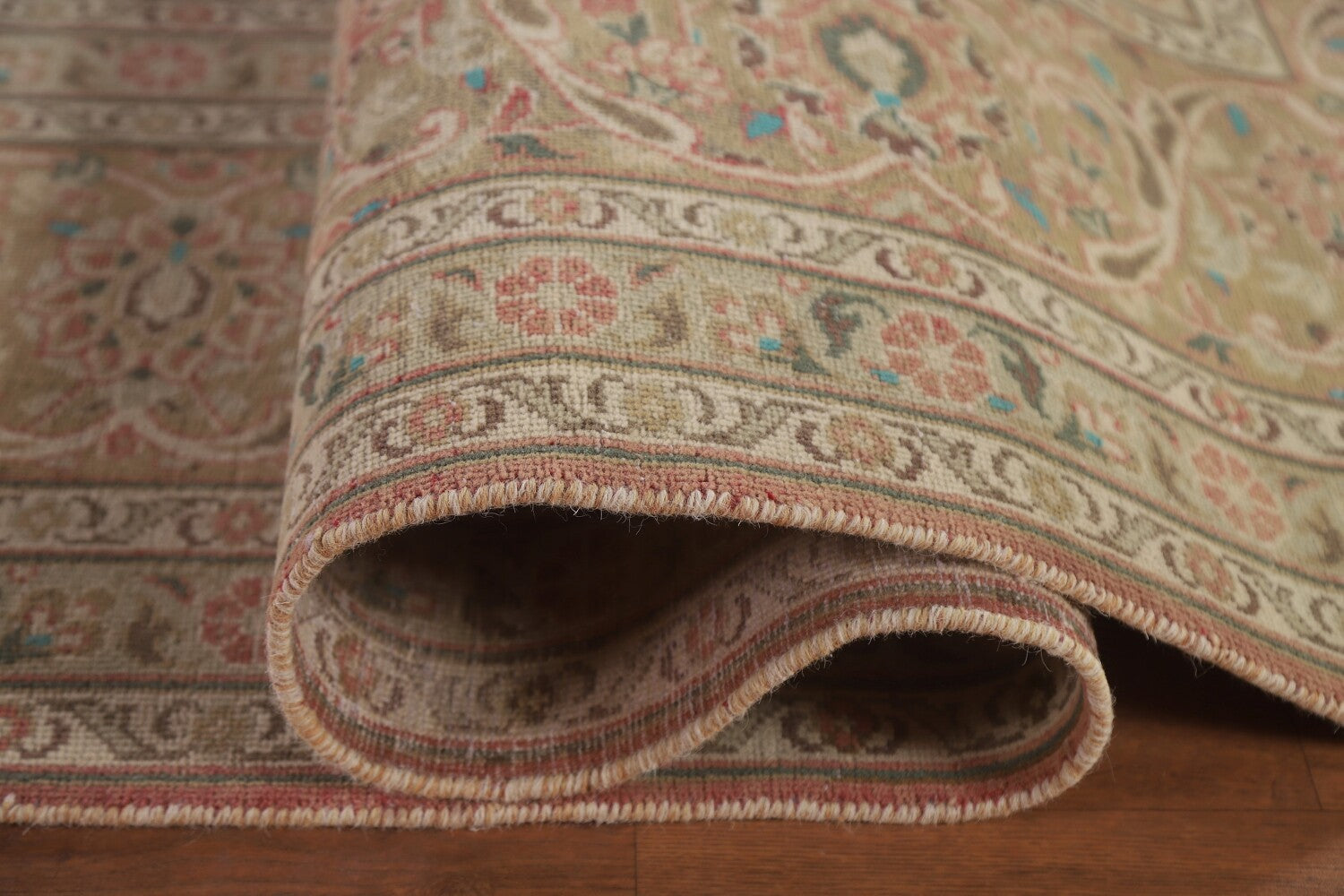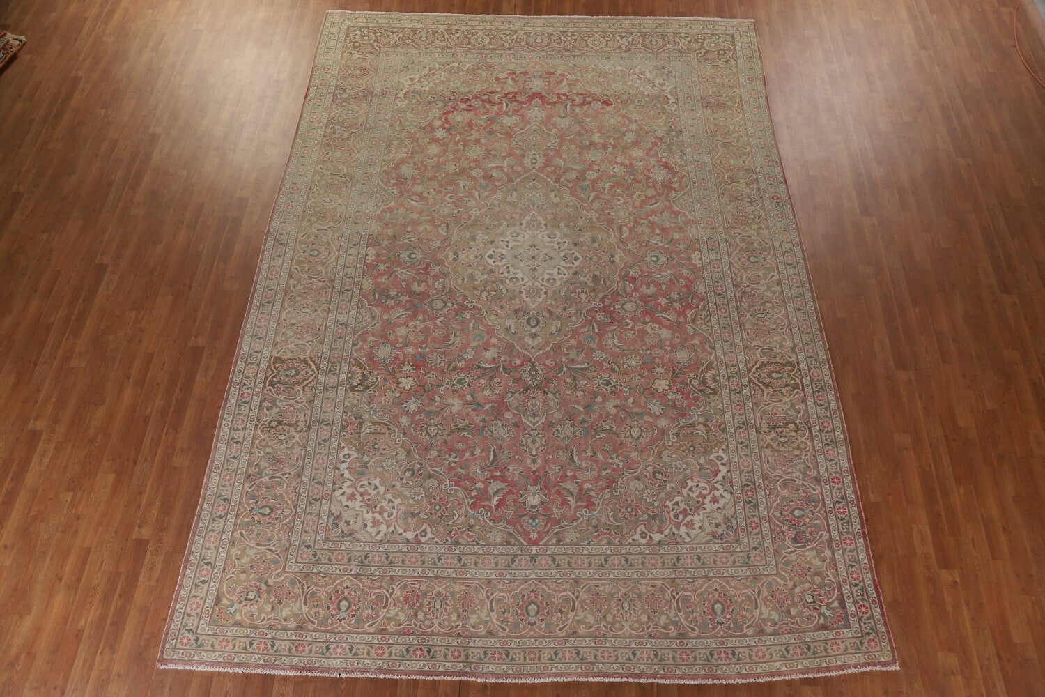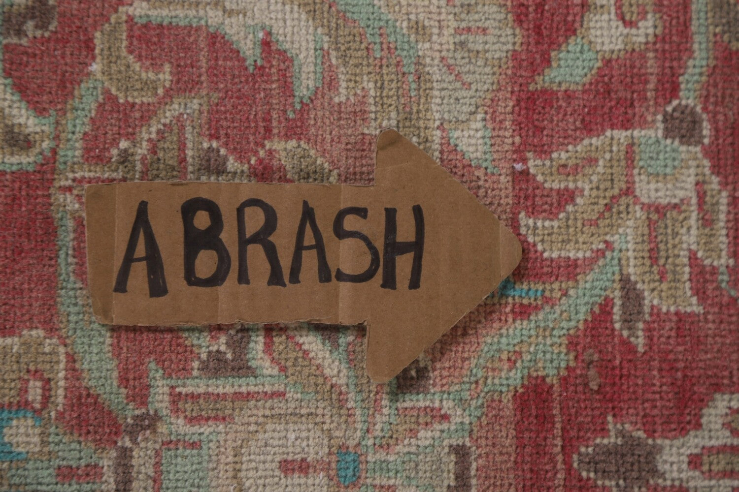 A Beautiful Genuine Persia ( Persia ) Mashad rug is Hand Knotted by skillful weavers in Persia ( Persia ) with 100% Wool Material. This rug is in Very Good (Low Pile-Abrash) condition. dimensions are 13' 9'' X 9' 7'' in foot and 419 X 292 in centimeter. the primary color is Pink.