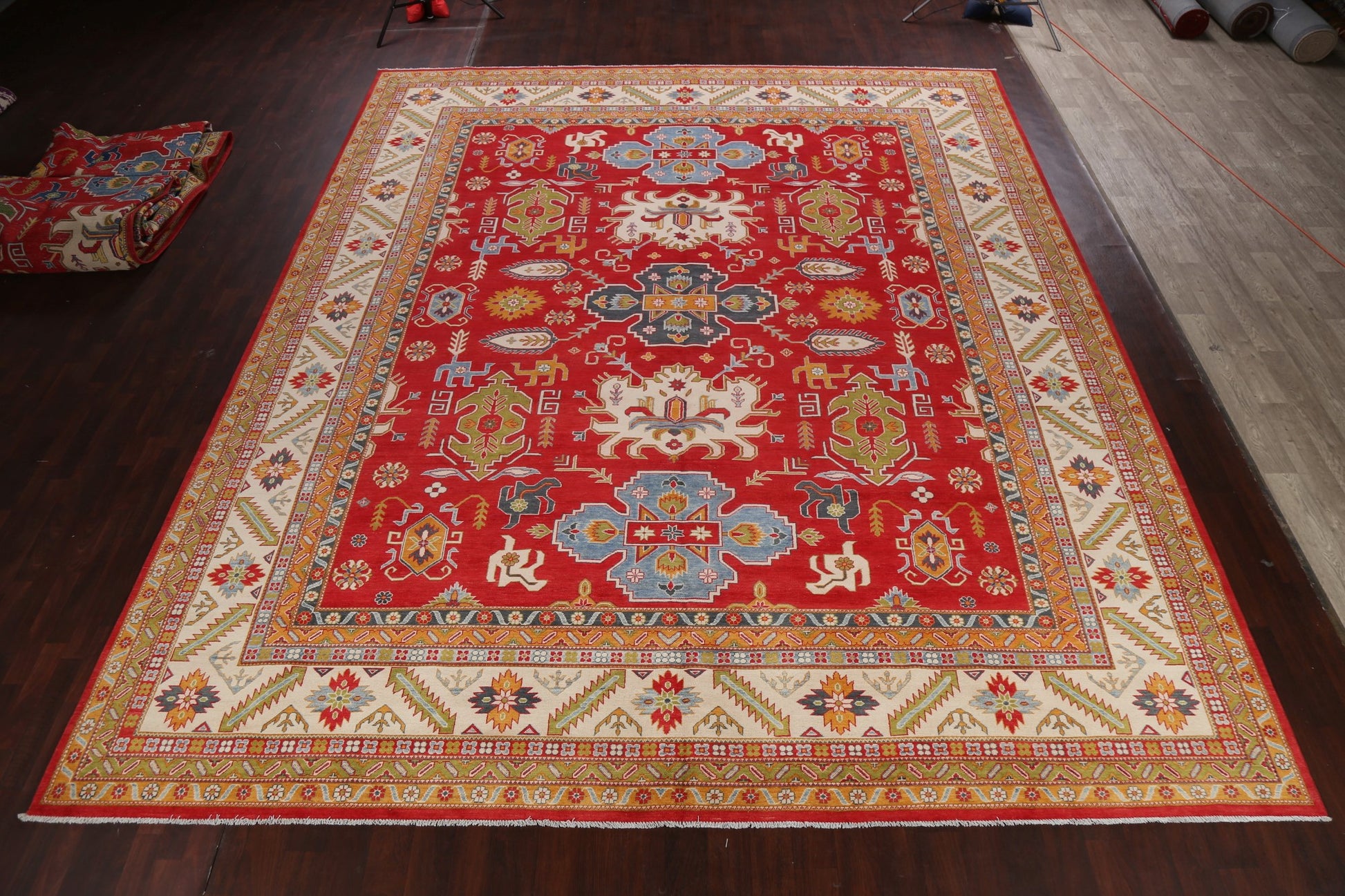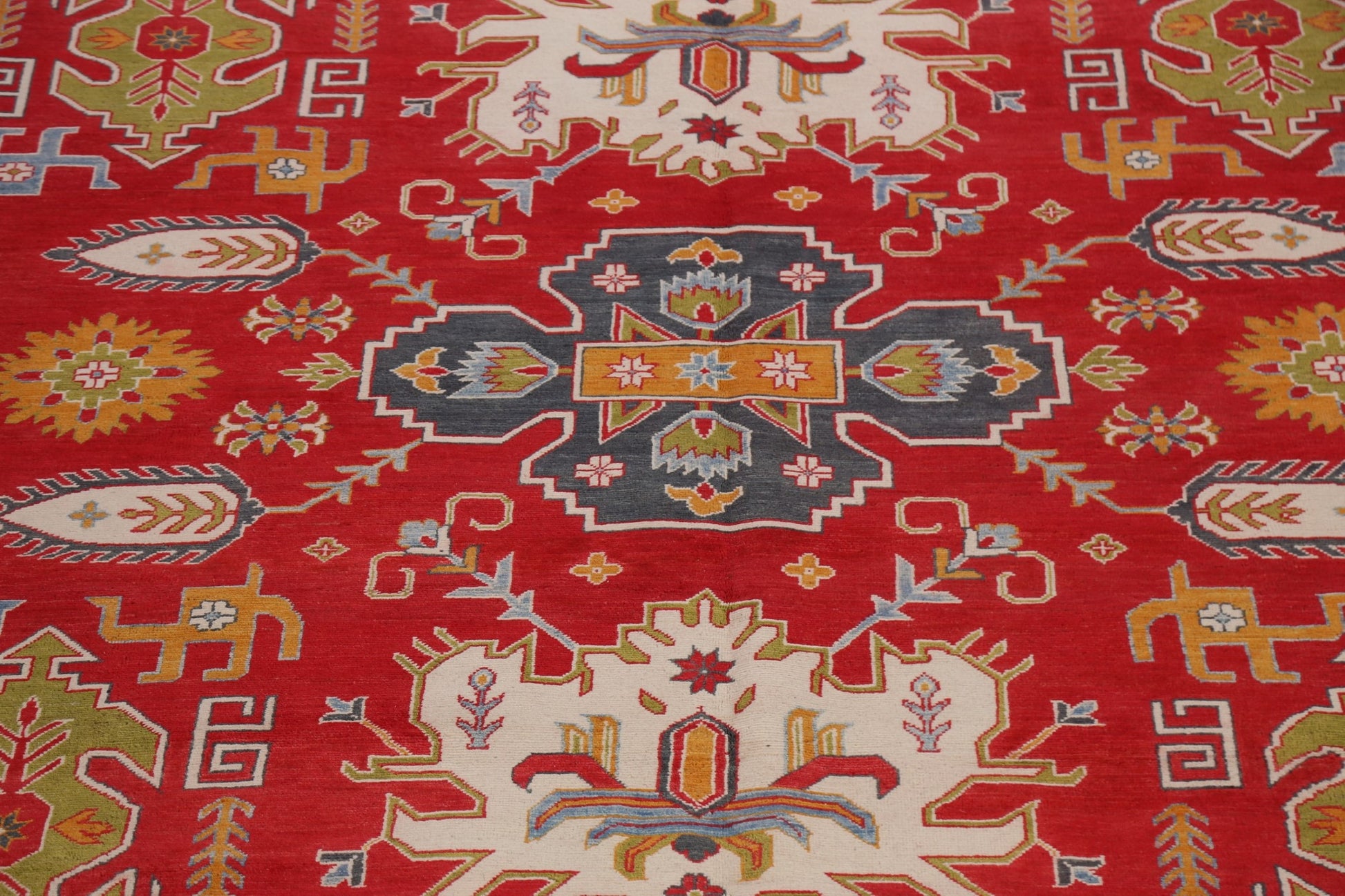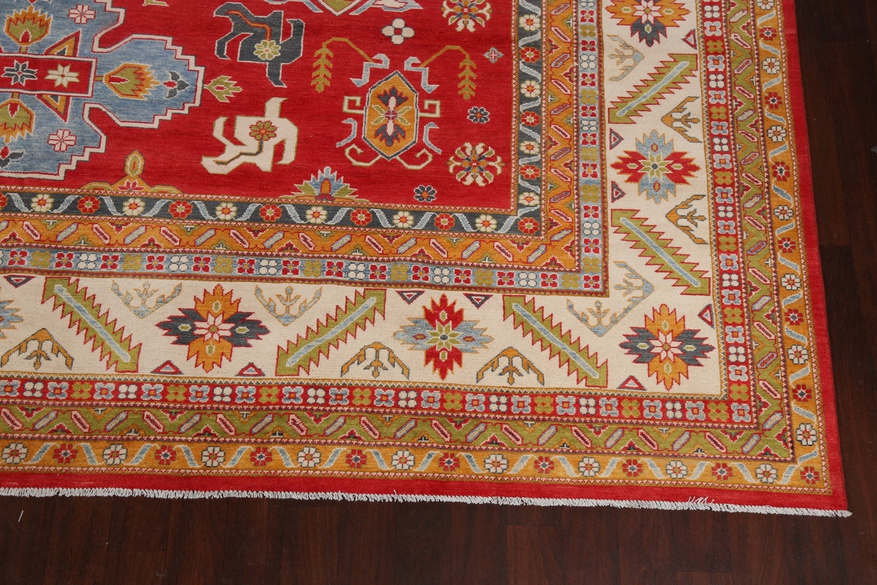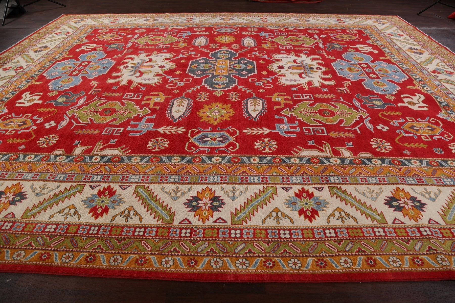 A Beautiful Genuine Pakistan Kazak rug is Hand Knotted by skillful weavers in Pakistan with 100% Wool Material. This rug is in New, First Quality condition. dimensions are 15' 11'' X 13' 2'' in foot and 485 X 401 in centimeter. the primary color is Red.