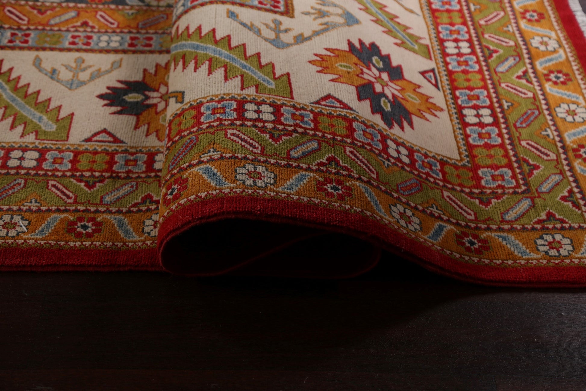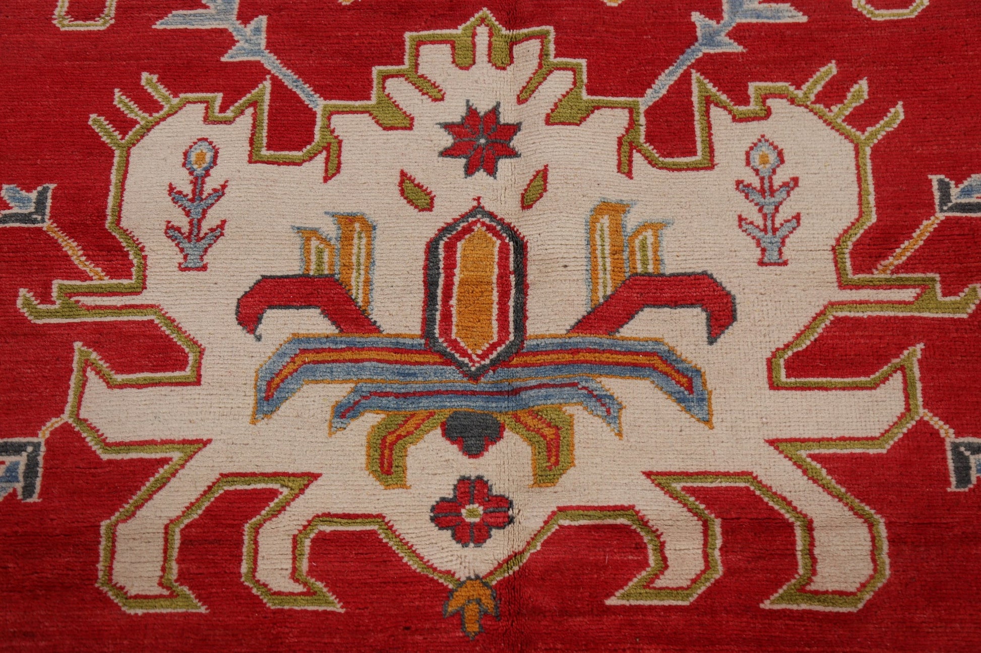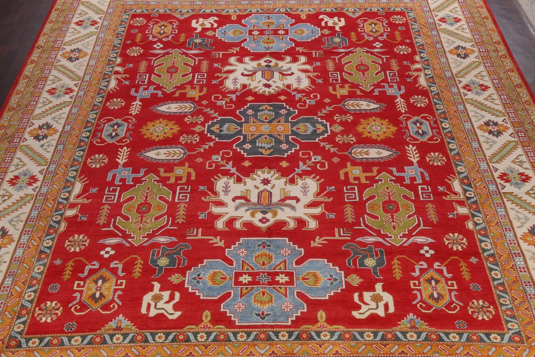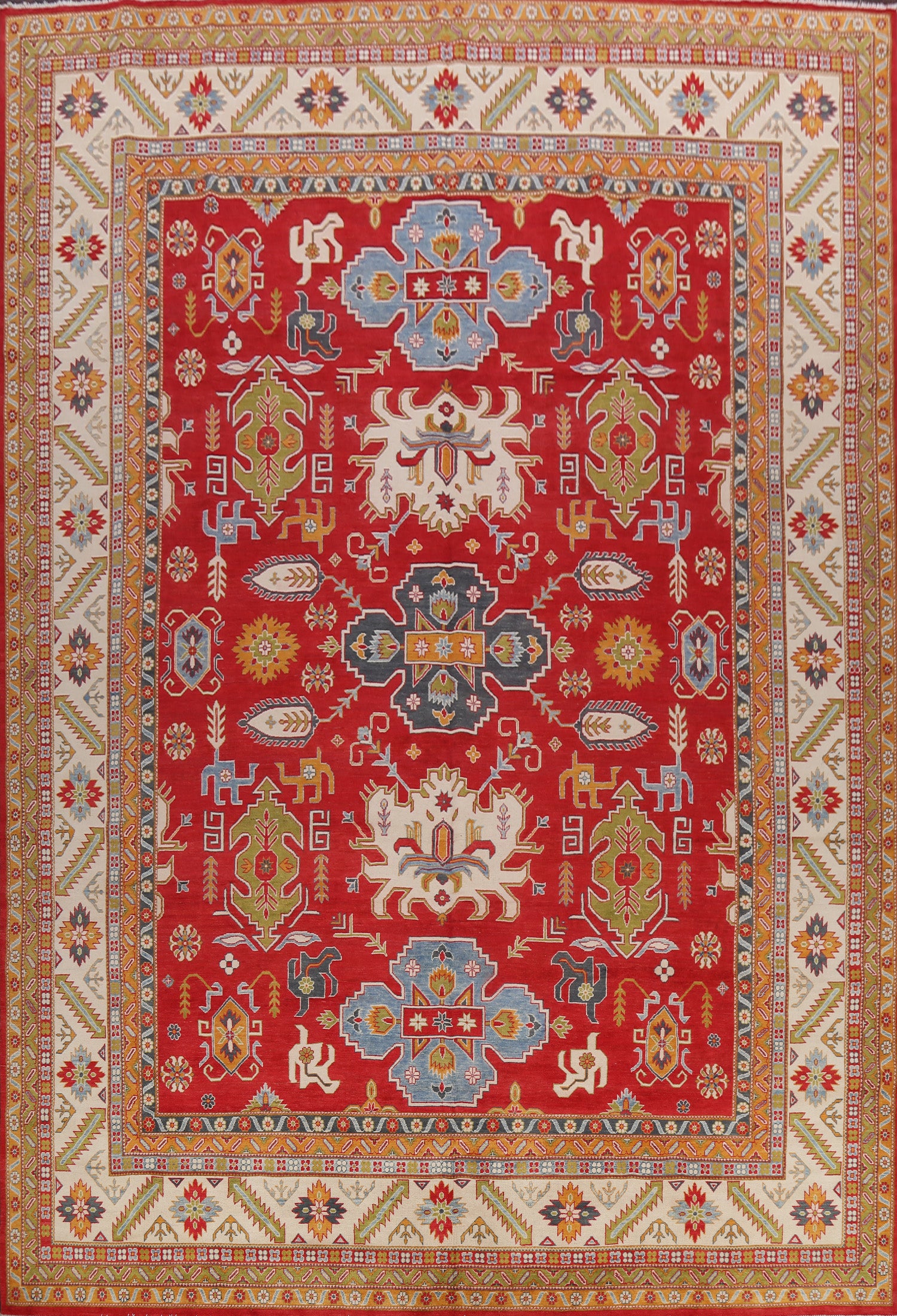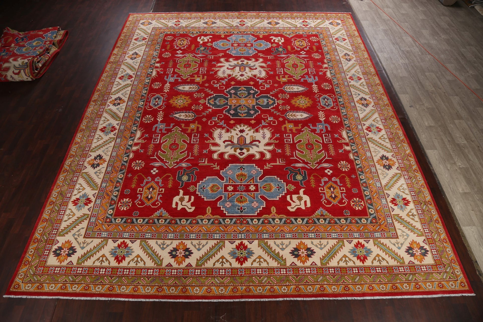 A Beautiful Genuine Pakistan Kazak rug is Hand Knotted by skillful weavers in Pakistan with 100% Wool Material. This rug is in New, First Quality condition. dimensions are 15' 11'' X 13' 2'' in foot and 485 X 401 in centimeter. the primary color is Red.
