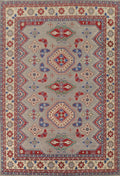 A Beautiful Genuine Pakistan Kazak rug is Hand Knotted by skillful weavers in Pakistan with 100% Wool Material. This rug is in New, First Quality condition. dimensions are 13' 9'' X 9' 9'' in foot and 419 X 297 in centimeter. the primary color is Greys & Charcoal.