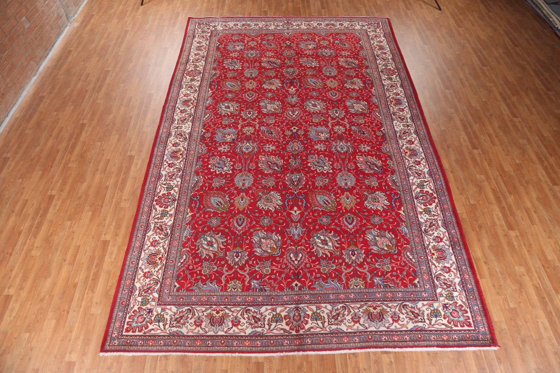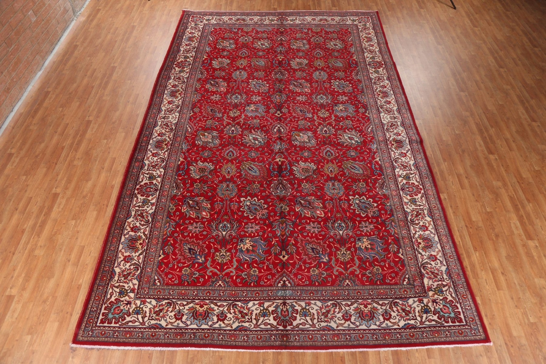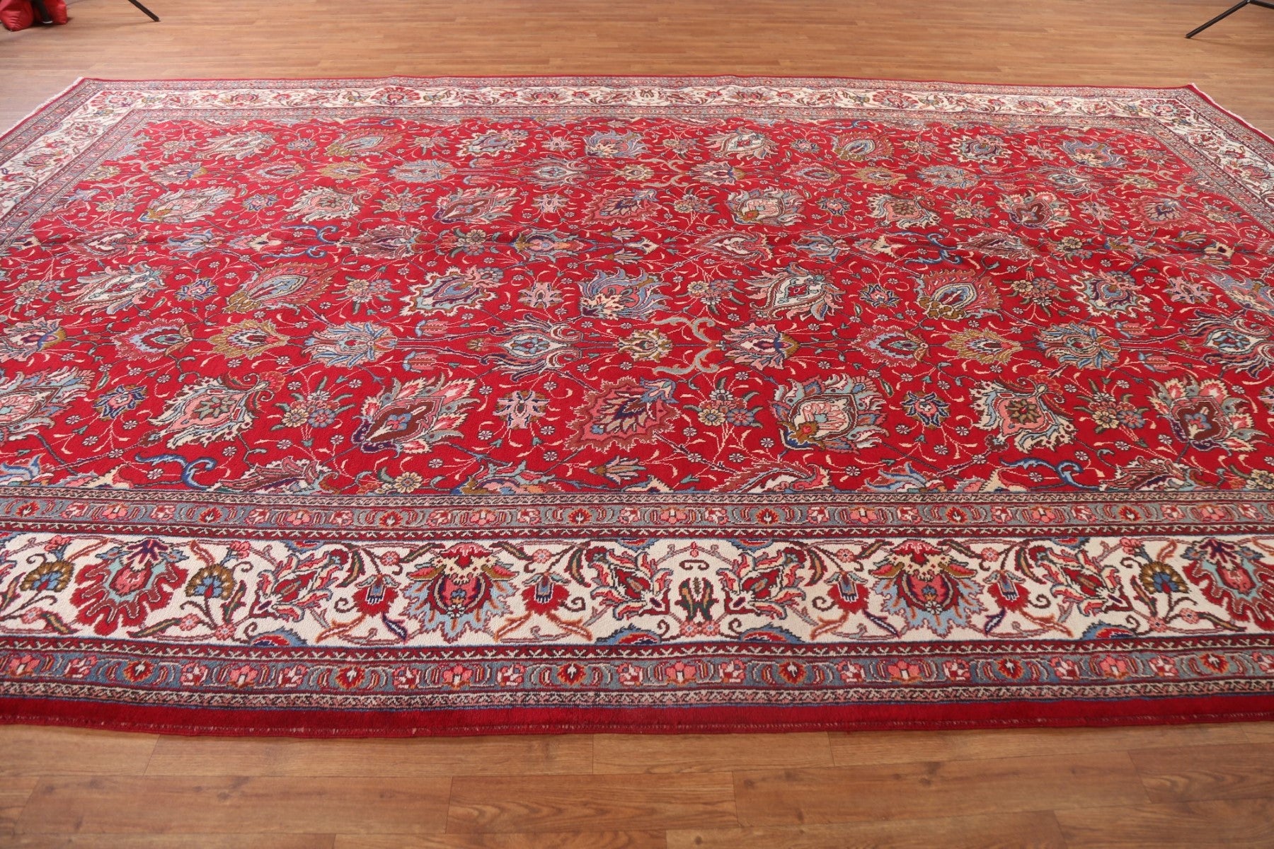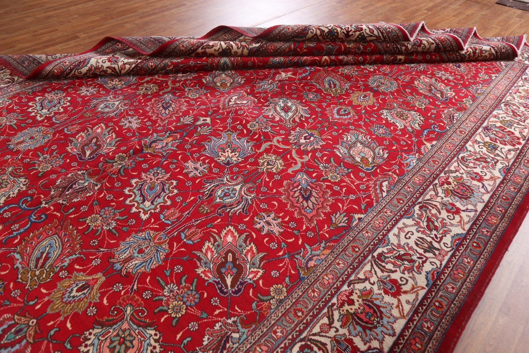 A Beautiful Genuine Persia ( Persia ) Tabriz rug is Hand Knotted by skillful weavers in Persia ( Persia ) with 100% Wool Material. This rug is in New, First Quality condition. dimensions are 15' 7'' X 9' 8'' in foot and 475 X 295 in centimeter. the primary color is Red.