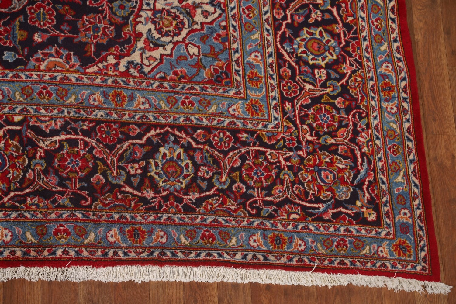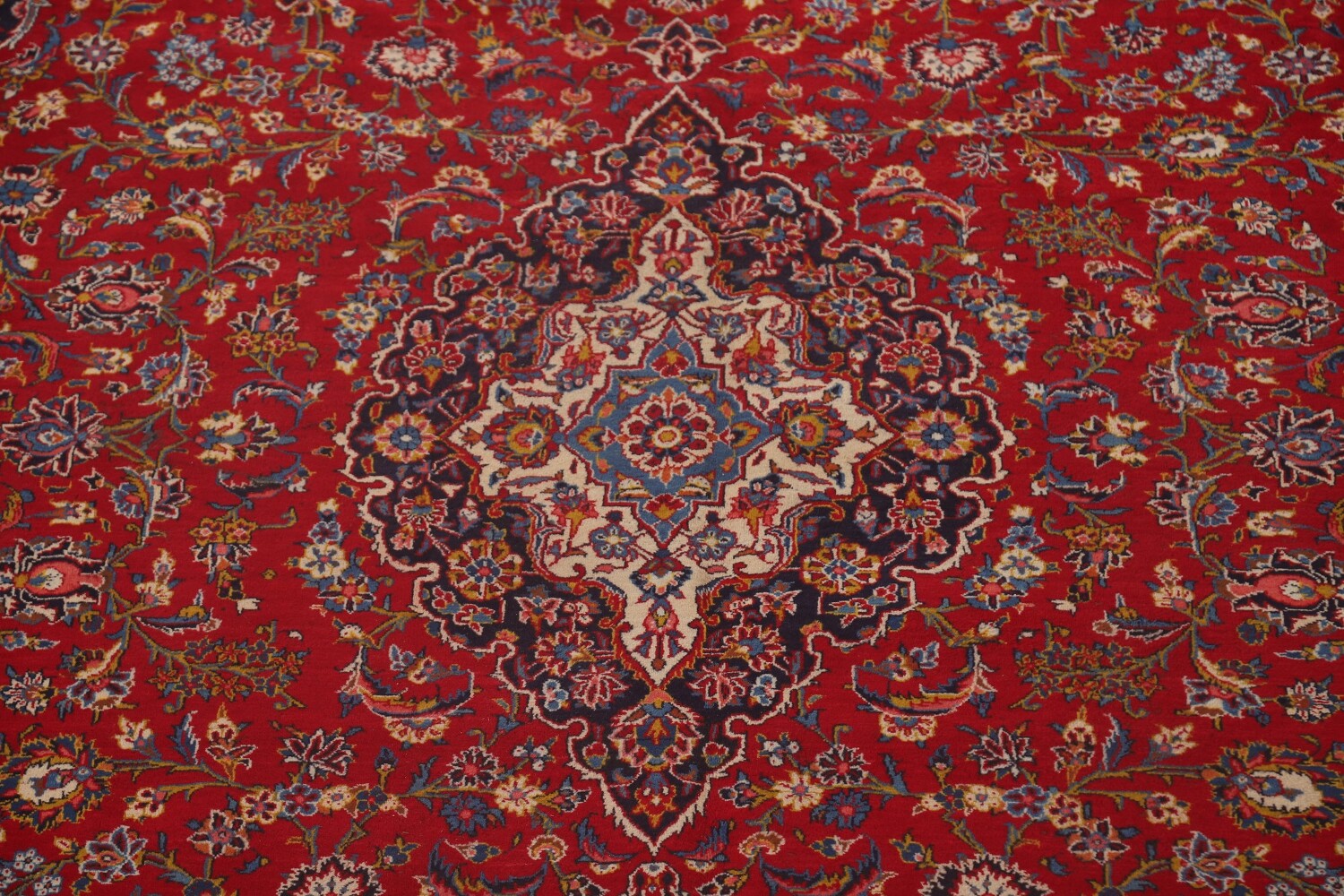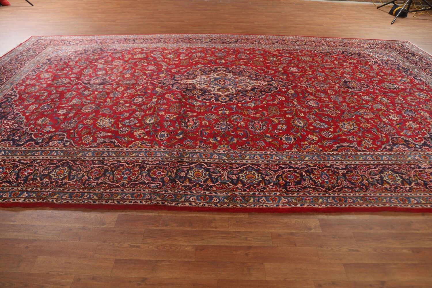 A Beautiful Genuine Persia ( Persia ) Kashan rug is Hand Knotted by skillful weavers in Persia ( Persia ) with 100% Wool Material. This rug is in Very Good condition. dimensions are 15' 9'' X 9' 7'' in foot and 480 X 292 in centimeter. the primary color is Red.