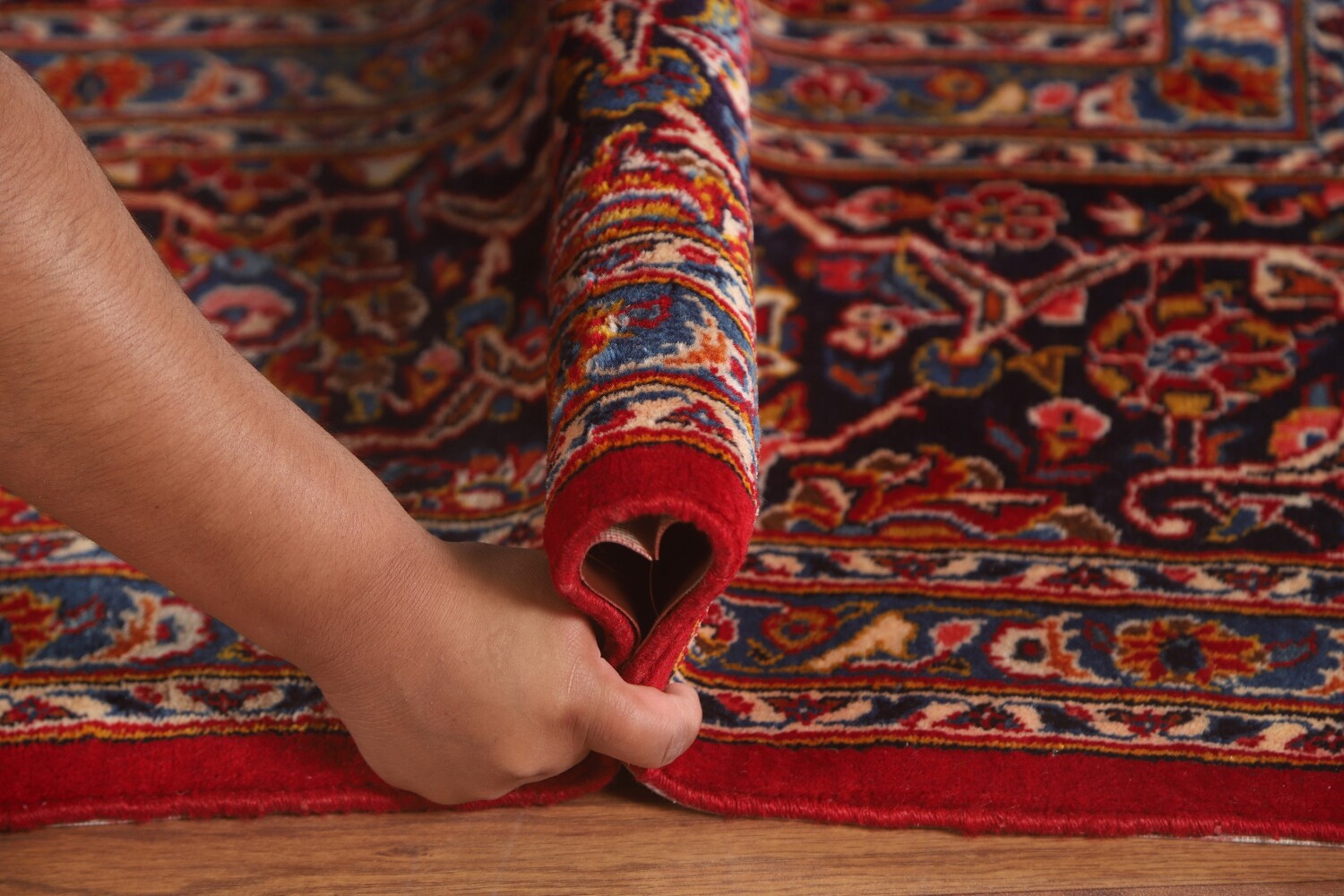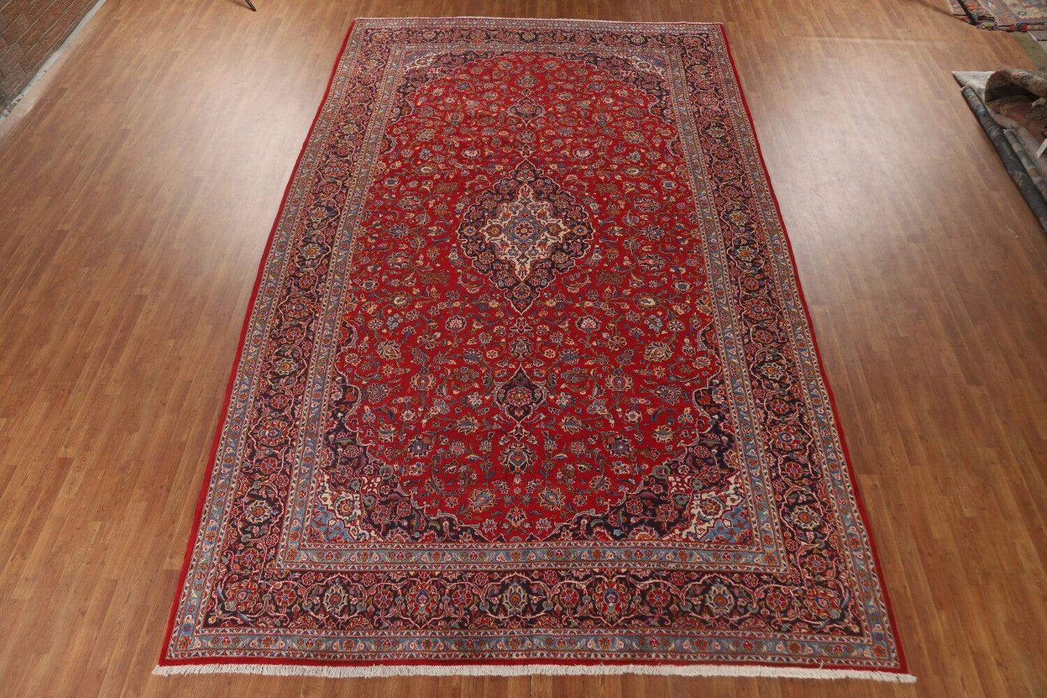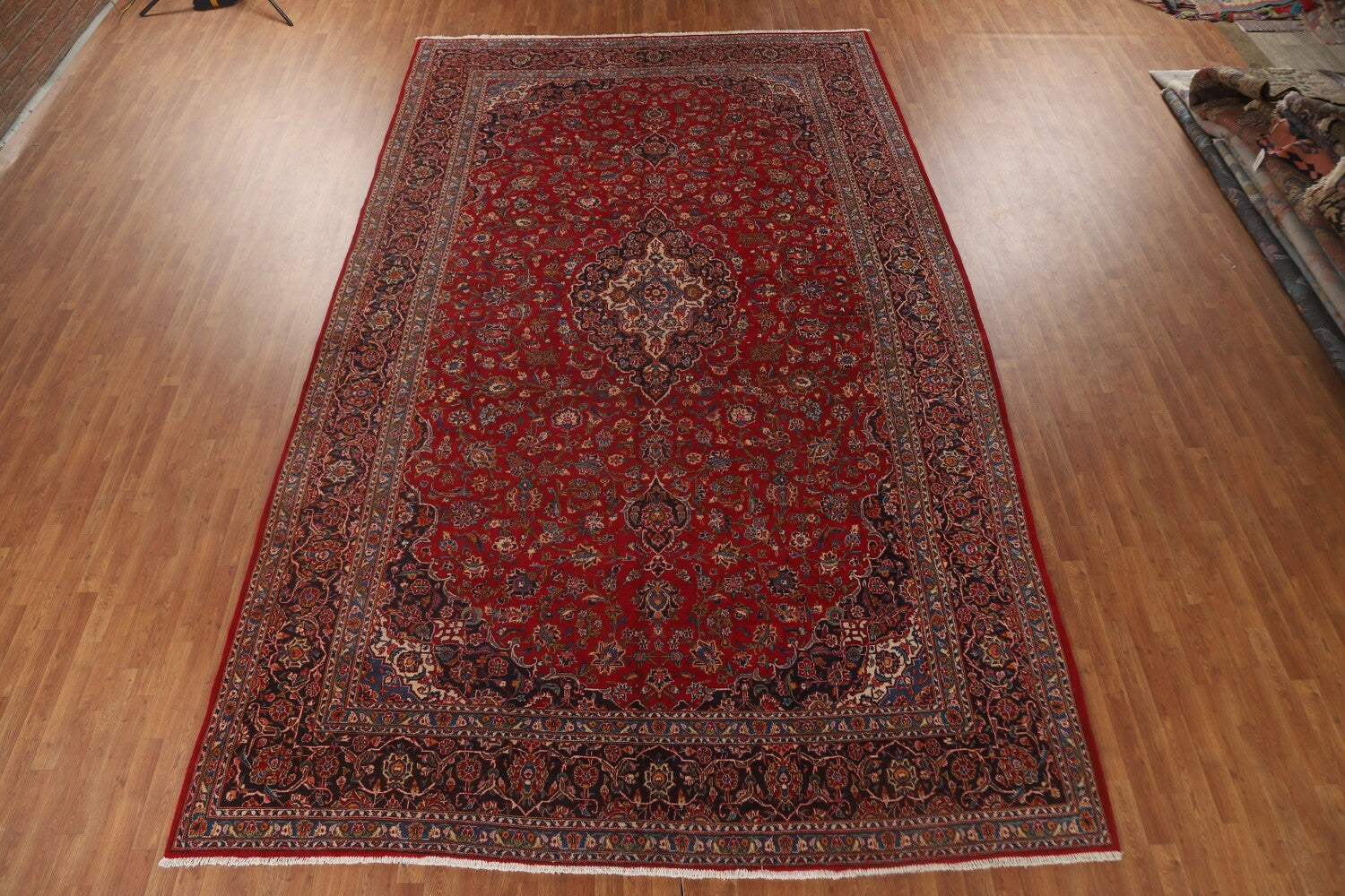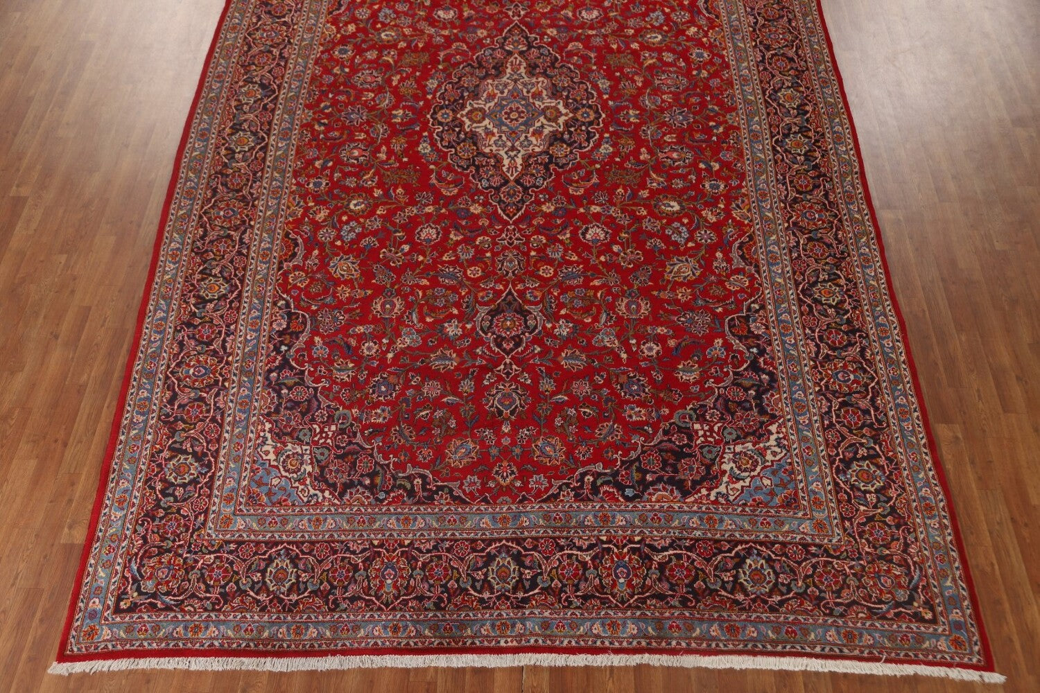 A Beautiful Genuine Persia ( Persia ) Kashan rug is Hand Knotted by skillful weavers in Persia ( Persia ) with 100% Wool Material. This rug is in Very Good condition. dimensions are 15' 9'' X 9' 7'' in foot and 480 X 292 in centimeter. the primary color is Red.