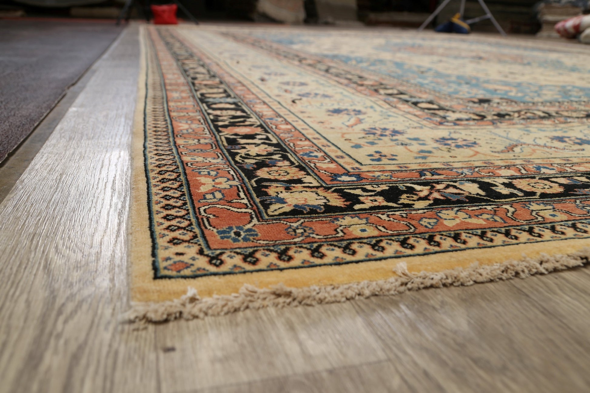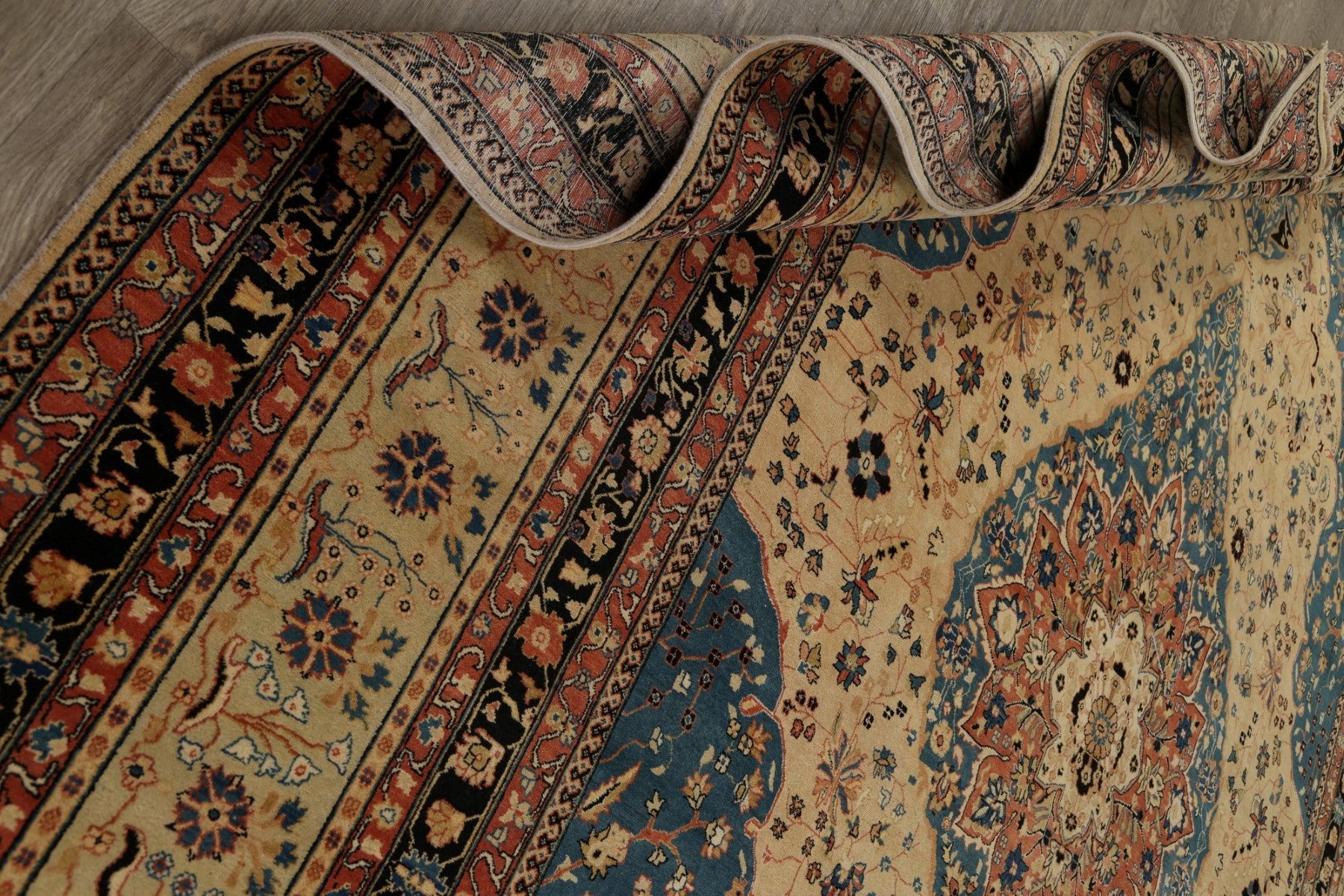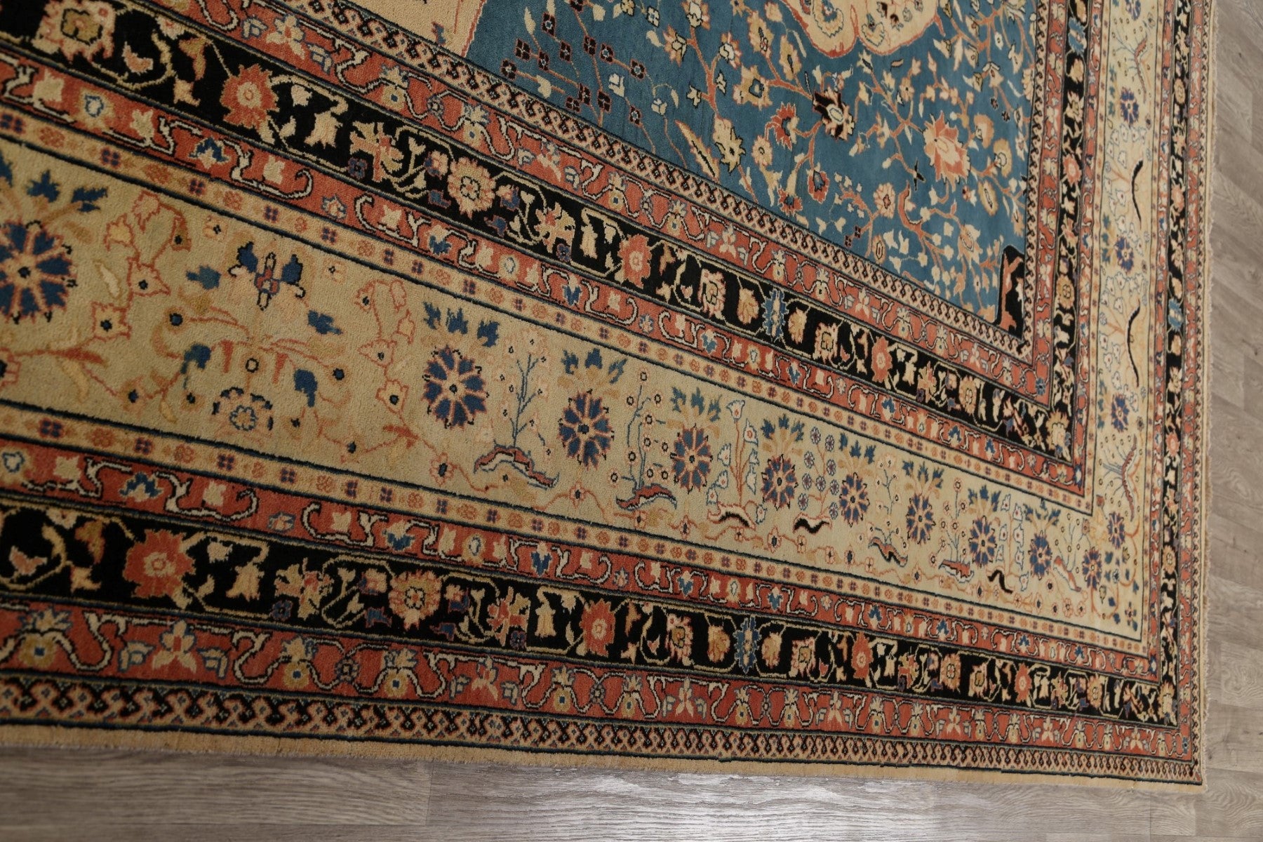 A Beautiful Genuine Persia ( Persia ) Tabriz (Haj Jalili) rug is Hand Knotted by skillful weavers in Persia ( Persia ) with 100% Kork Wool Material. This rug is in New, First Quality condition. dimensions are 15' 6'' X 12' 2'' in foot and 472 X 371 in centimeter. the primary color is Navy Blue & Blues.