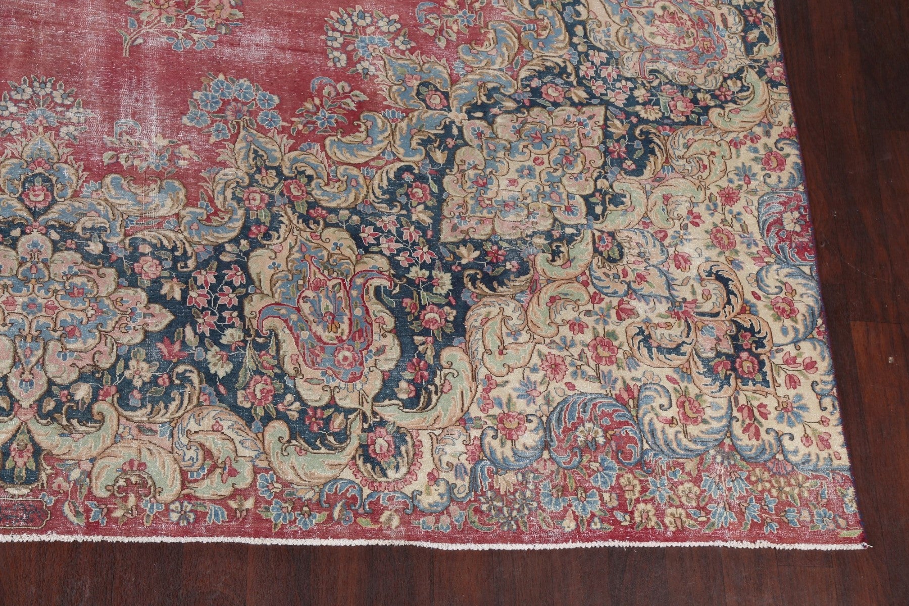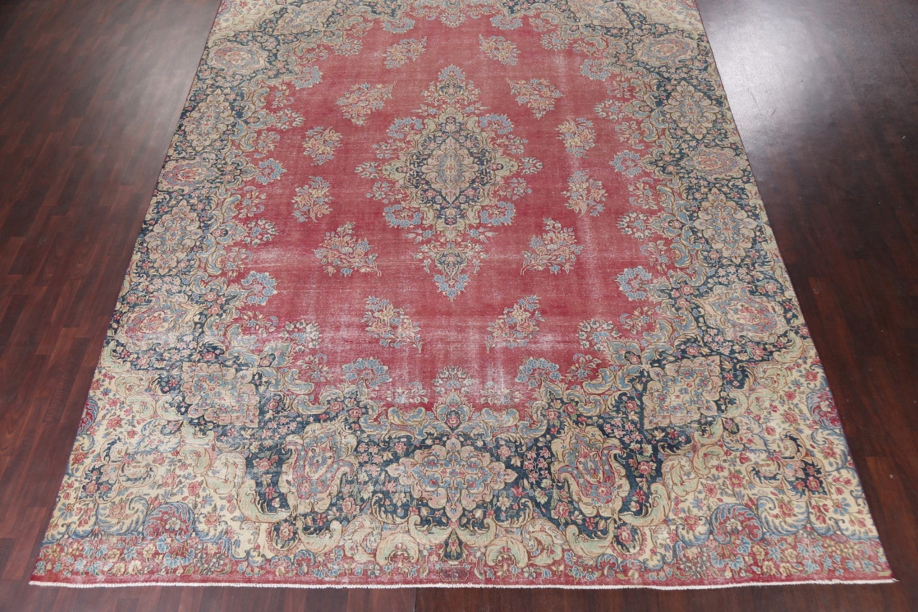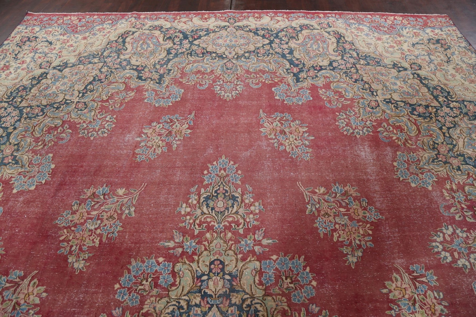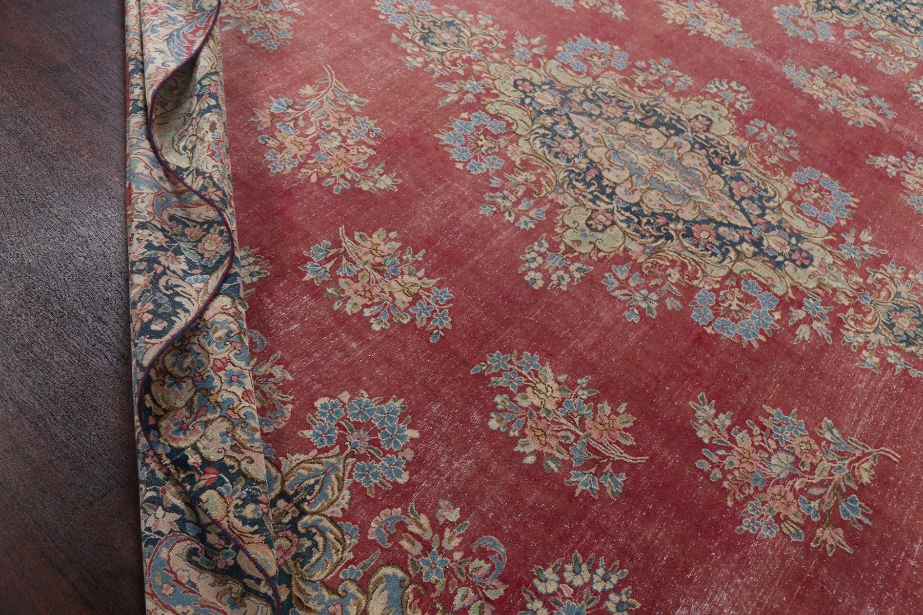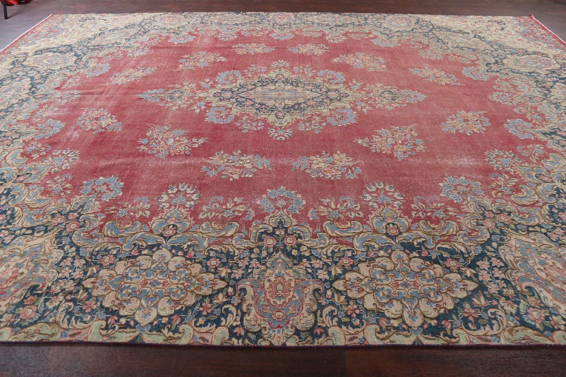 A Beautiful Genuine Persia ( Persia ) Kerman rug is Hand Knotted by skillful weavers in Persia ( Persia ) with 100% Wool Material. This rug is in Very Good (Evenly Low Pile) condition. dimensions are 15' 11'' X 11' 5'' in foot and 485 X 348 in centimeter. the primary color is Pink.
