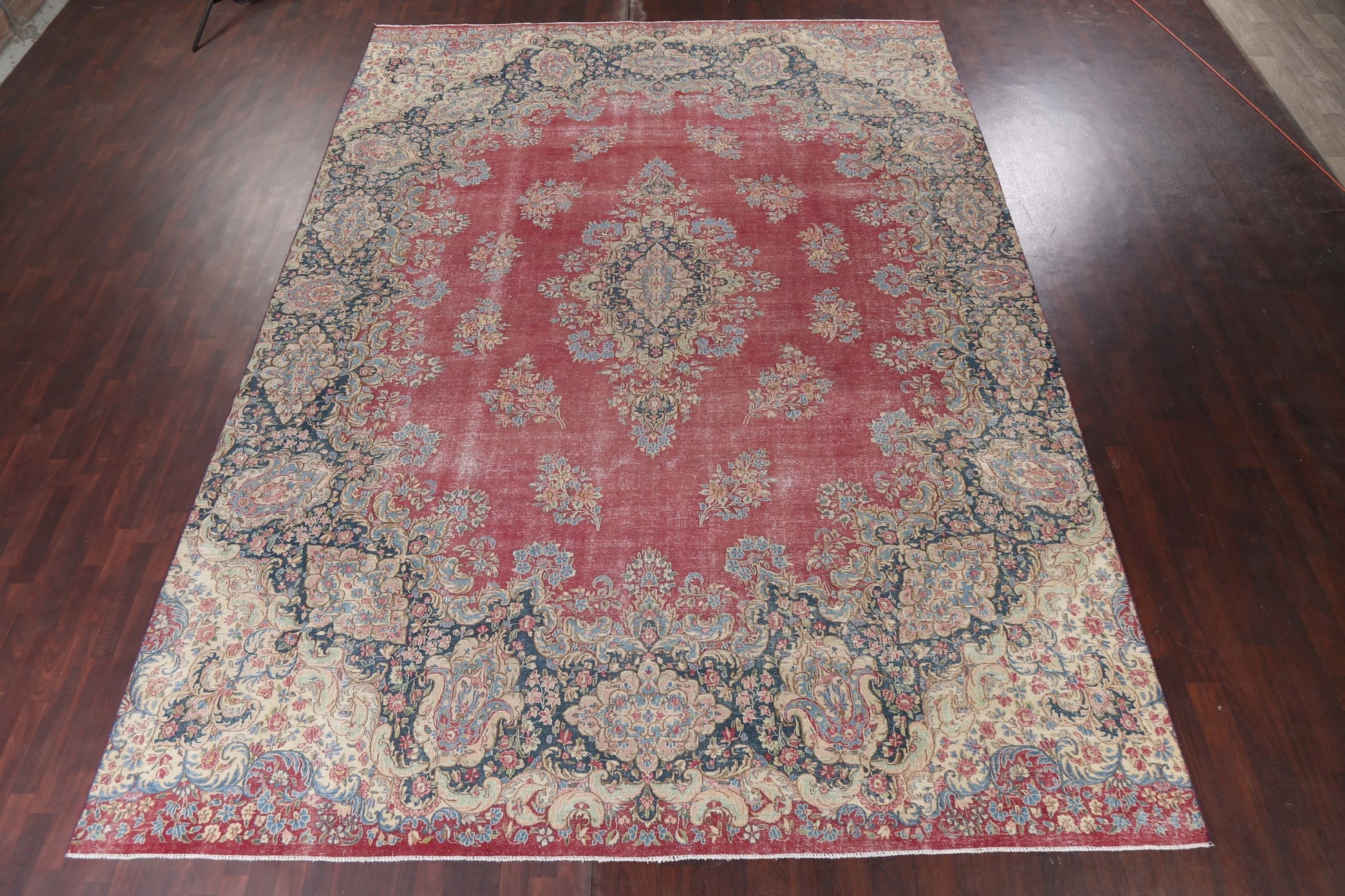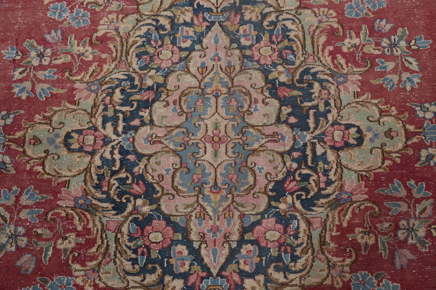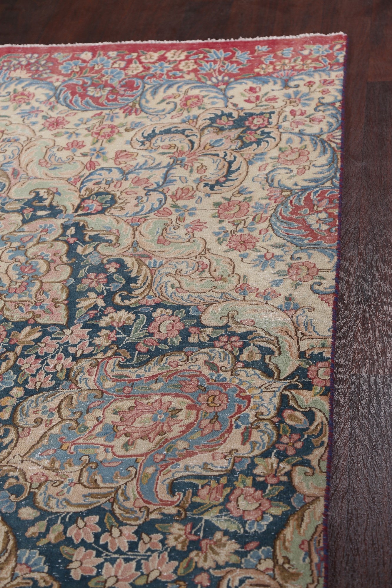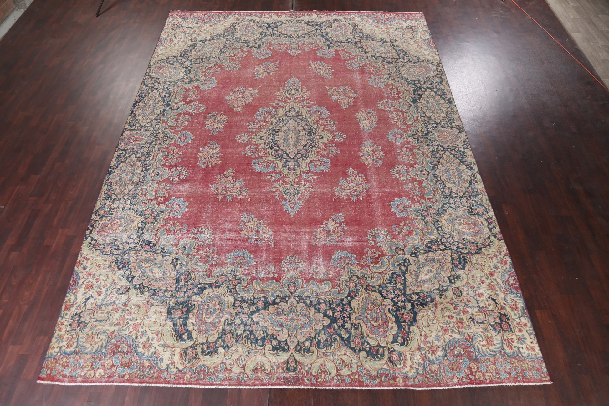A Beautiful Genuine Persia ( Persia ) Kerman rug is Hand Knotted by skillful weavers in Persia ( Persia ) with 100% Wool Material. This rug is in Very Good (Evenly Low Pile) condition. dimensions are 15' 11'' X 11' 5'' in foot and 485 X 348 in centimeter. the primary color is Pink.