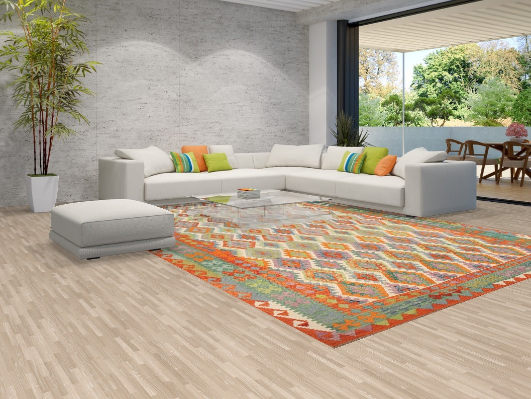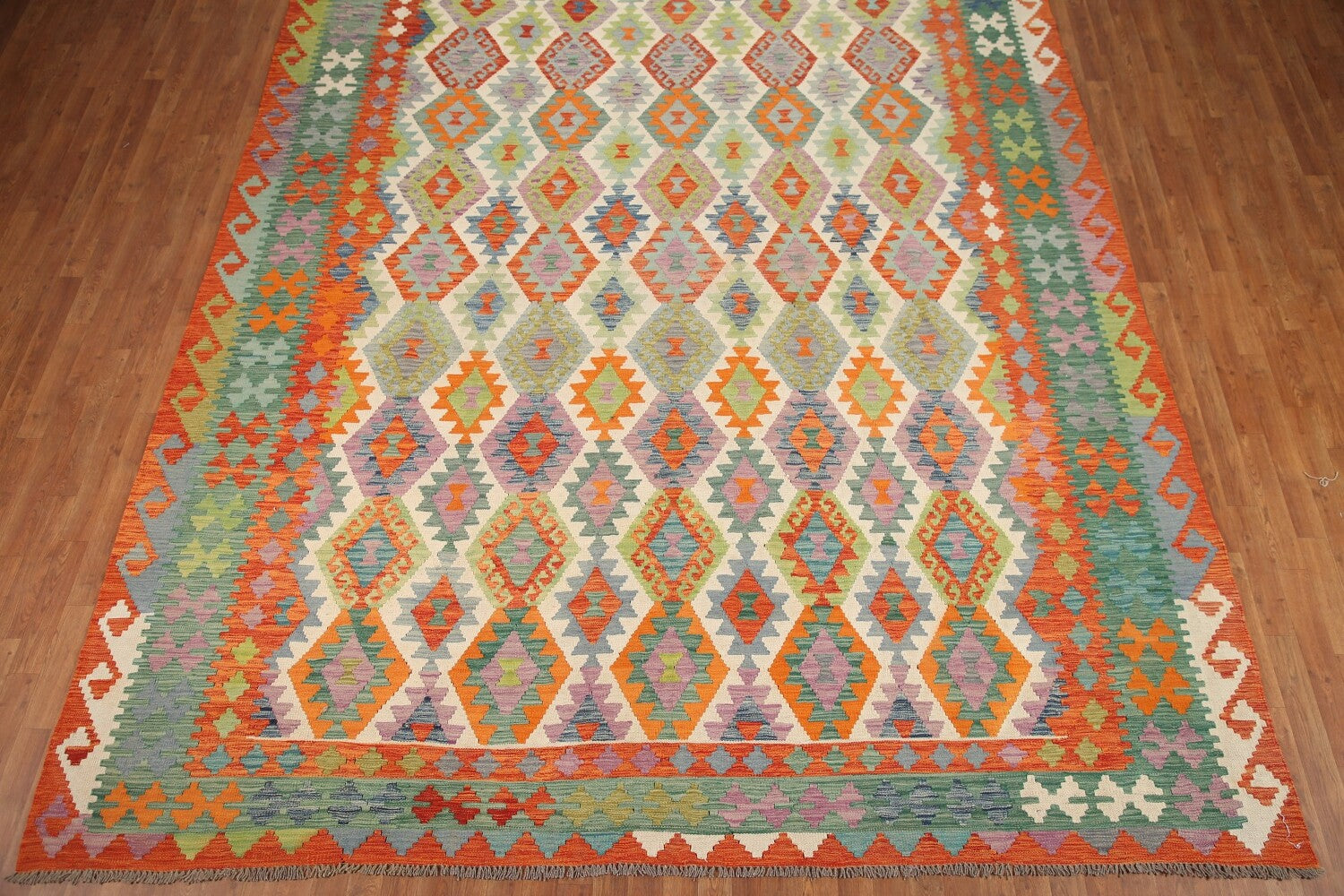 A Beautiful Genuine Pakistan Kilim rug is Hand Woven by skillful weavers in Pakistan with 100% Wool Material. This rug is in New, First Quality condition. dimensions are 15' 9'' X 10' 1'' in foot and 480 X 307 in centimeter. the primary color is Multi-Colored.