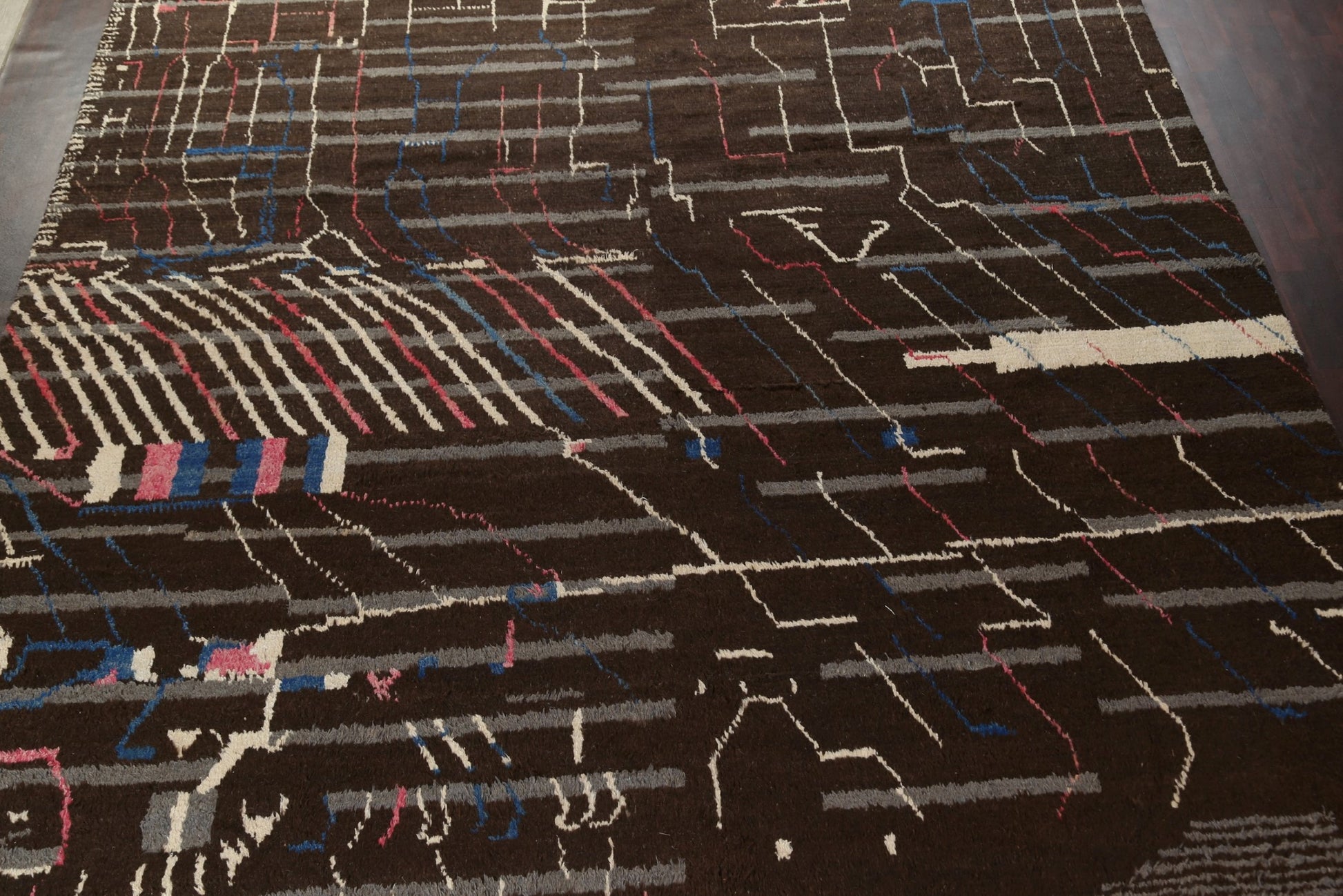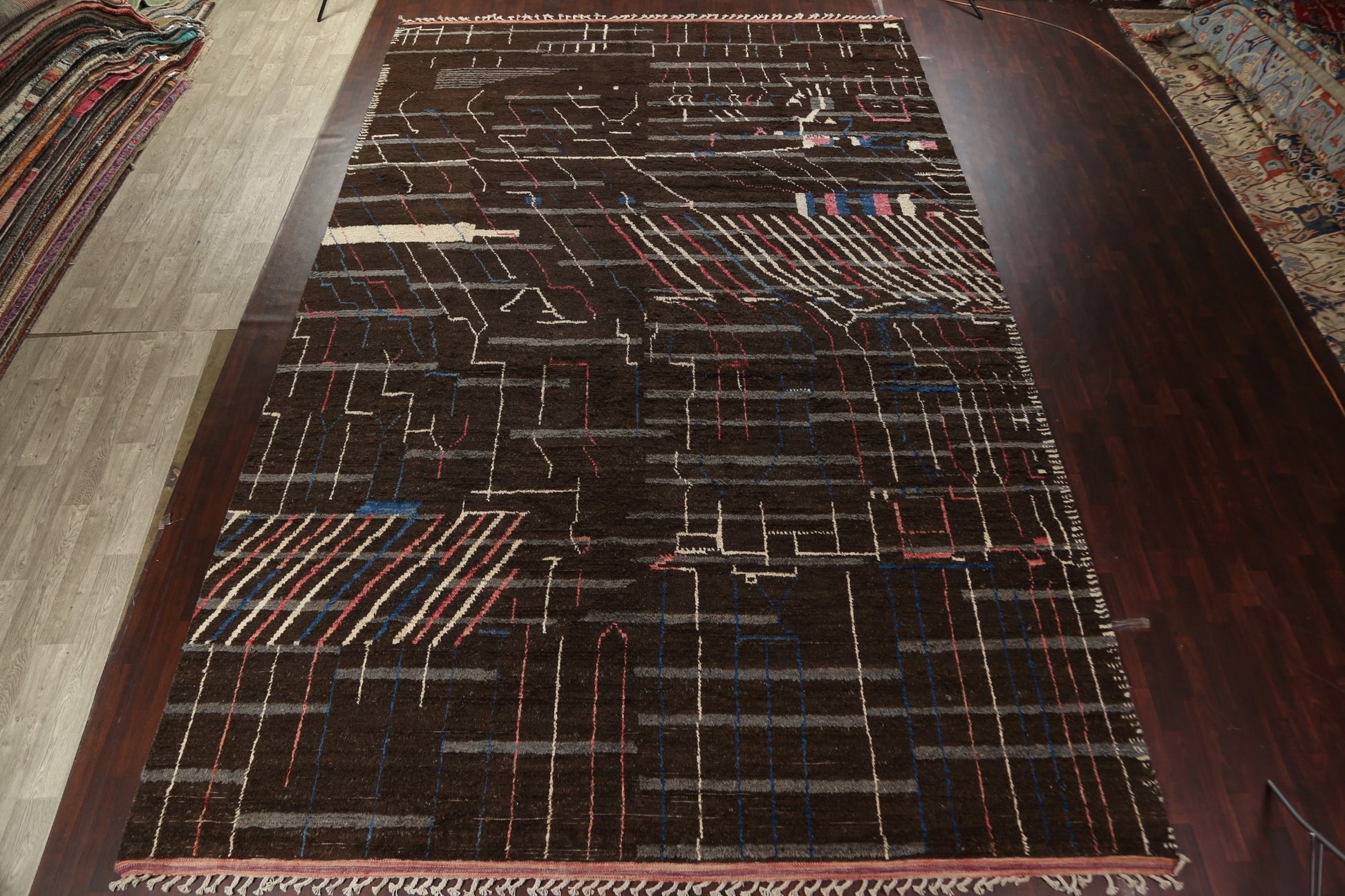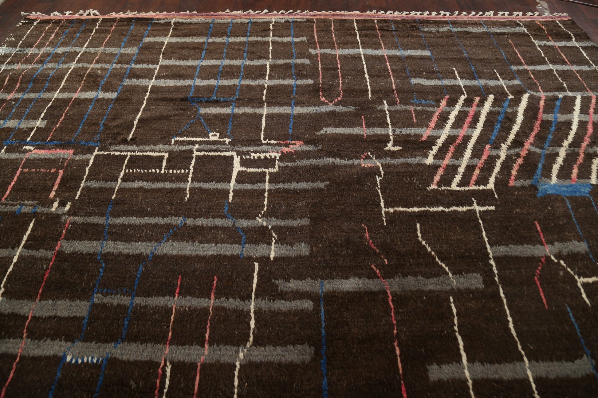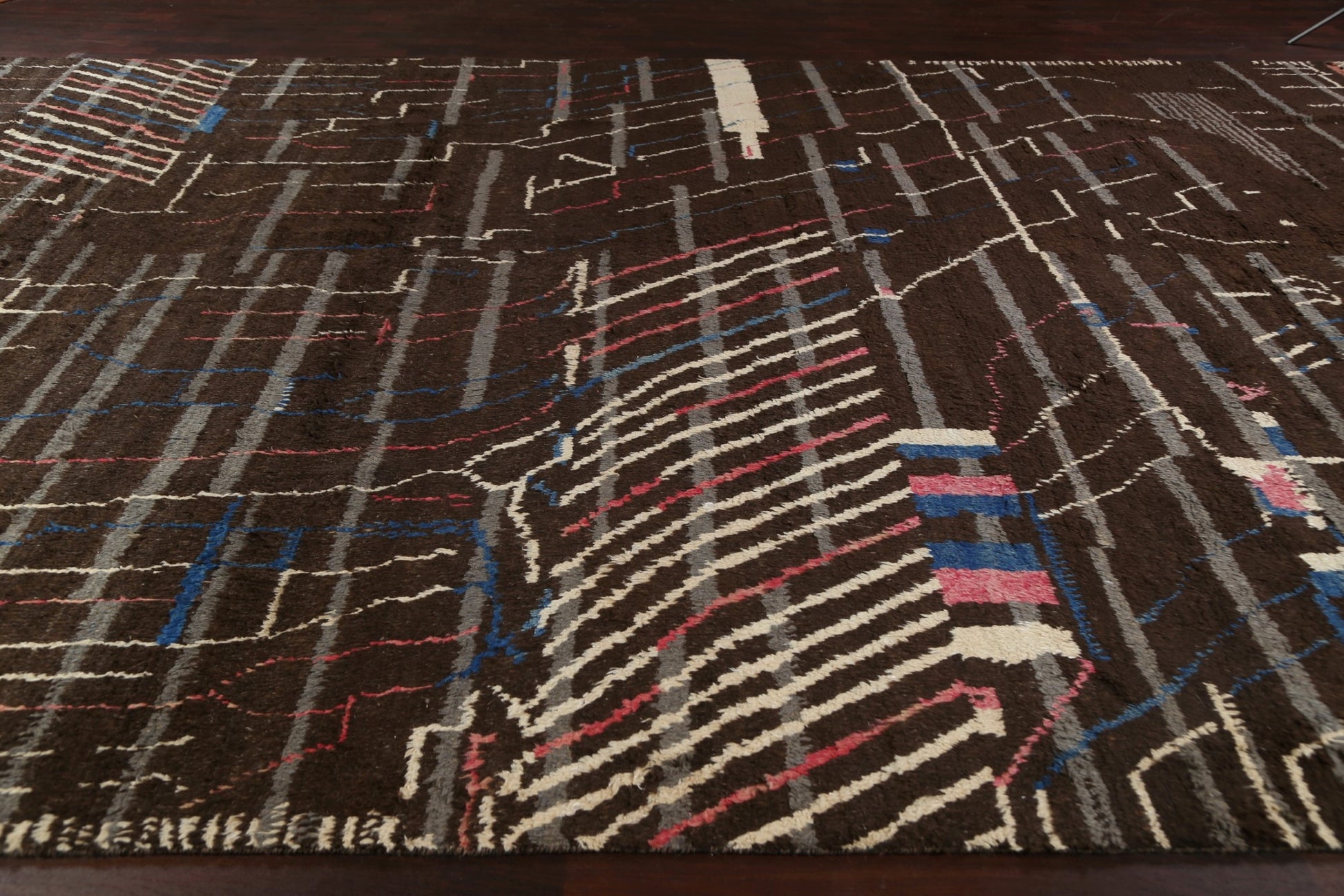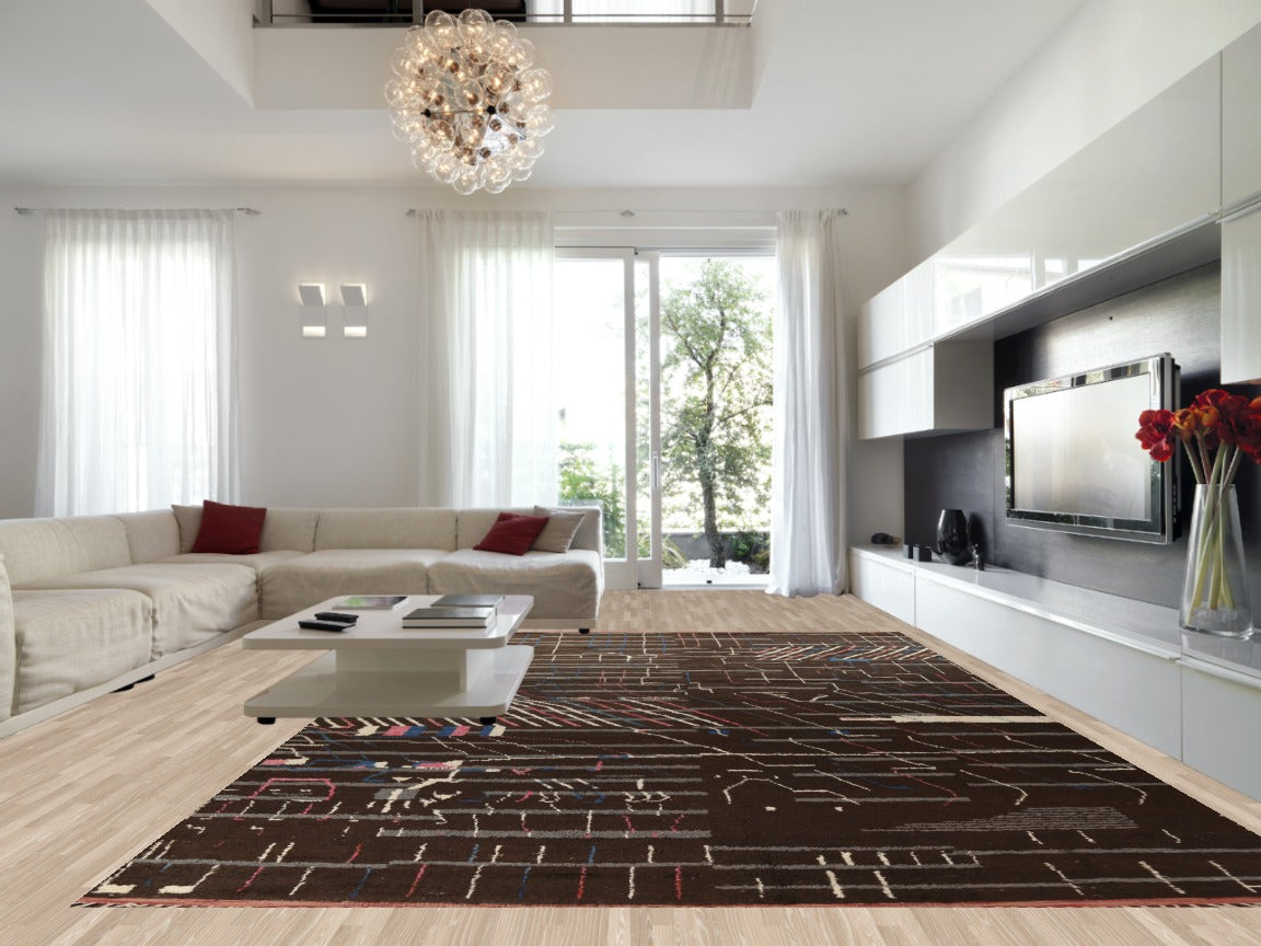 A Beautiful Genuine Morocco Moroccan rug is Hand Knotted by skillful weavers in Morocco with 100% Wool Material. This rug is in New, First Quality condition. dimensions are 18' 11'' X 12' 0'' in foot and 577 X 366 in centimeter. the primary color is Brown.