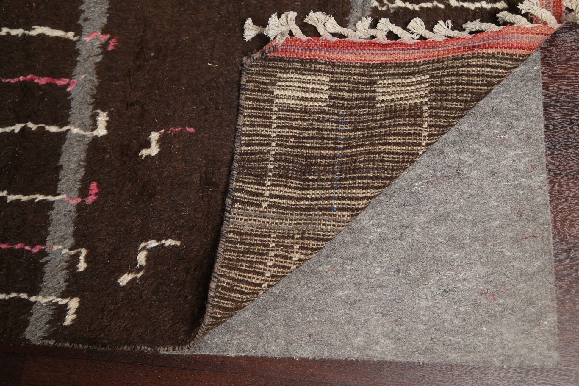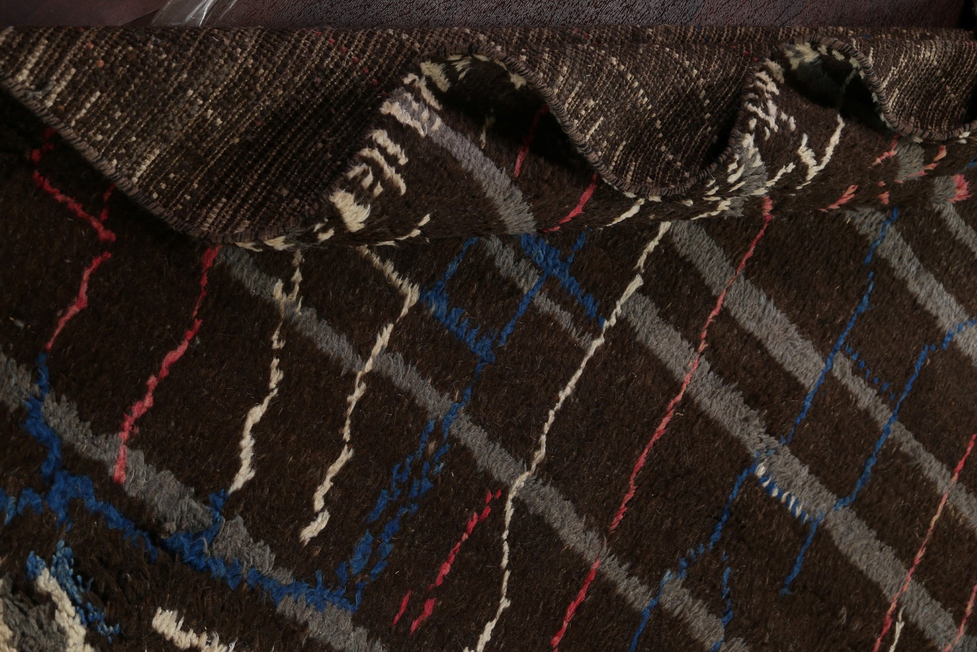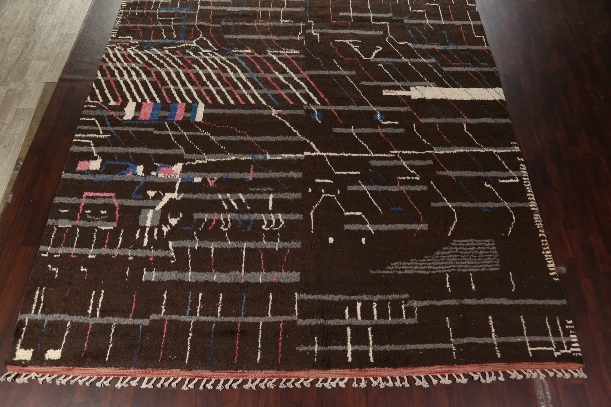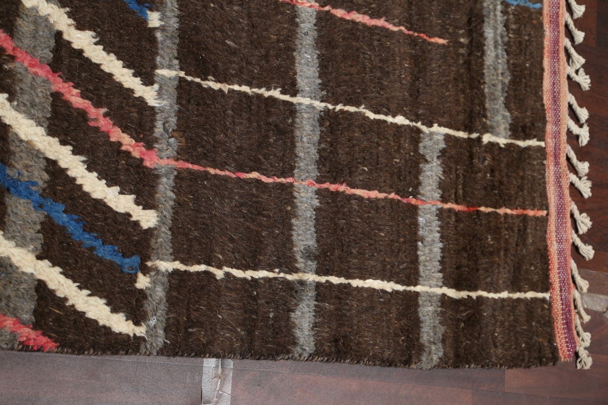 A Beautiful Genuine Morocco Moroccan rug is Hand Knotted by skillful weavers in Morocco with 100% Wool Material. This rug is in New, First Quality condition. dimensions are 18' 11'' X 12' 0'' in foot and 577 X 366 in centimeter. the primary color is Brown.
