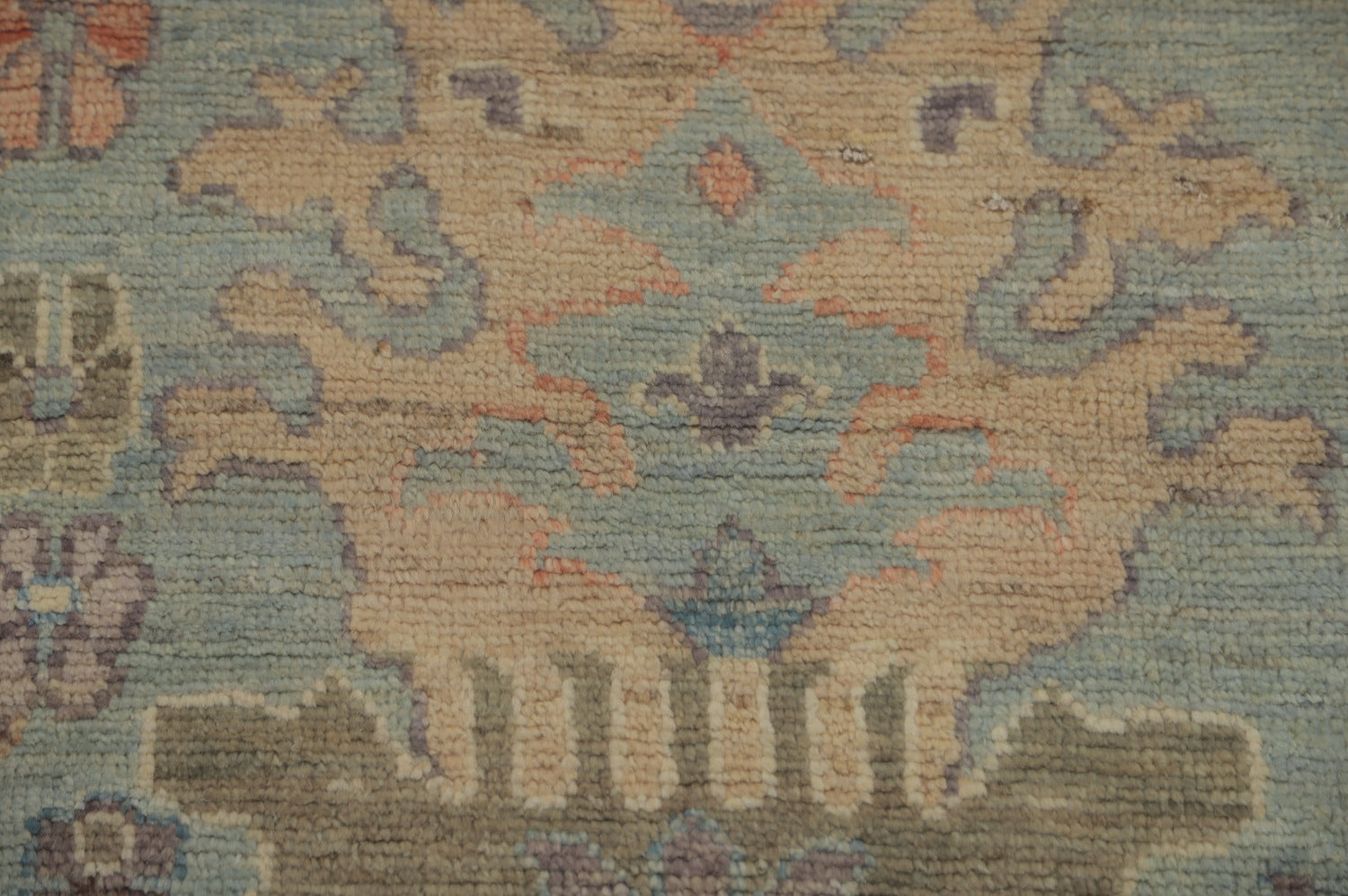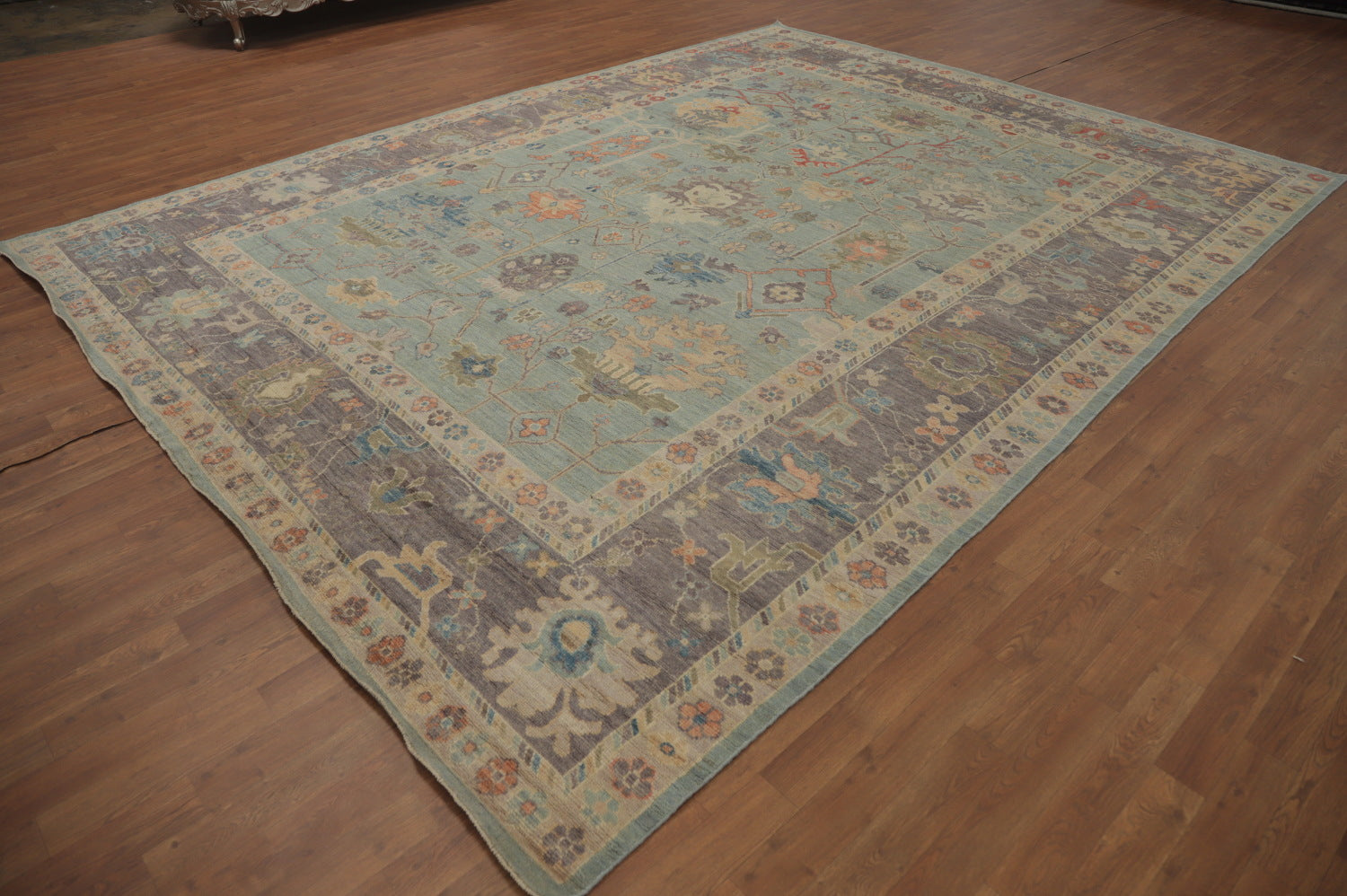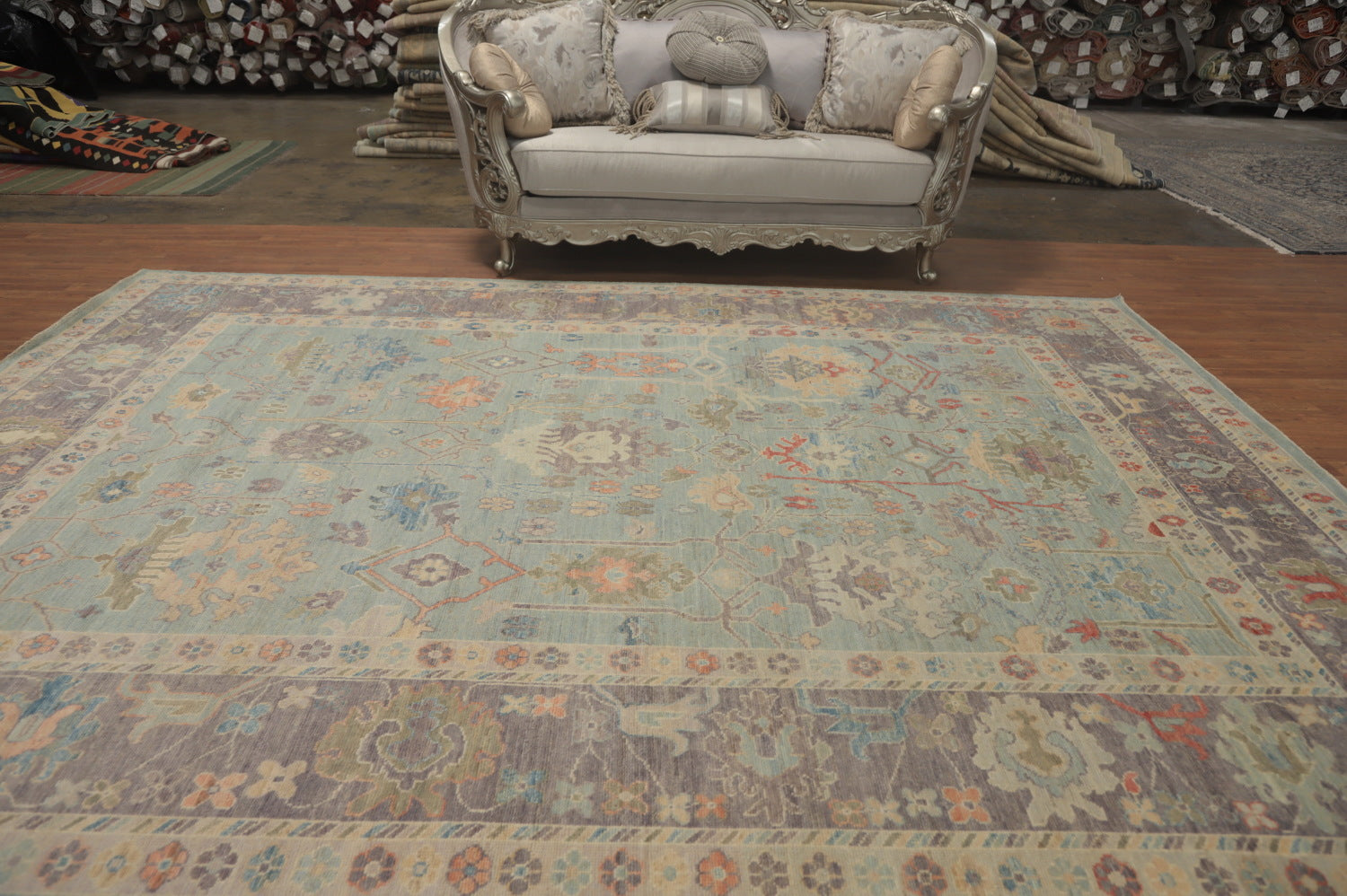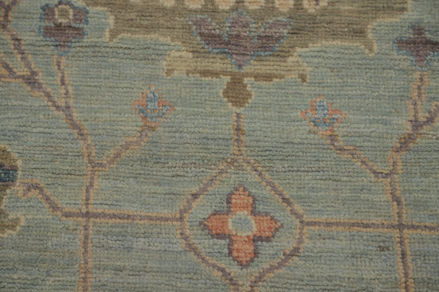 Light Blue Floral Oushak Vegetable Dye Area Rug 9x12