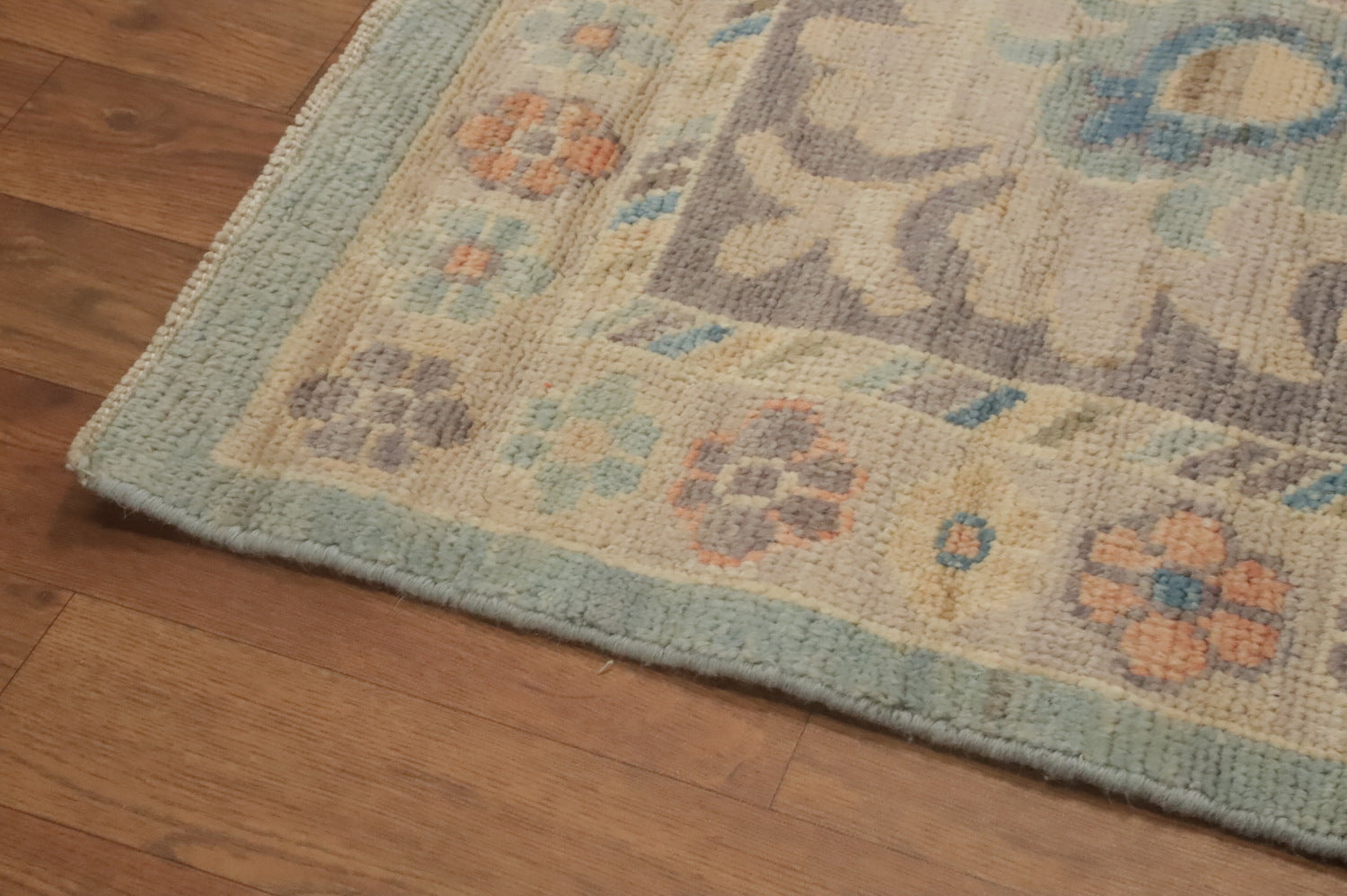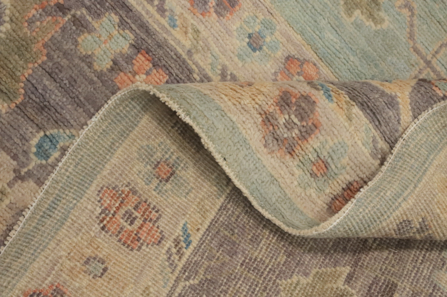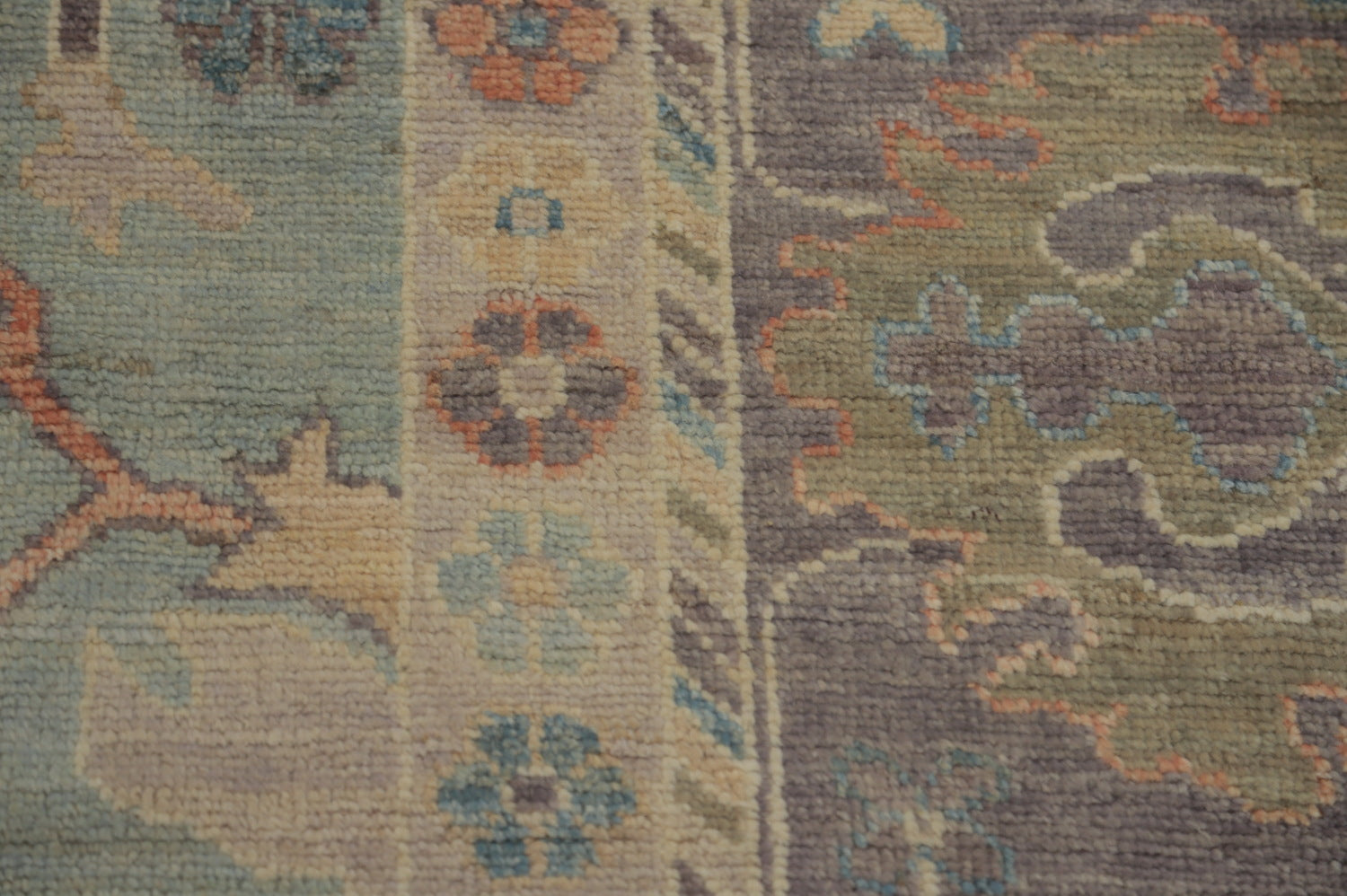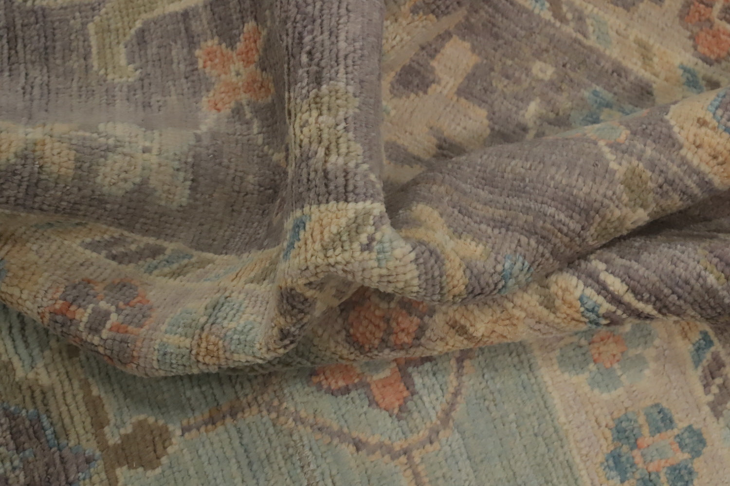 Light Blue Floral Oushak Vegetable Dye Area Rug 9x12