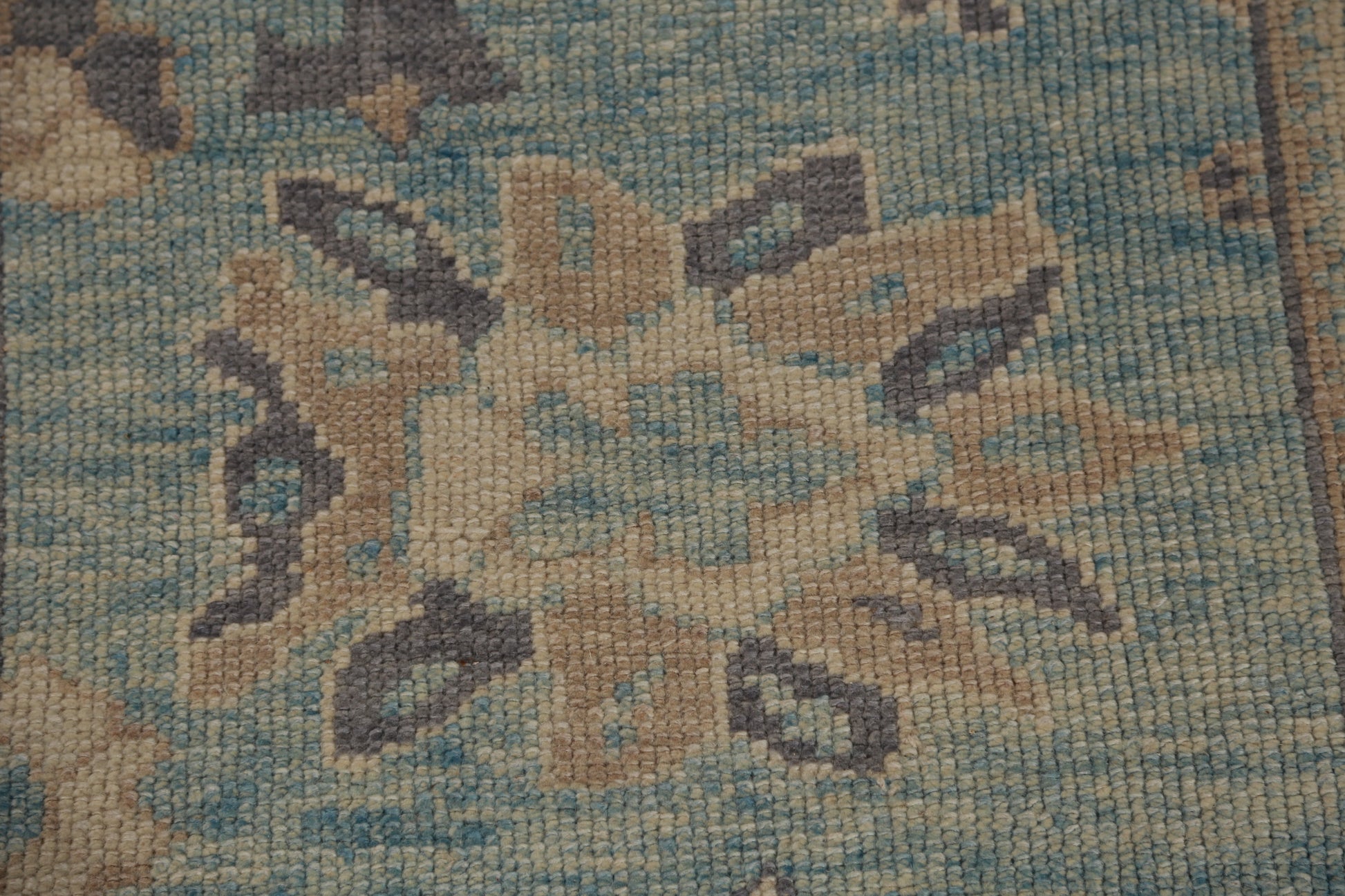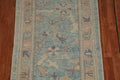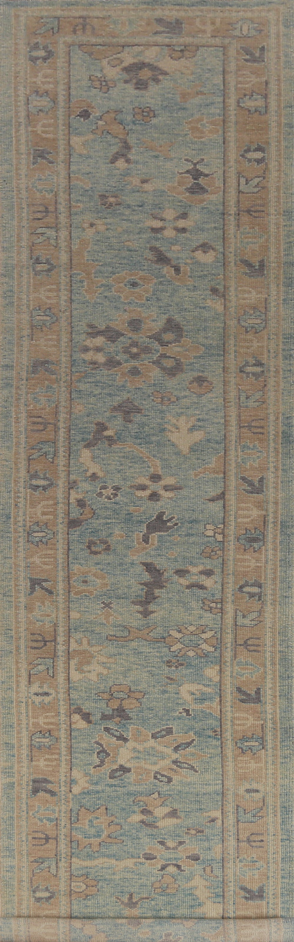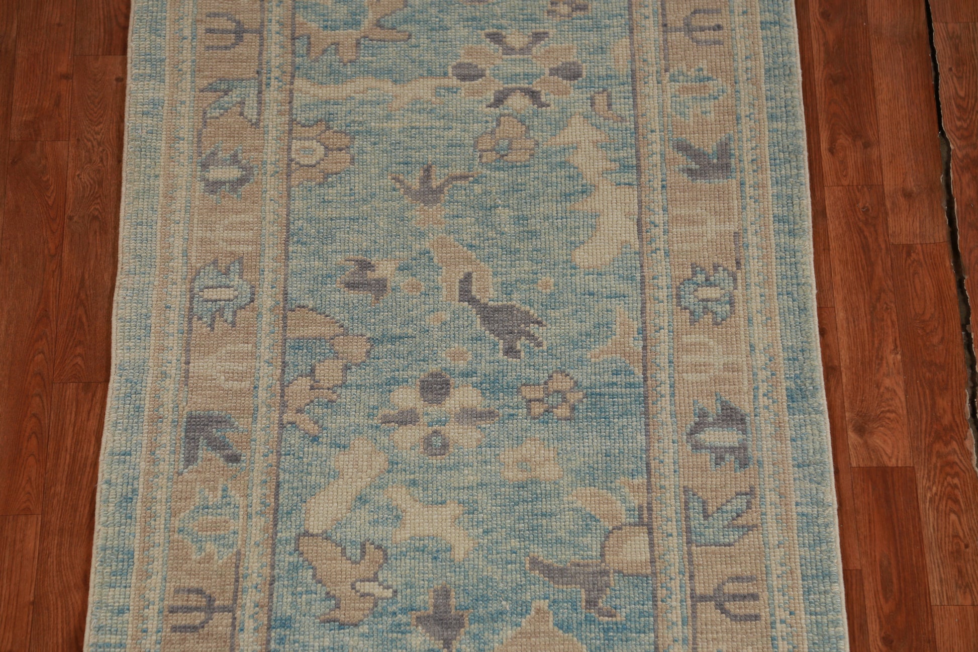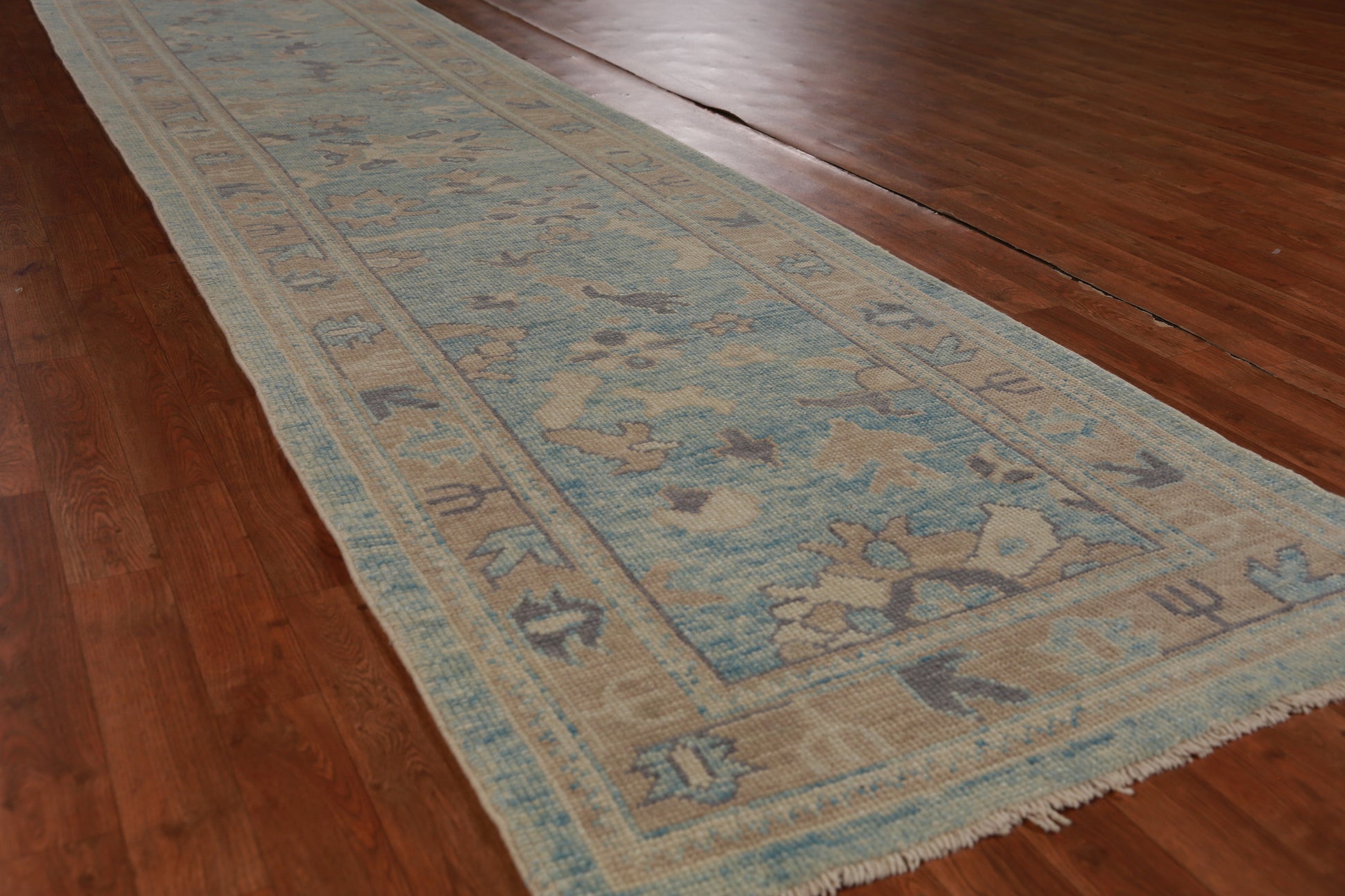 Light Blue Floral Oushak Vegetable Dye Runner Rug 3x17