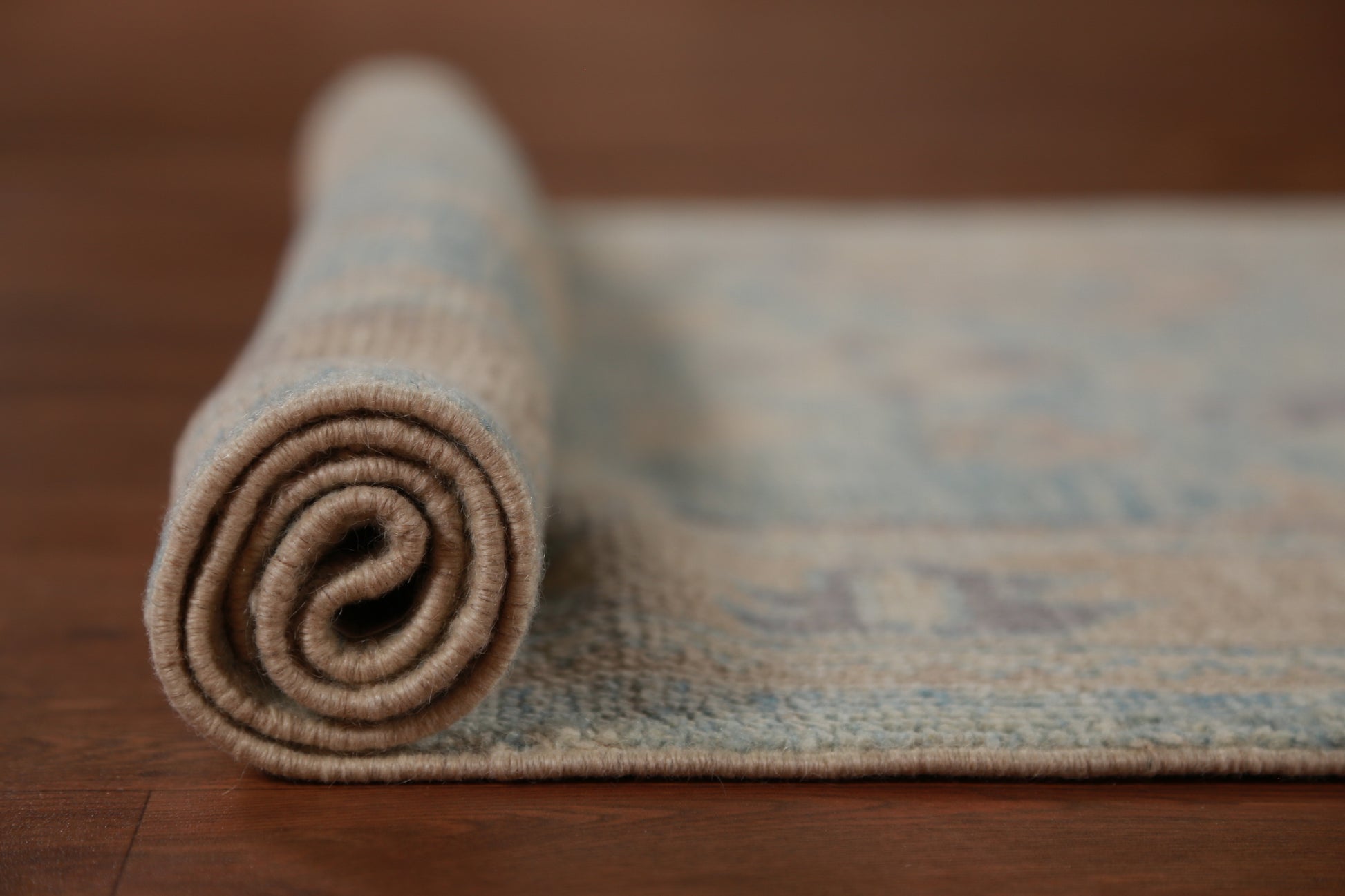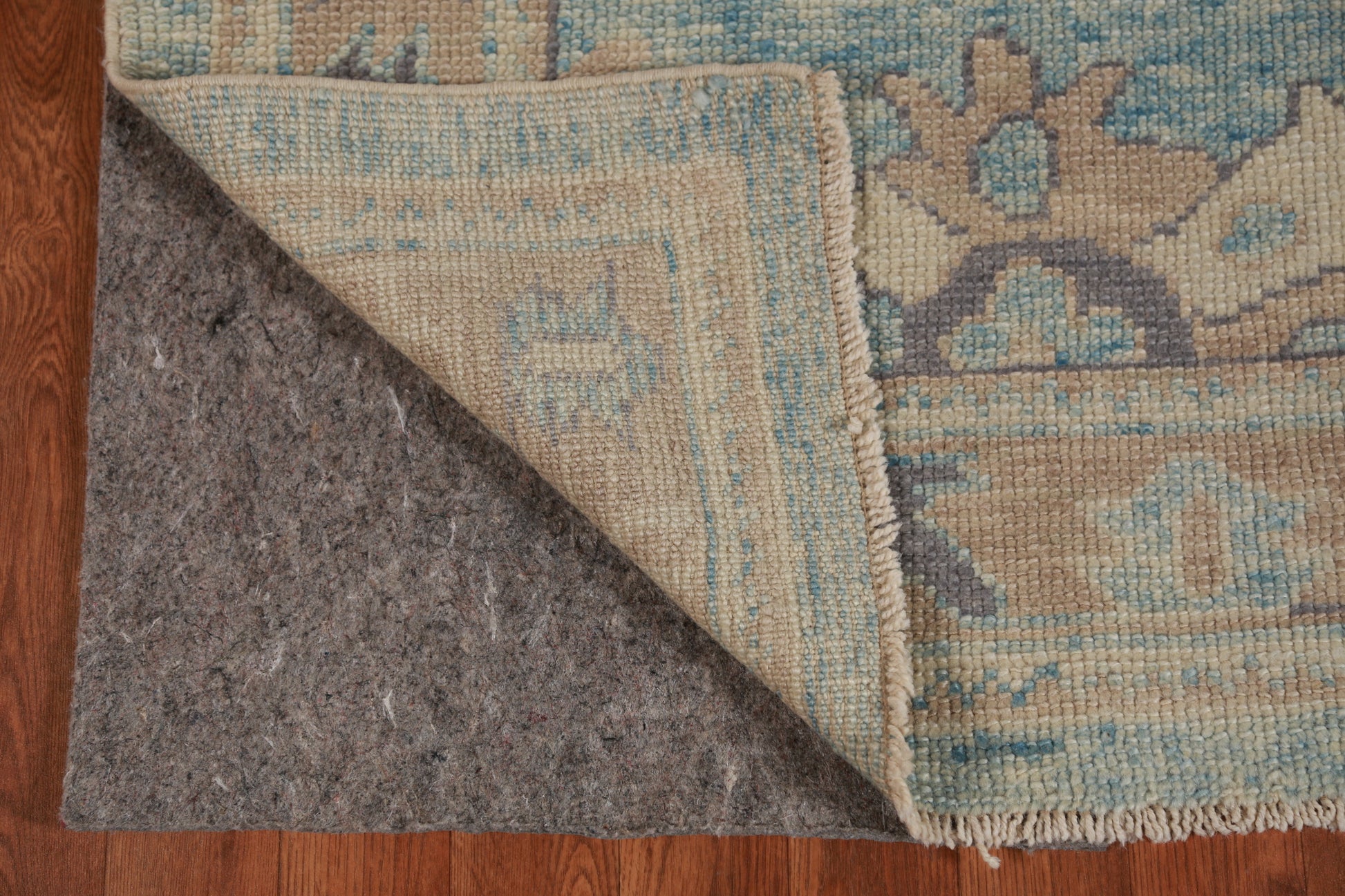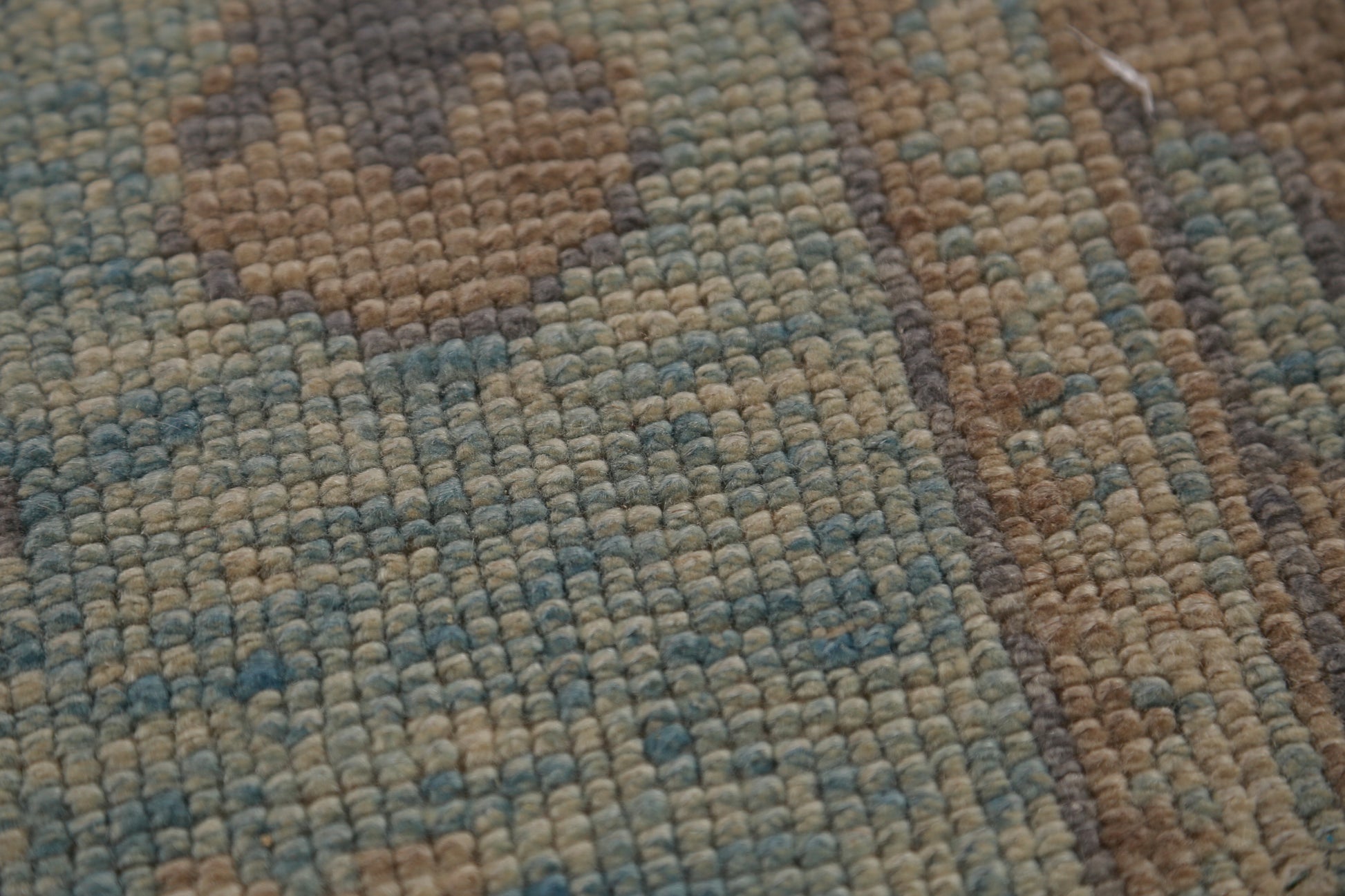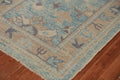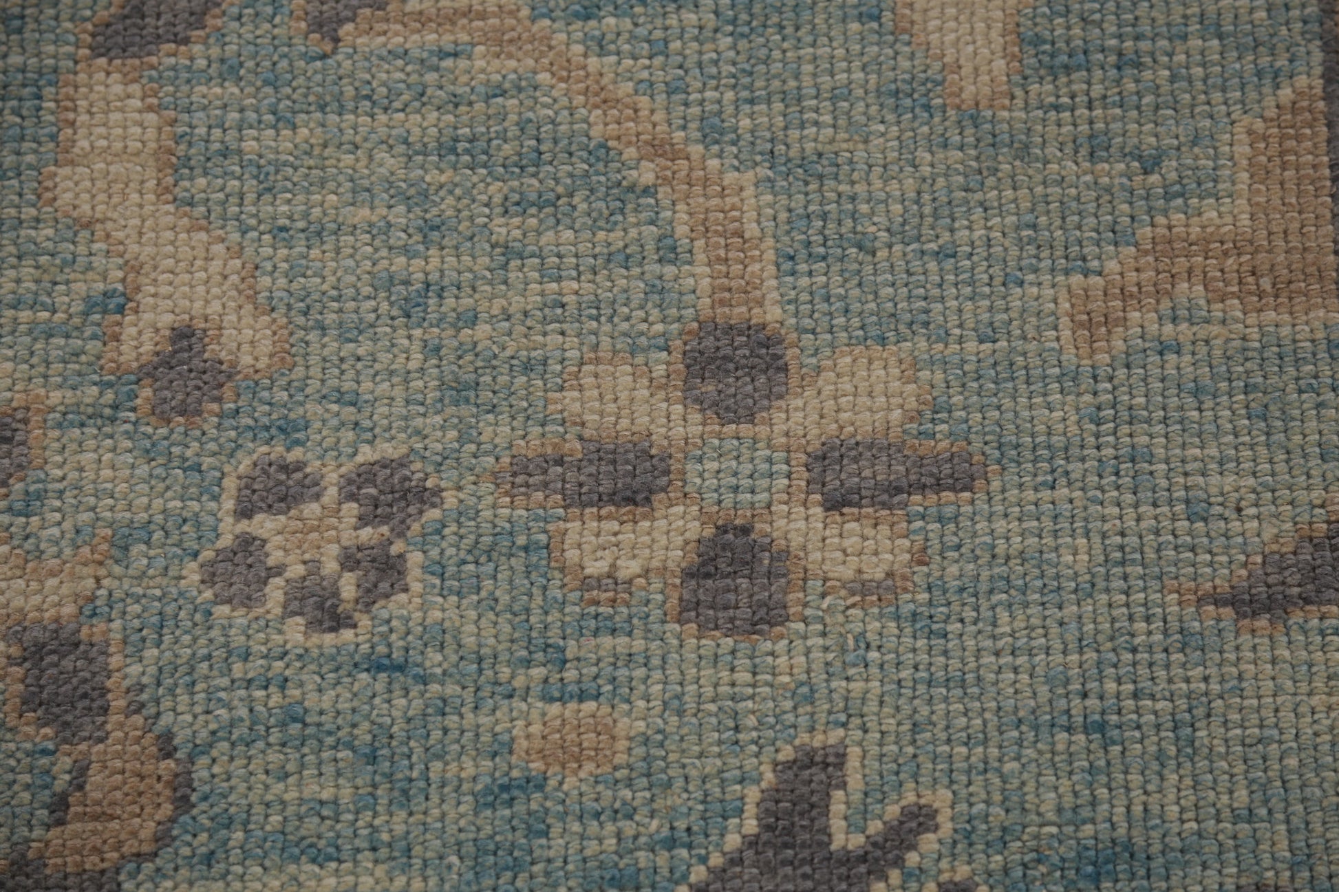 Light Blue Floral Oushak Vegetable Dye Runner Rug 3x17
