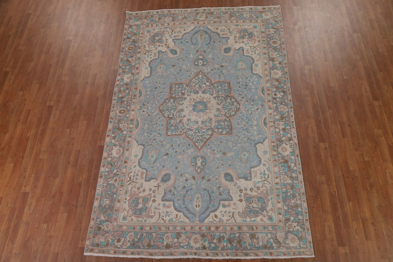 Light Blue Floral Tabriz Persian Area Rug 6x10