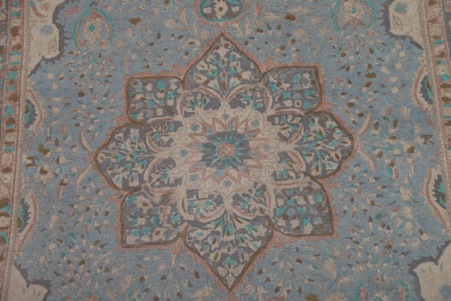 A Beautiful Genuine Persia ( Persia ) Tabriz rug is Hand Knotted by skillful weavers in Persia ( Persia ) with 100% Wool Material. This rug is in Very Good (Low Pile) condition. dimensions are 10' 1'' X 6' 5'' in foot and 307 X 196 in centimeter. the primary color is Navy Blue & Blues.