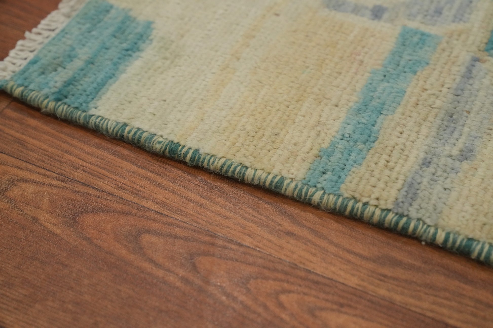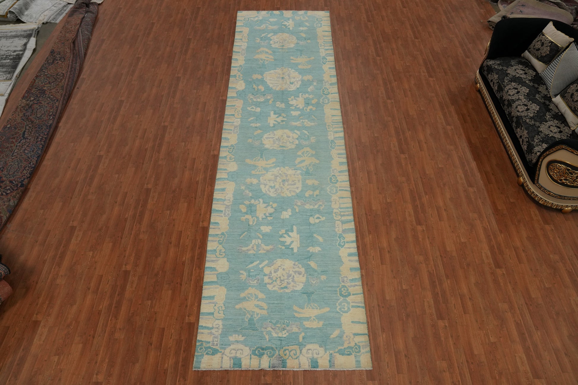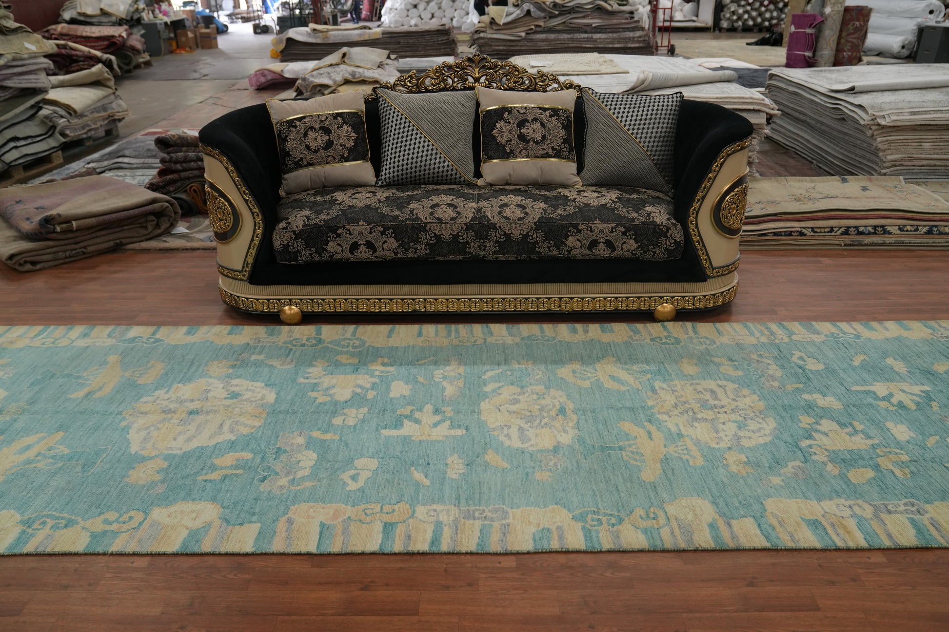 A Beautiful Genuine Pakistan Ziegler rug is Hand Knotted by skillful weavers in Pakistan with 100% Wool Material. This rug is in New, First Quality condition. dimensions are 18' 9'' X 4' 9'' in foot and 572 X 145 in centimeter. the primary color is Navy Blue & Blues.