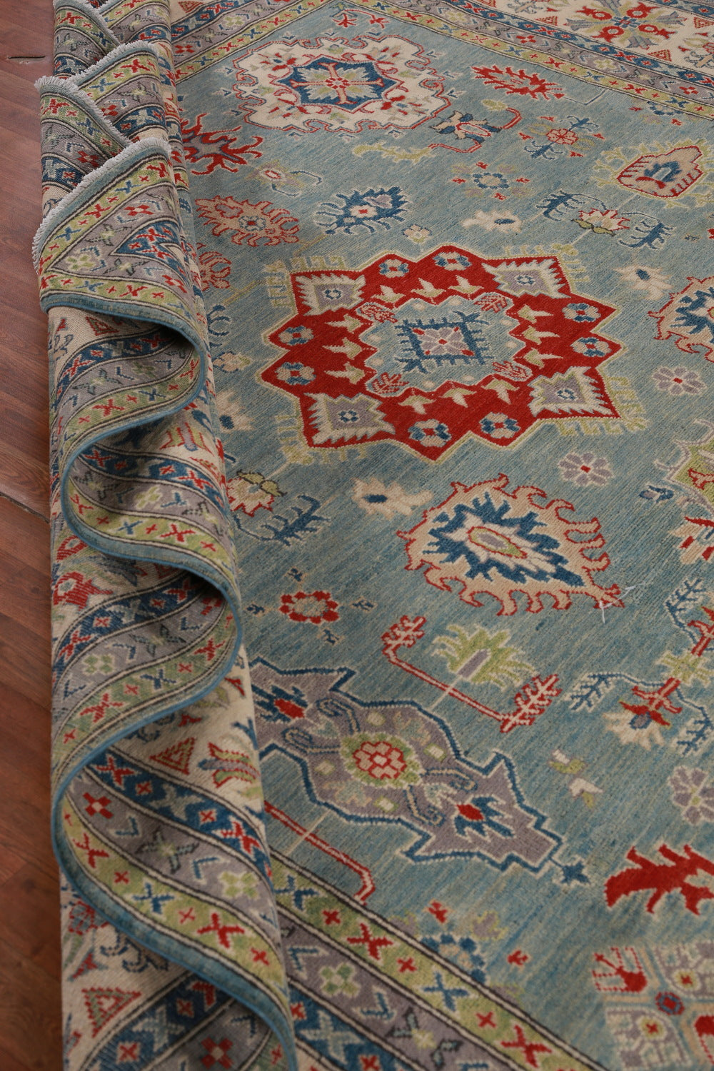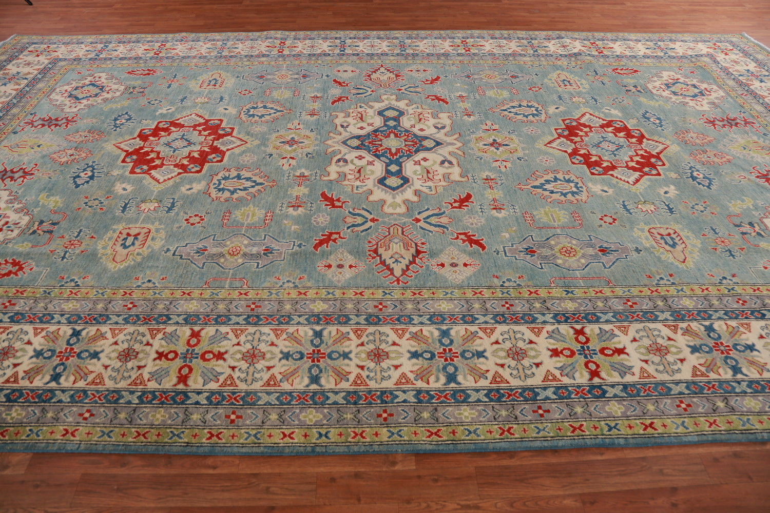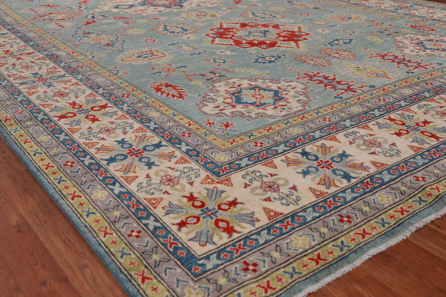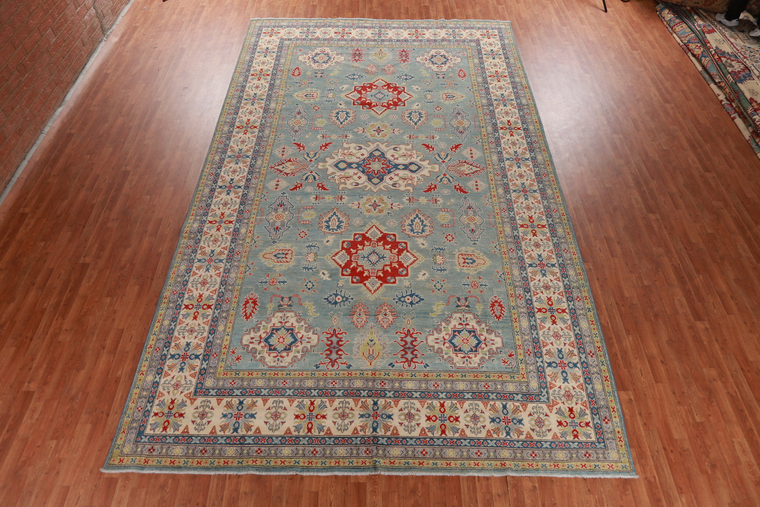 Light Blue Geometric Kazak Oriental Large Rug 10x17