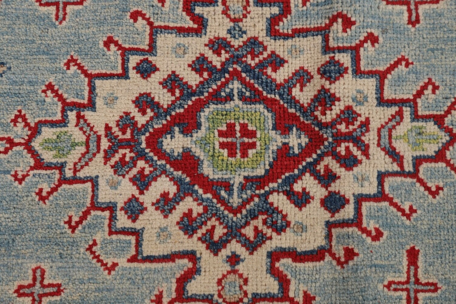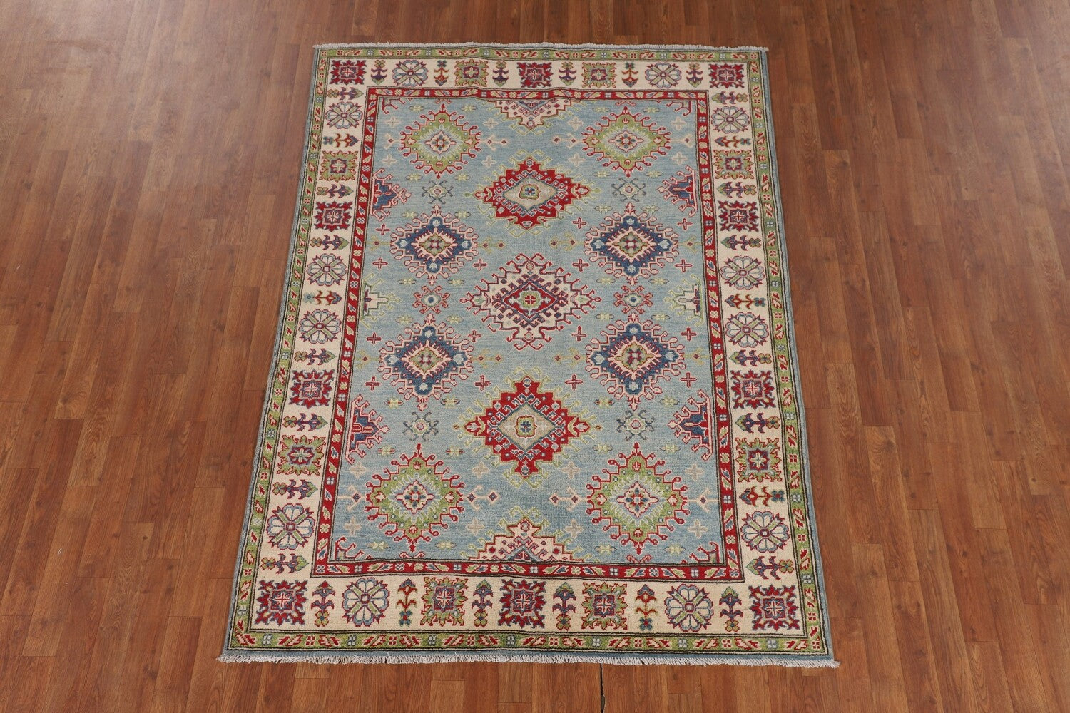 Light Blue Geometric Kazak Oriental Rug 5x7