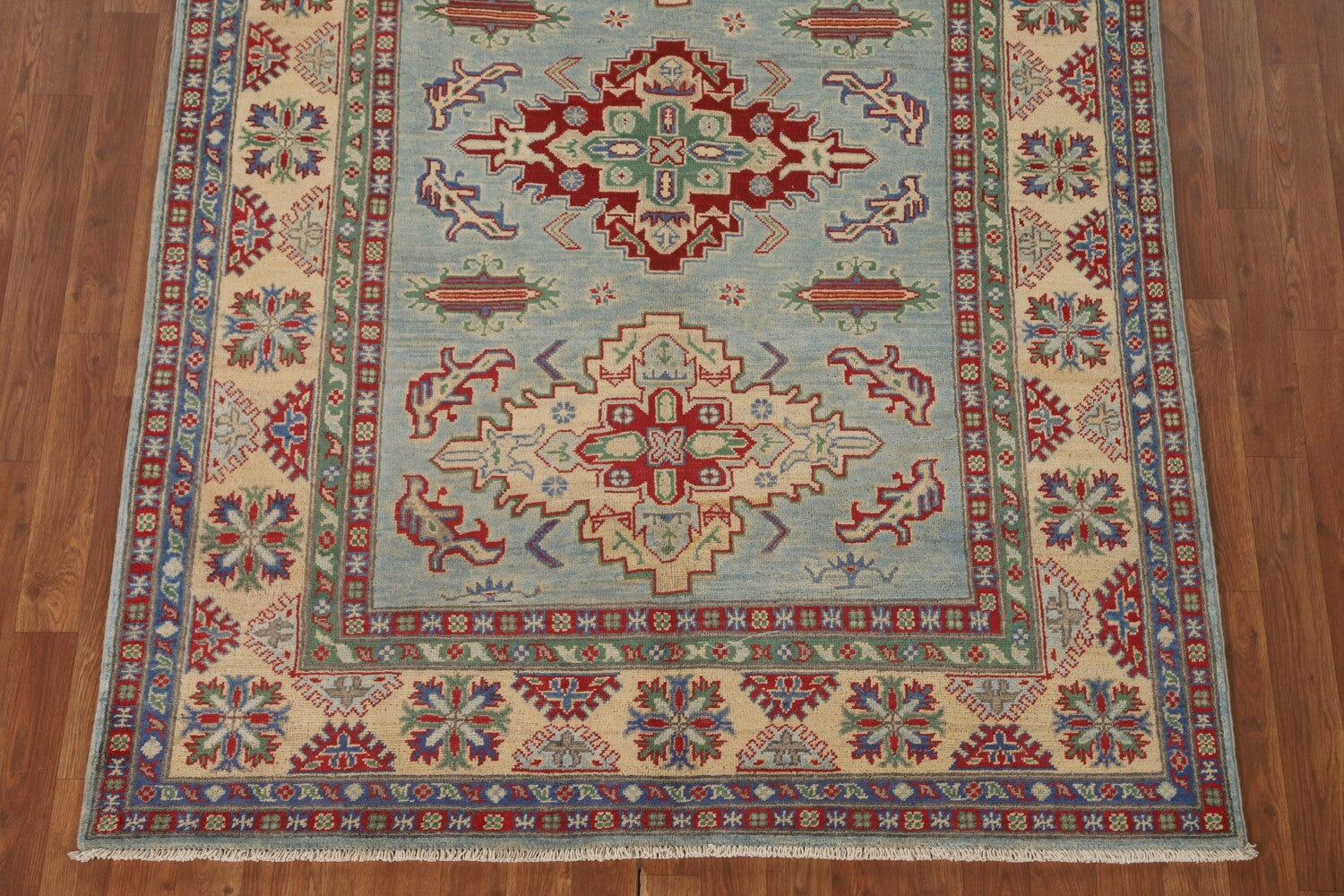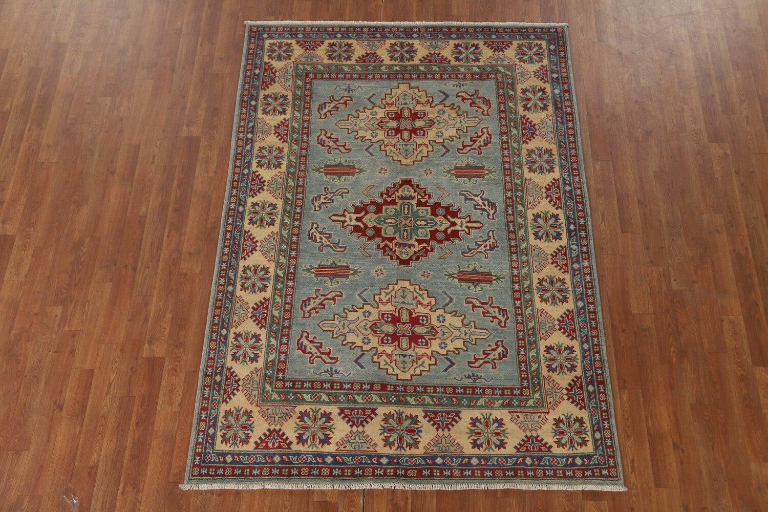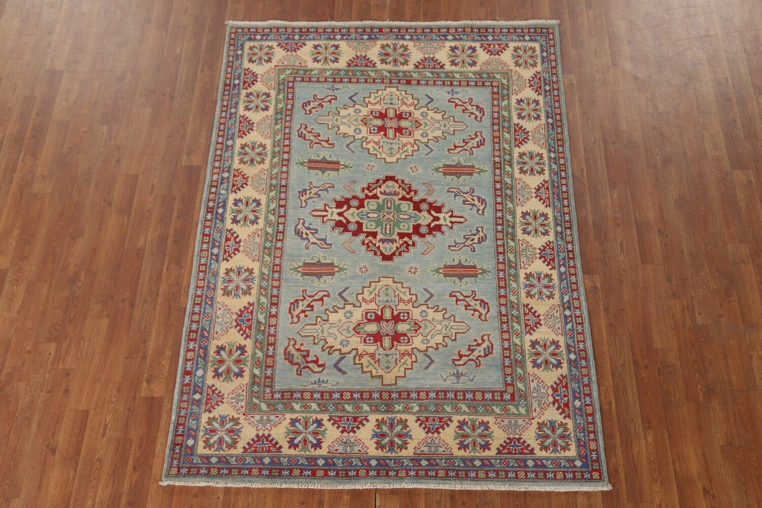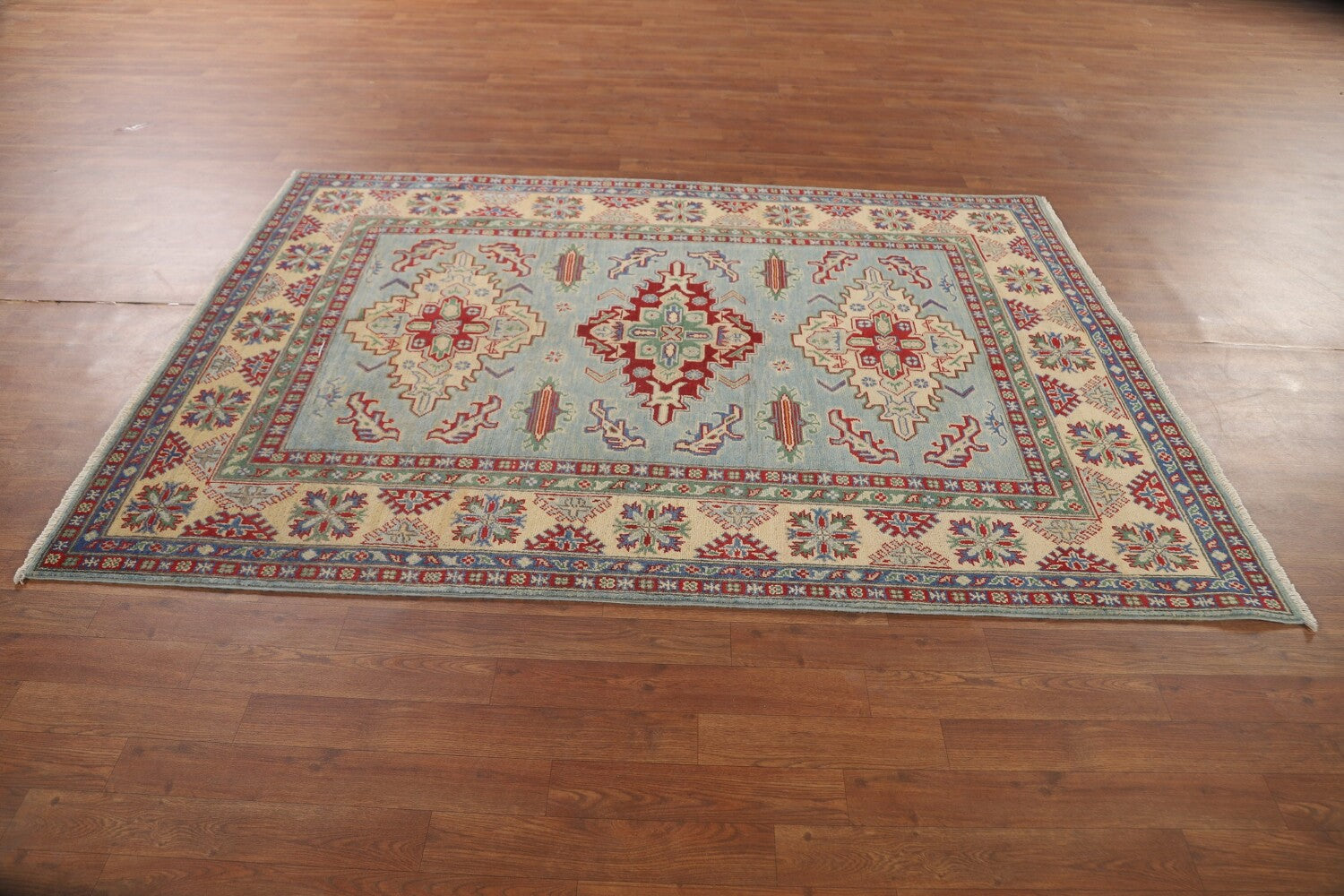 Light Blue Geometric Kazak Oriental Rug 5x7
