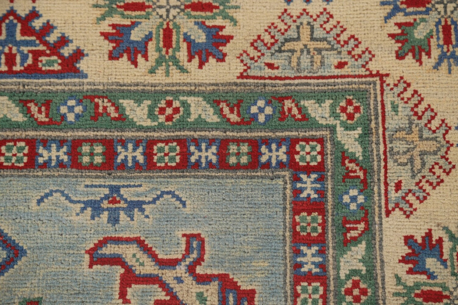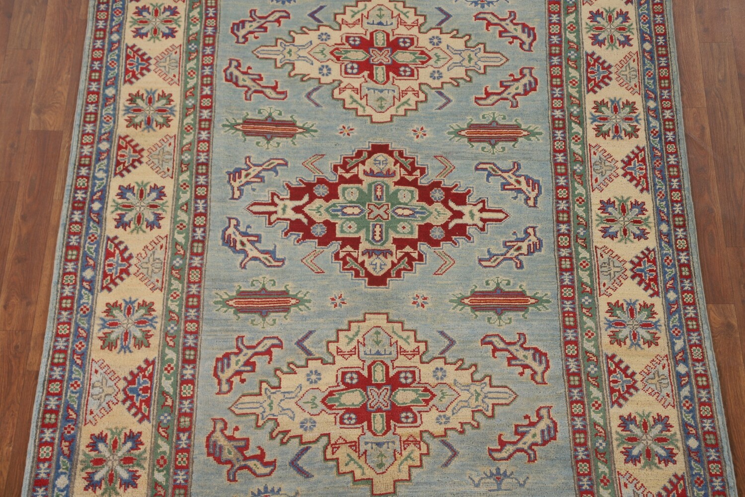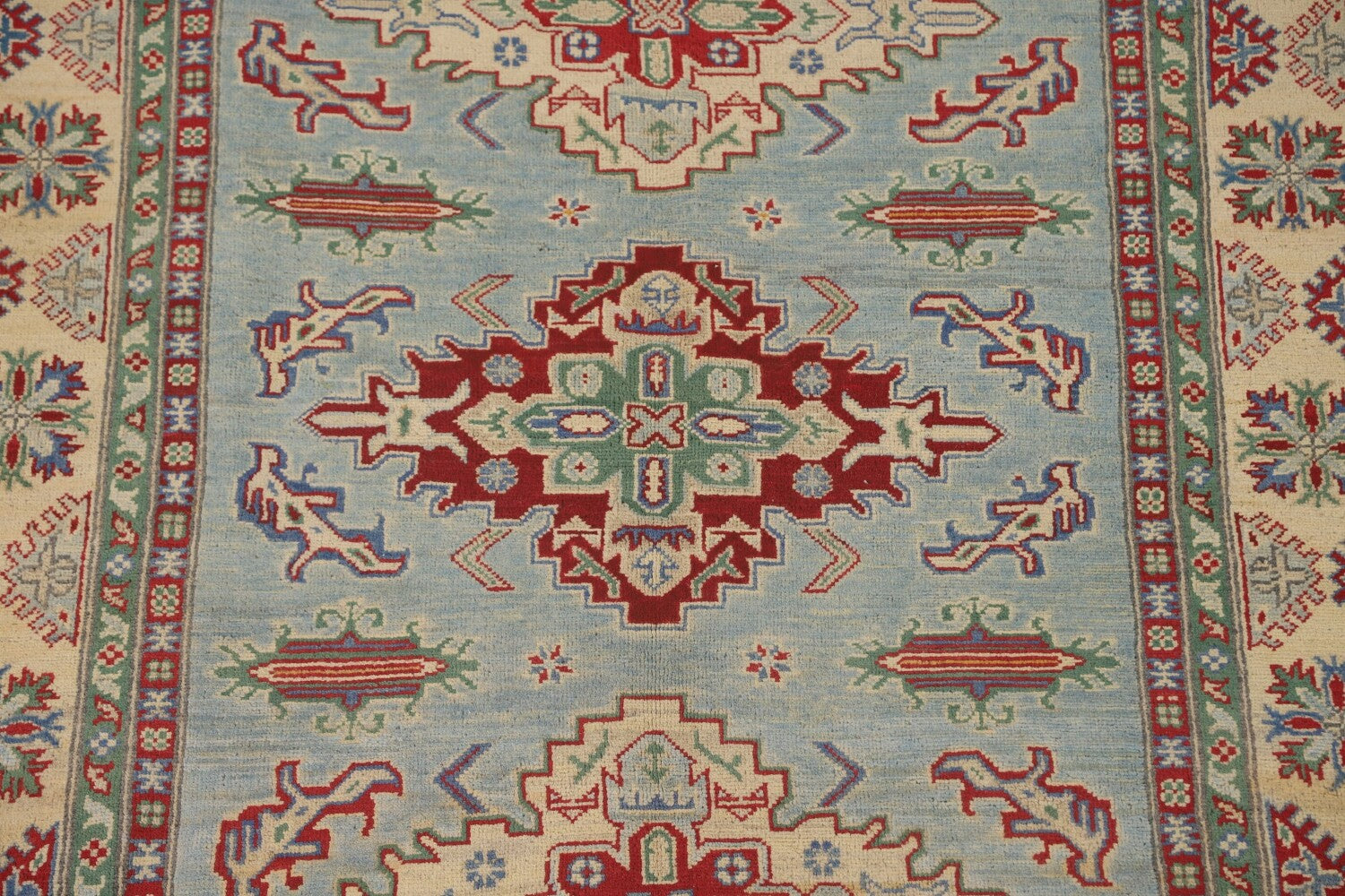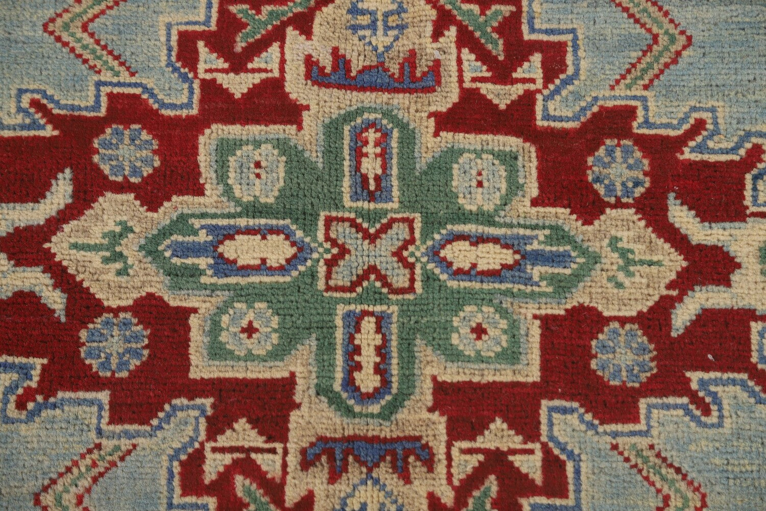 Light Blue Geometric Kazak Oriental Rug 5x7
