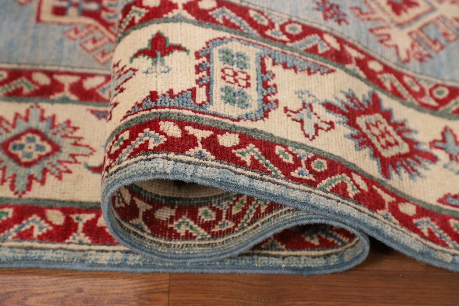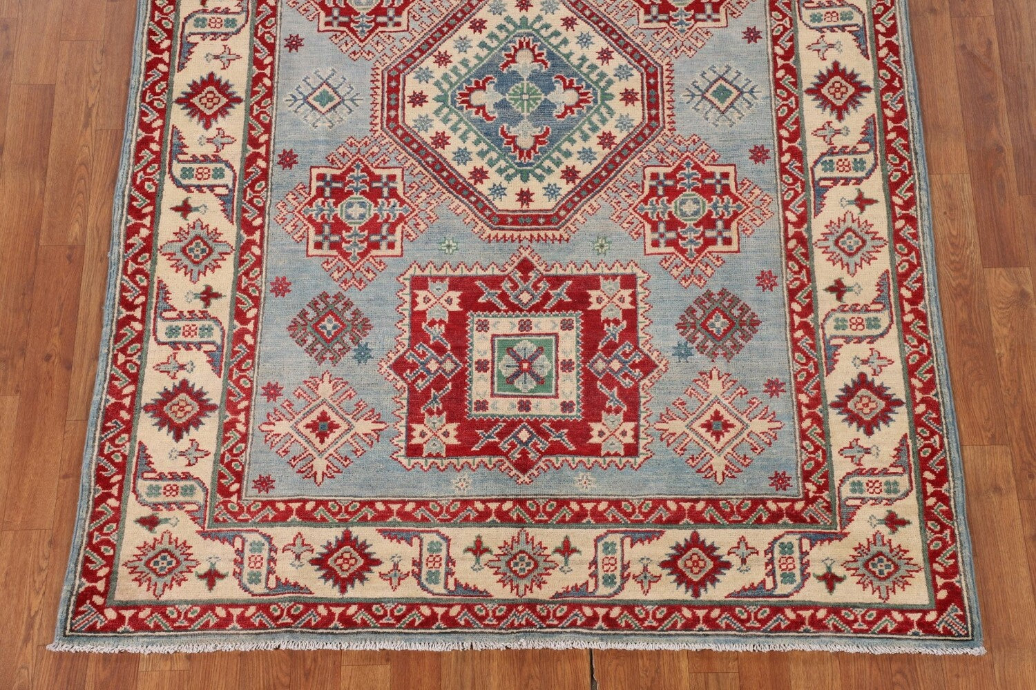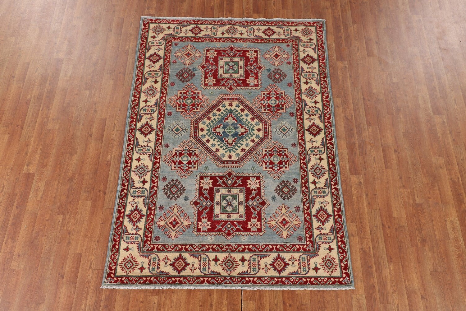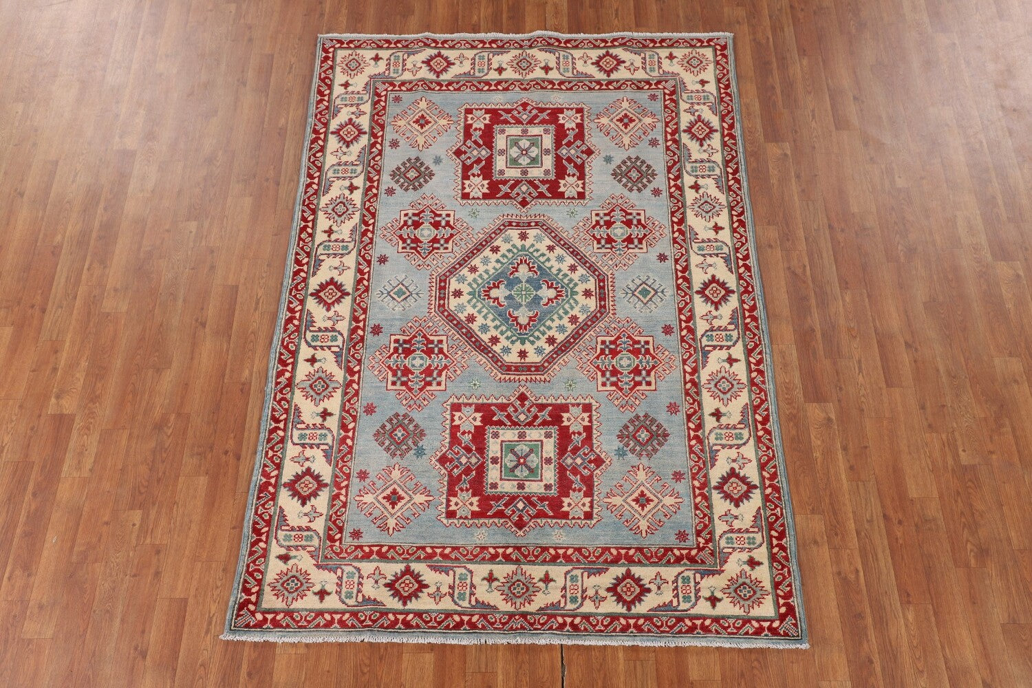 Light Blue Geometric Kazak Oriental Rug 5x7