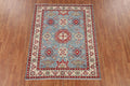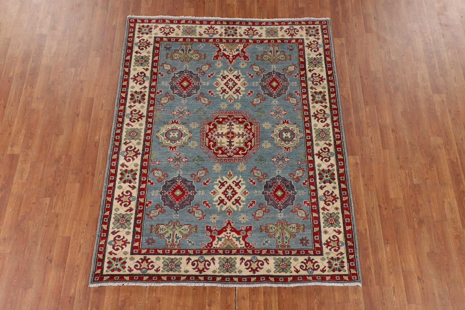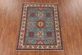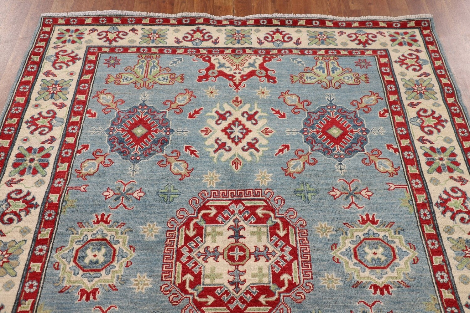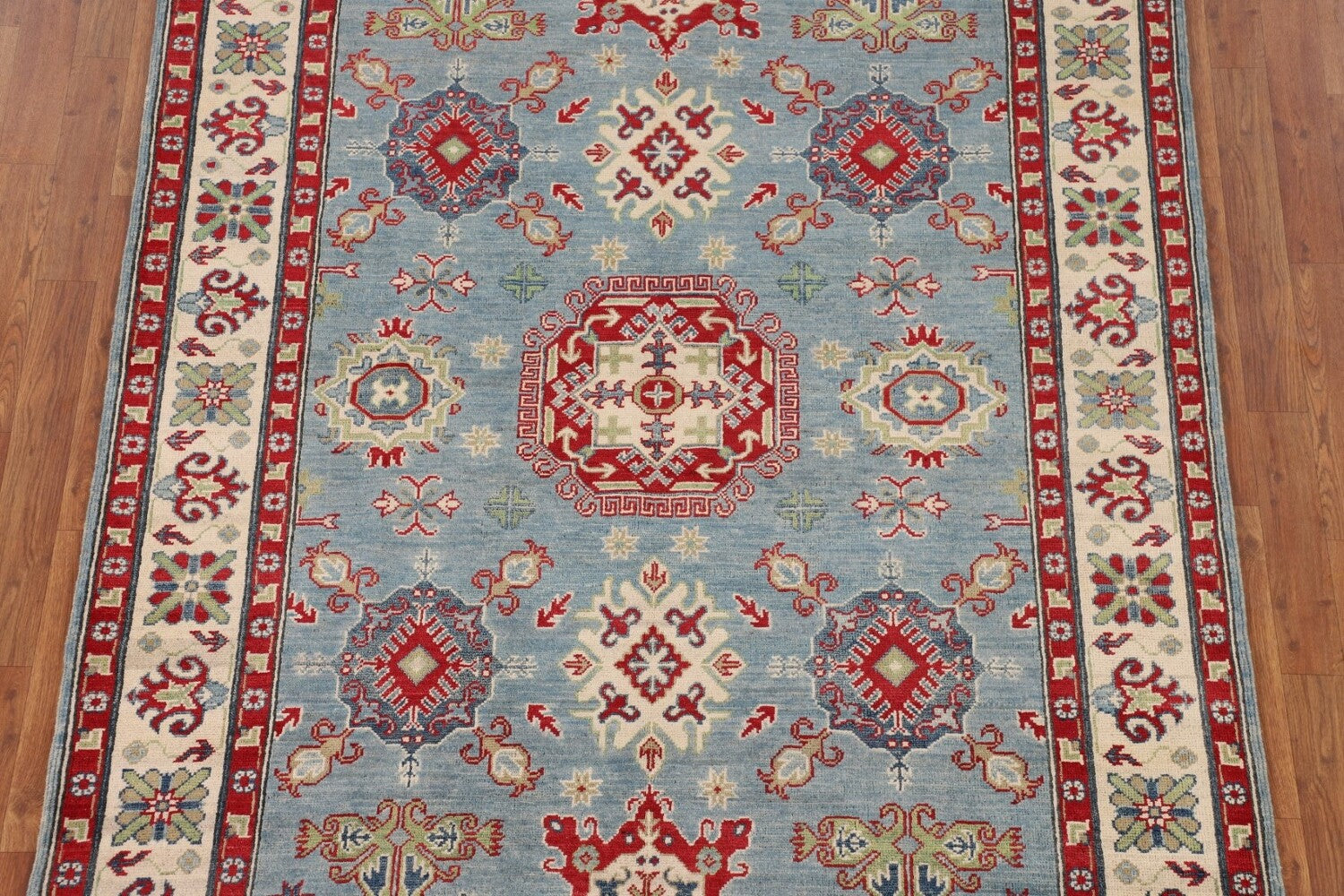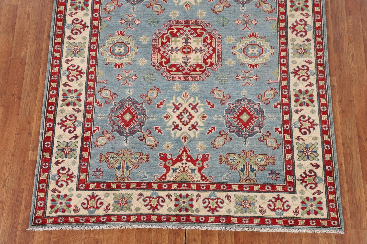 Light Blue Geometric Kazak Oriental Rug 5x7