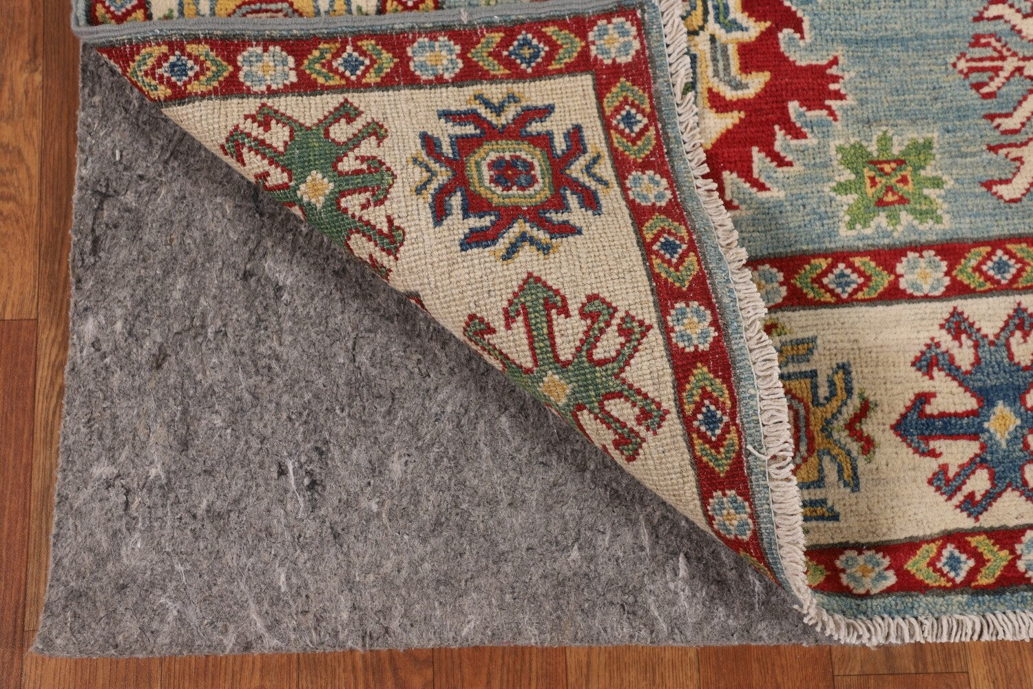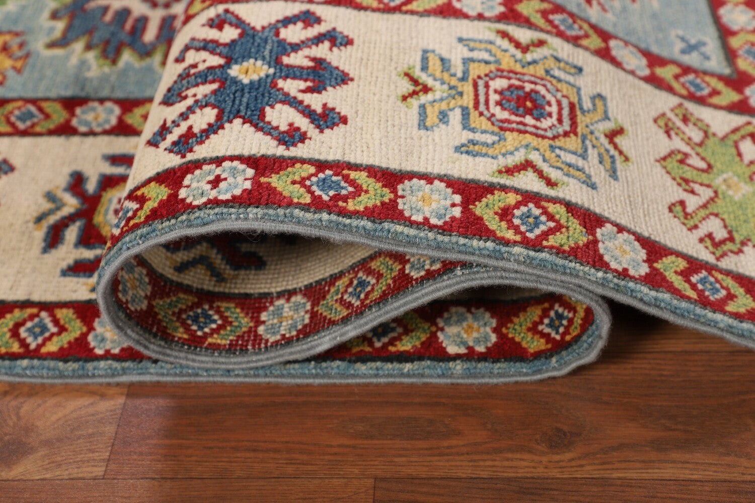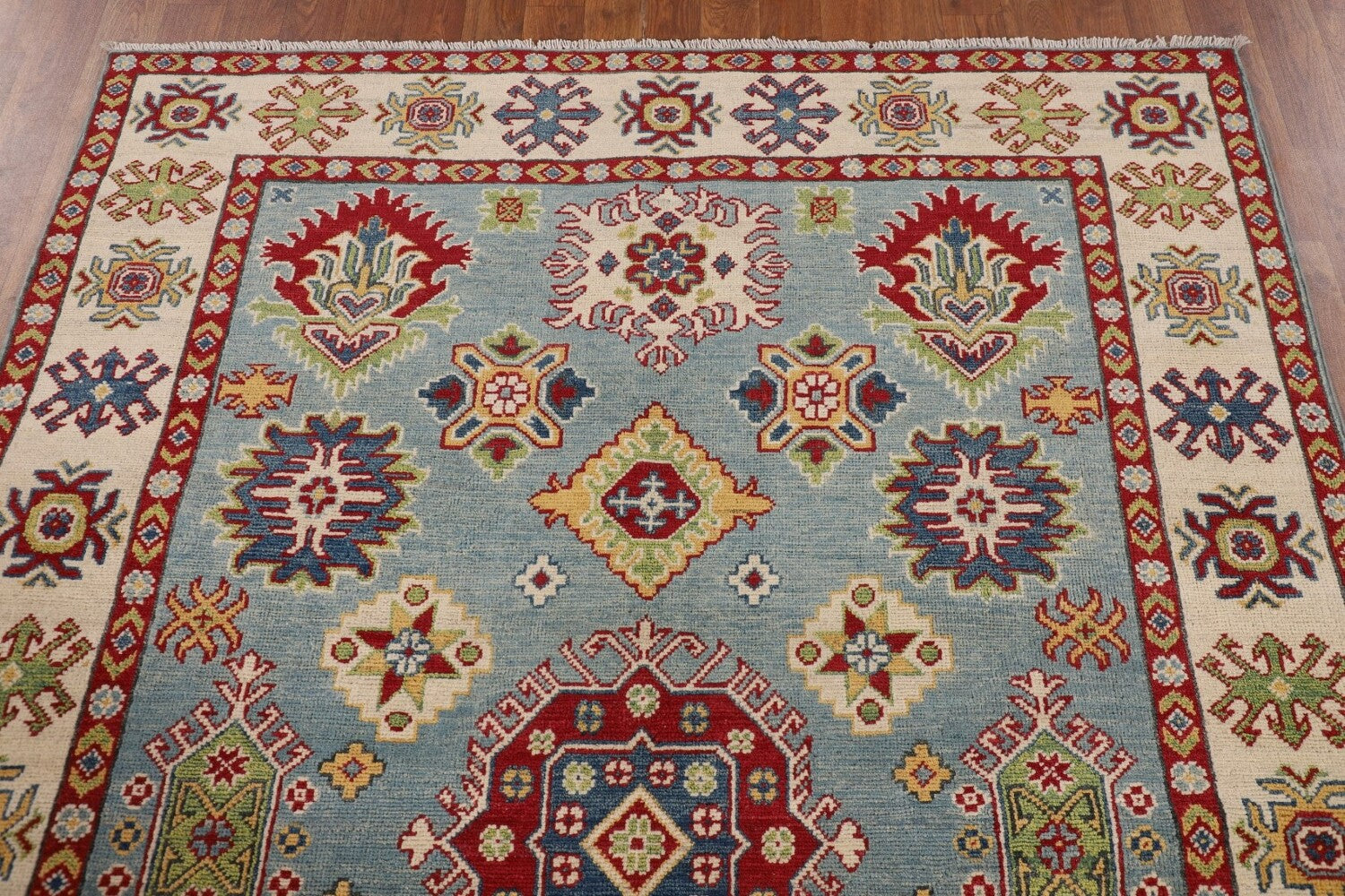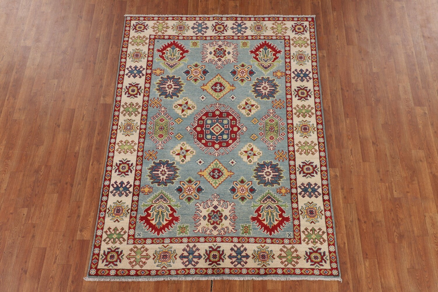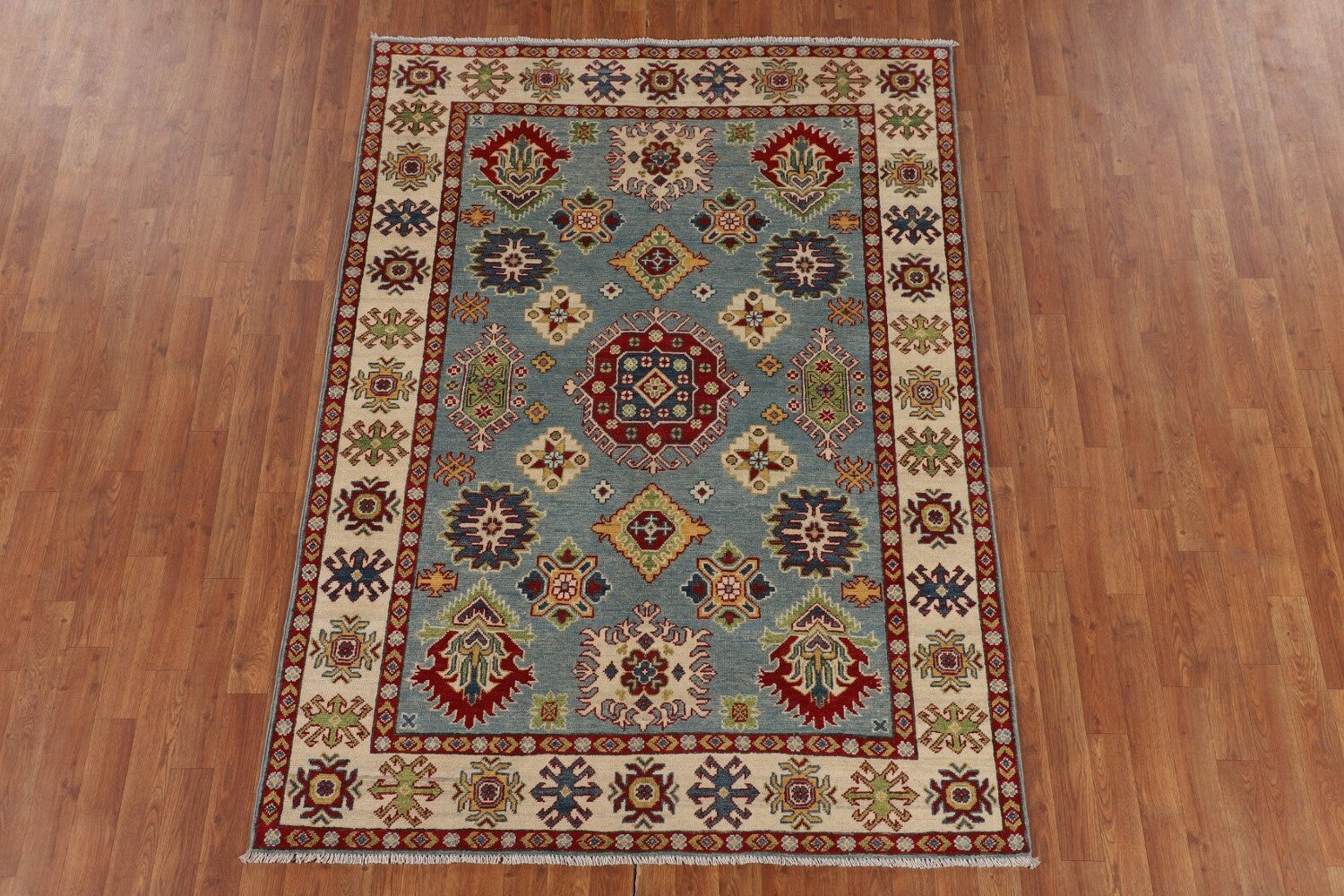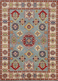 Light Blue Geometric Kazak Oriental Rug 5x7