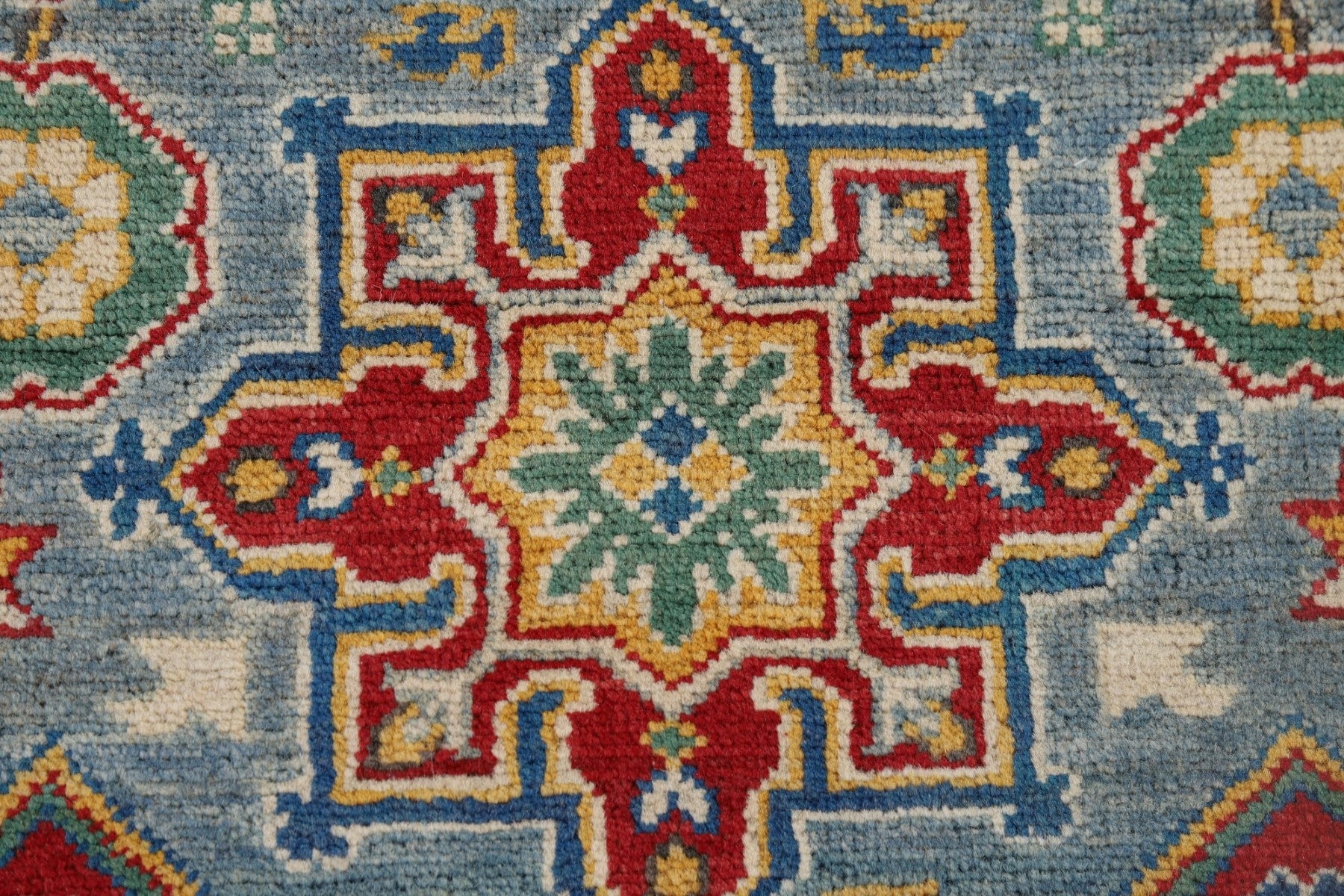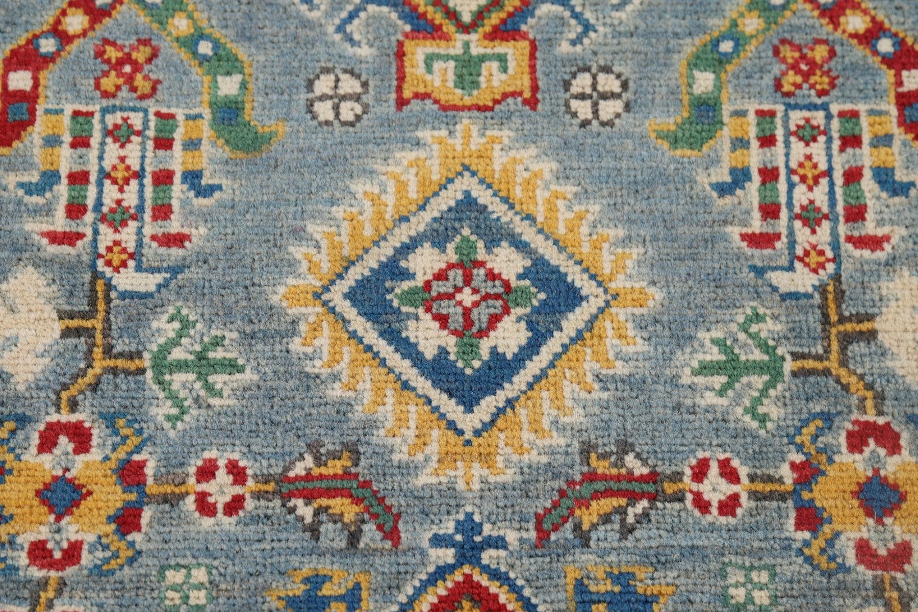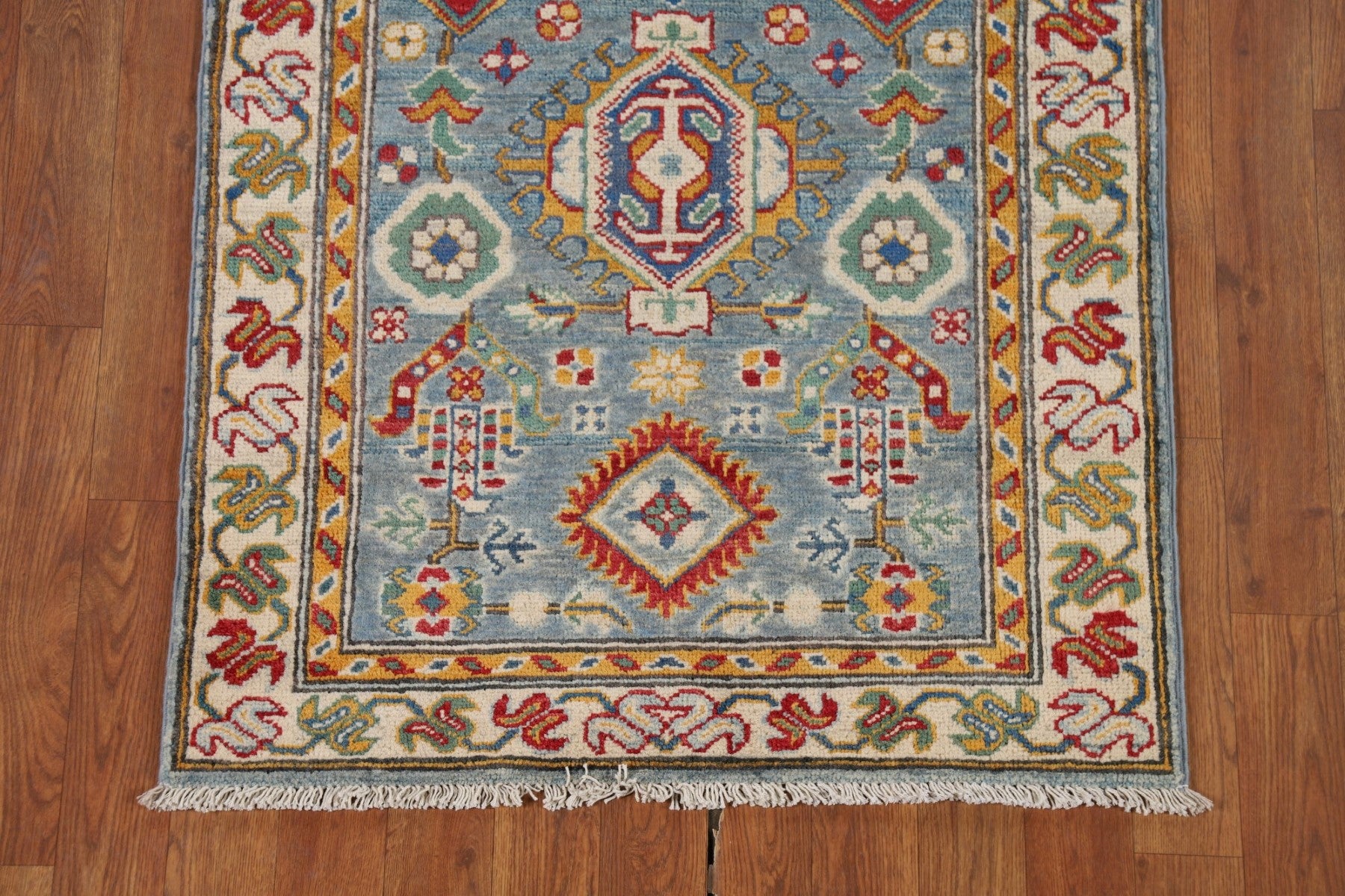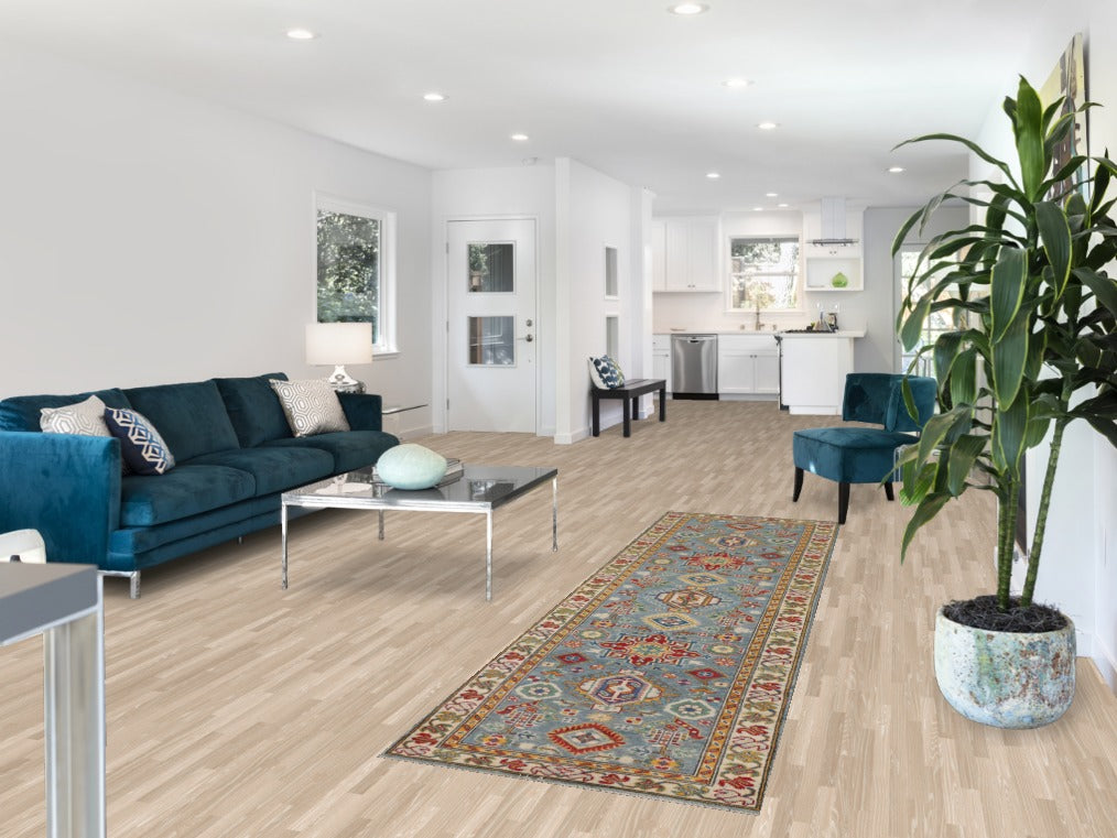 Light Blue Geometric Kazak Oriental Runner Rug 3x10