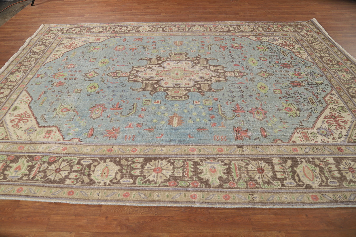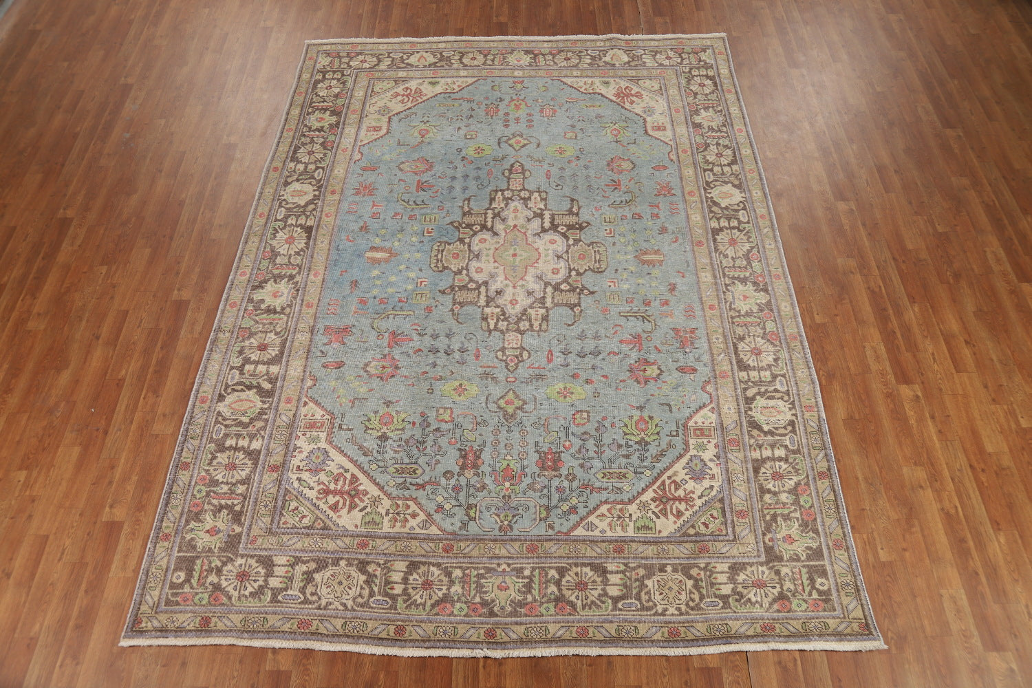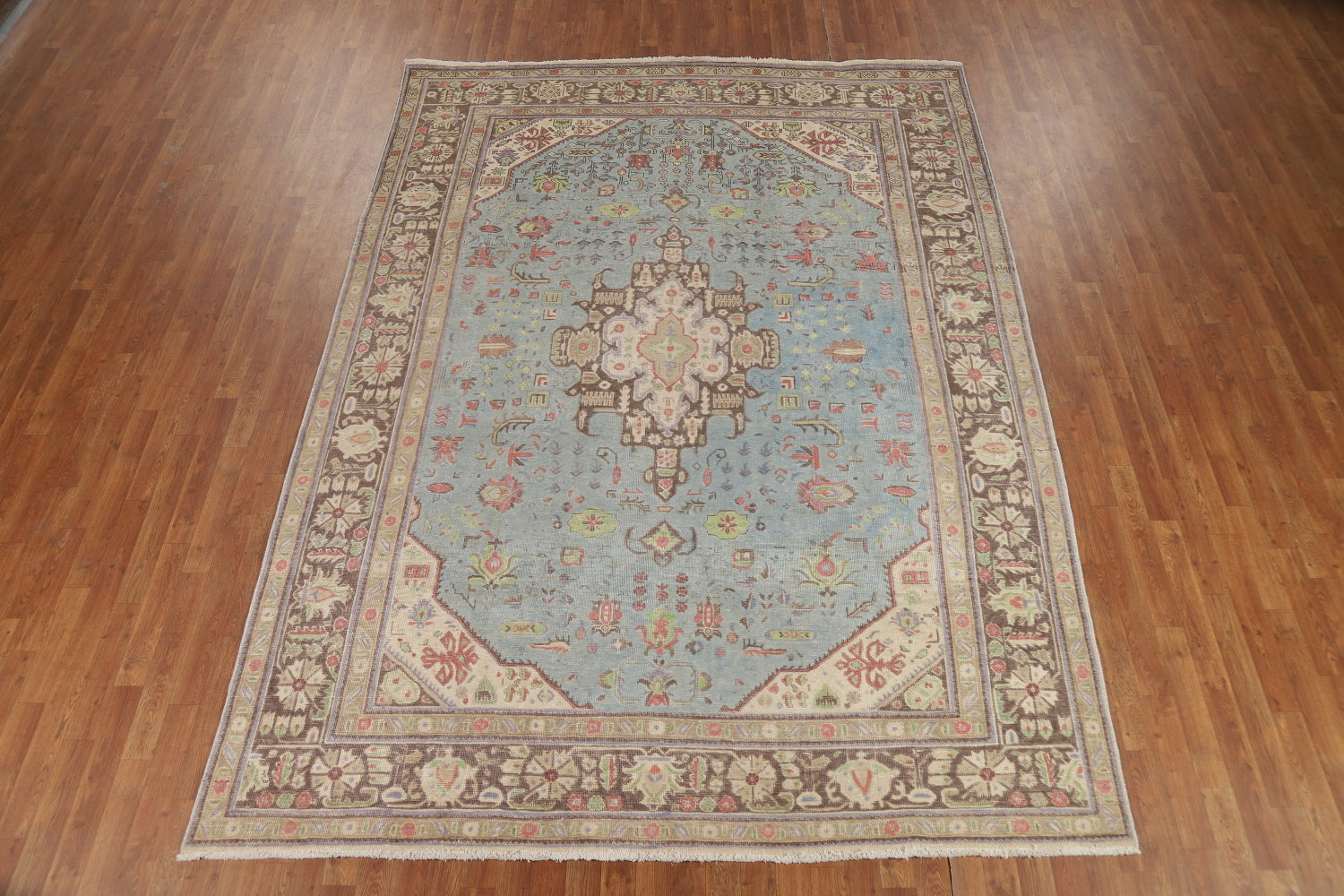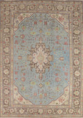 Light Blue Geometric Wool Tabriz Persian Area Rug 8x11