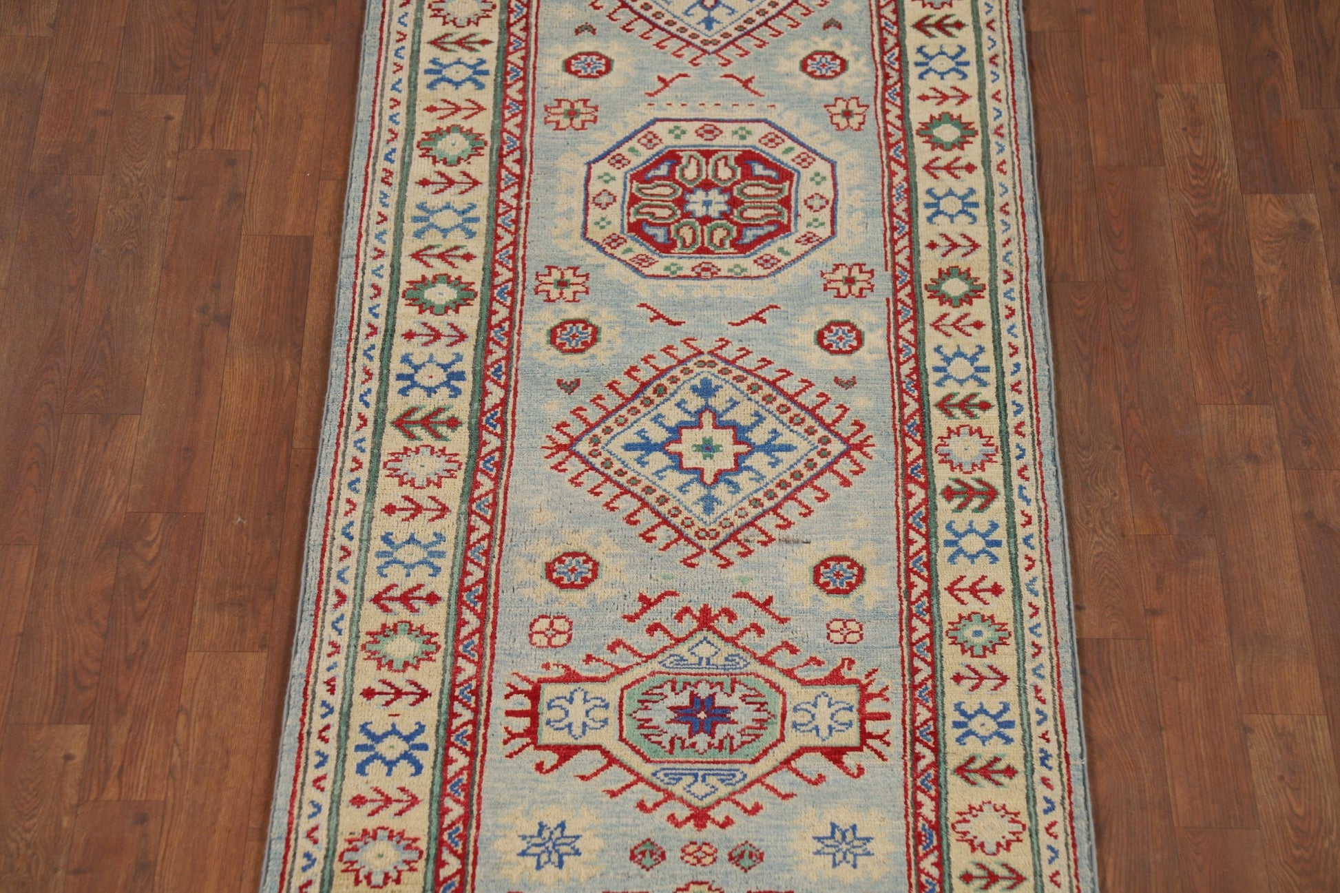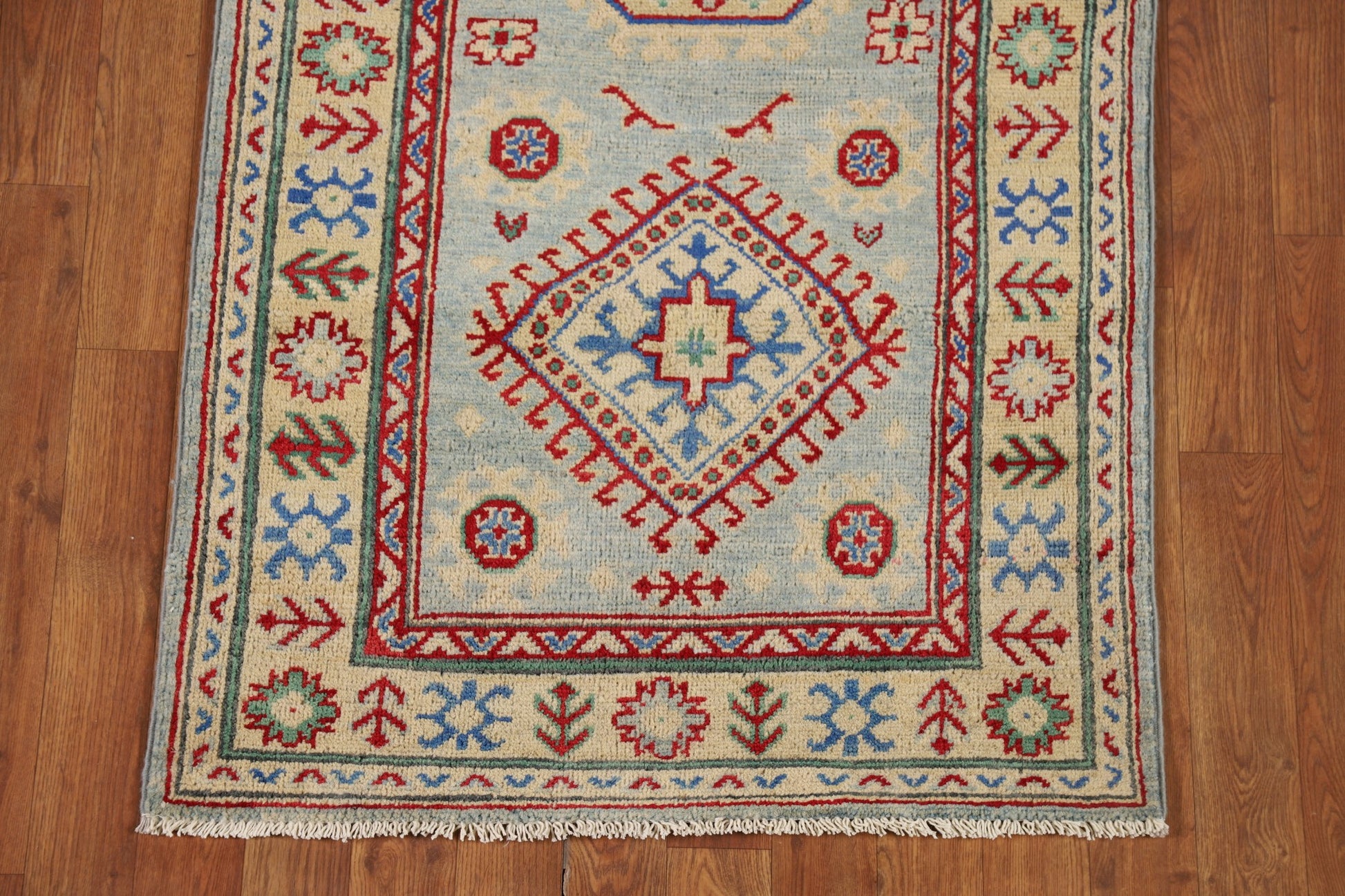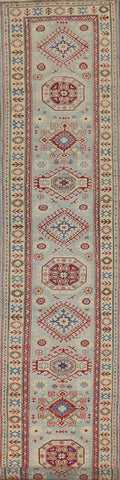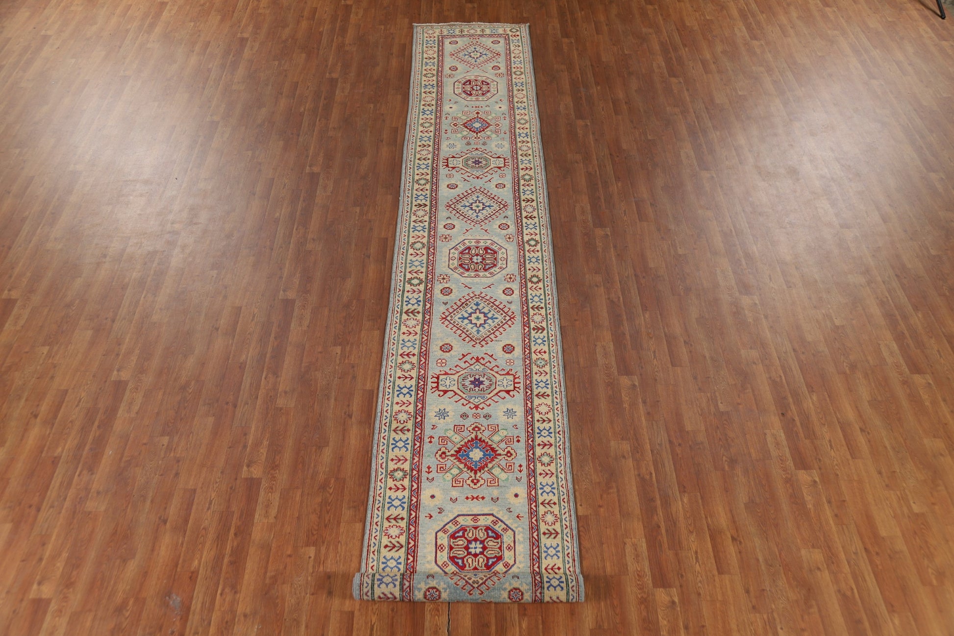 Light Blue Handmade Kazak Oriental Runner Rug 3x16