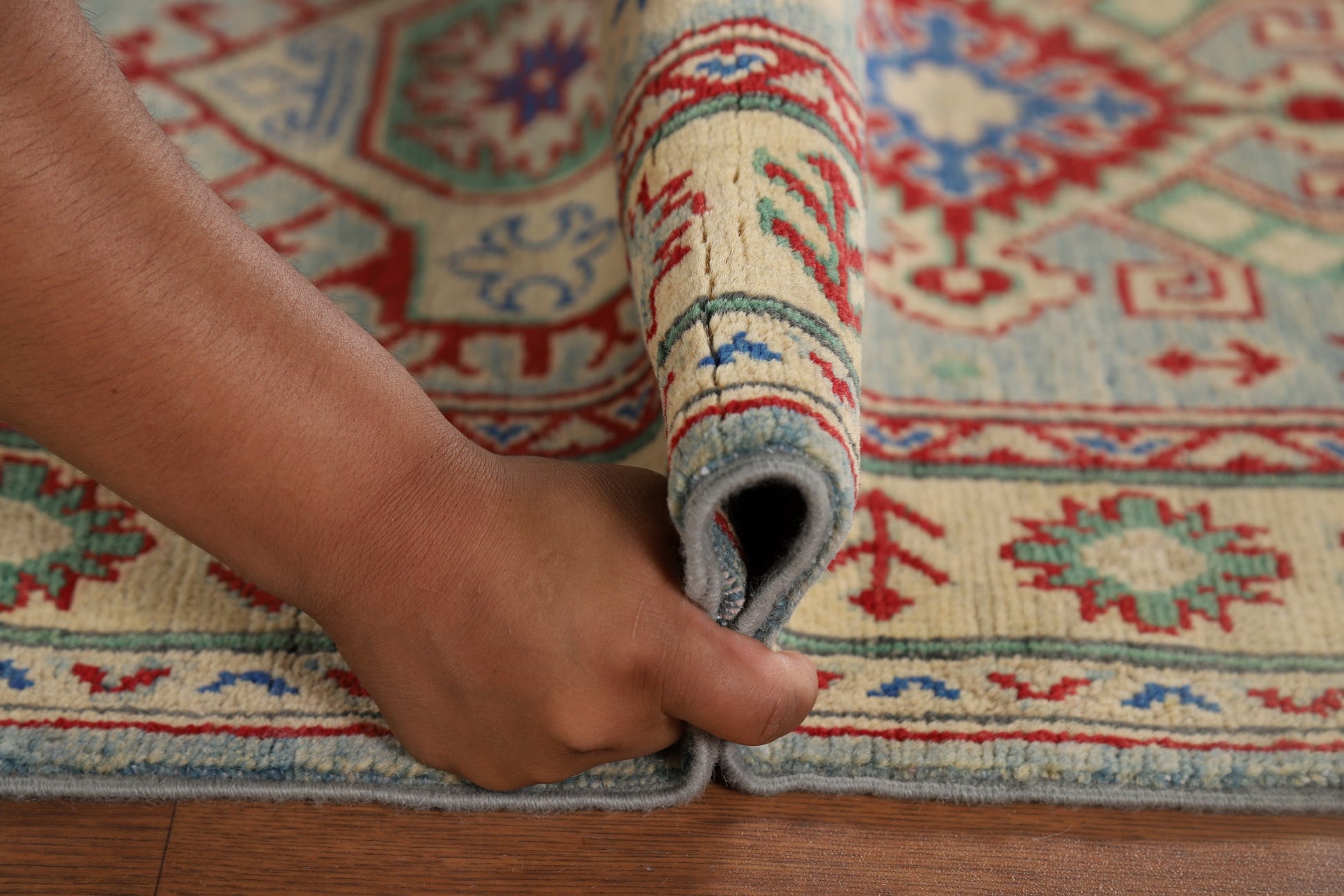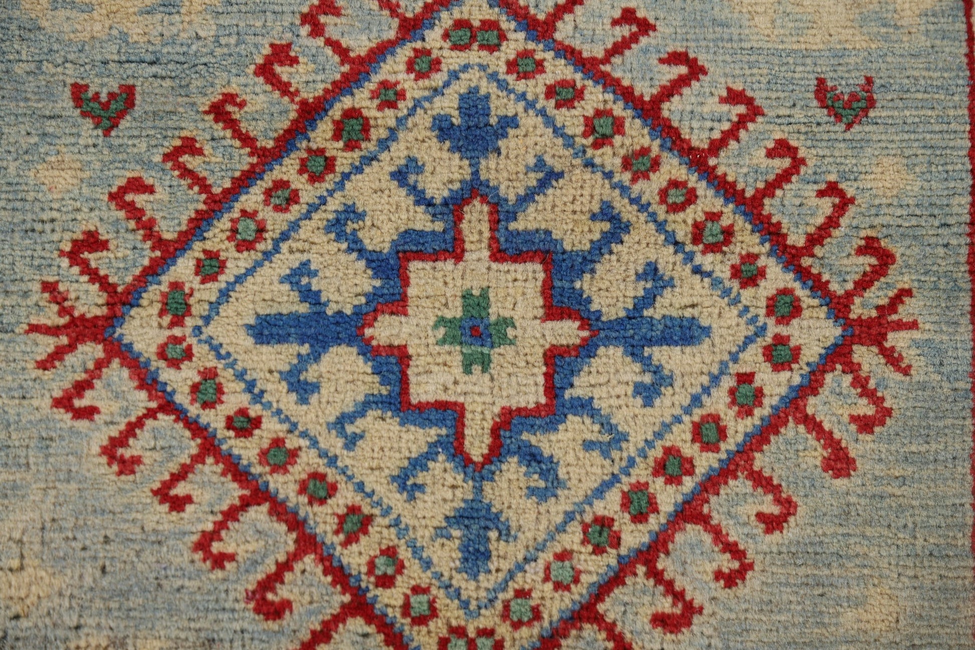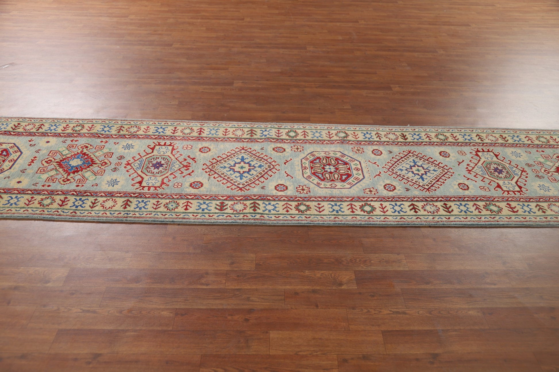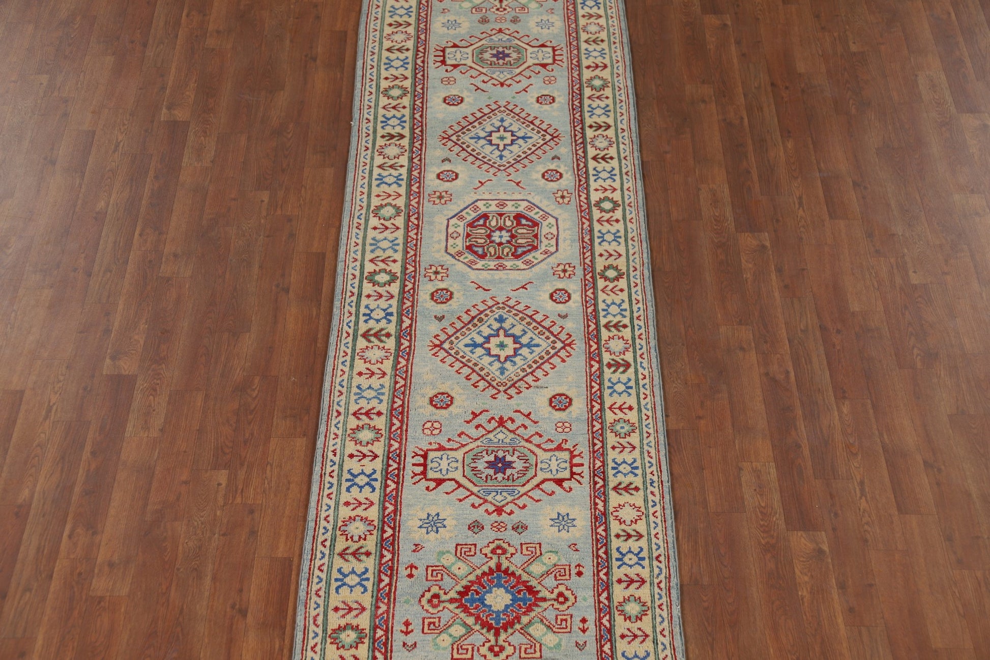 Light Blue Handmade Kazak Oriental Runner Rug 3x16