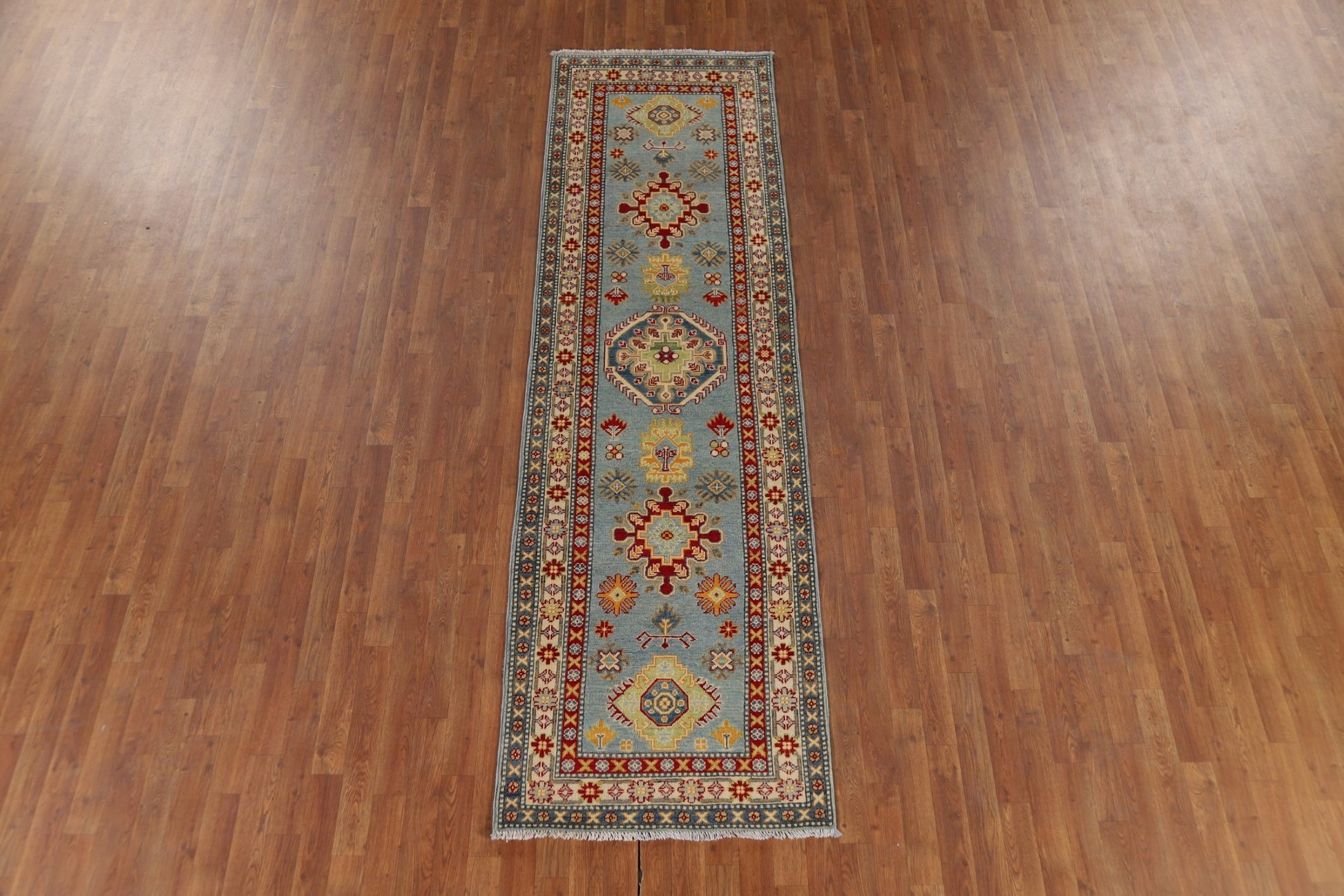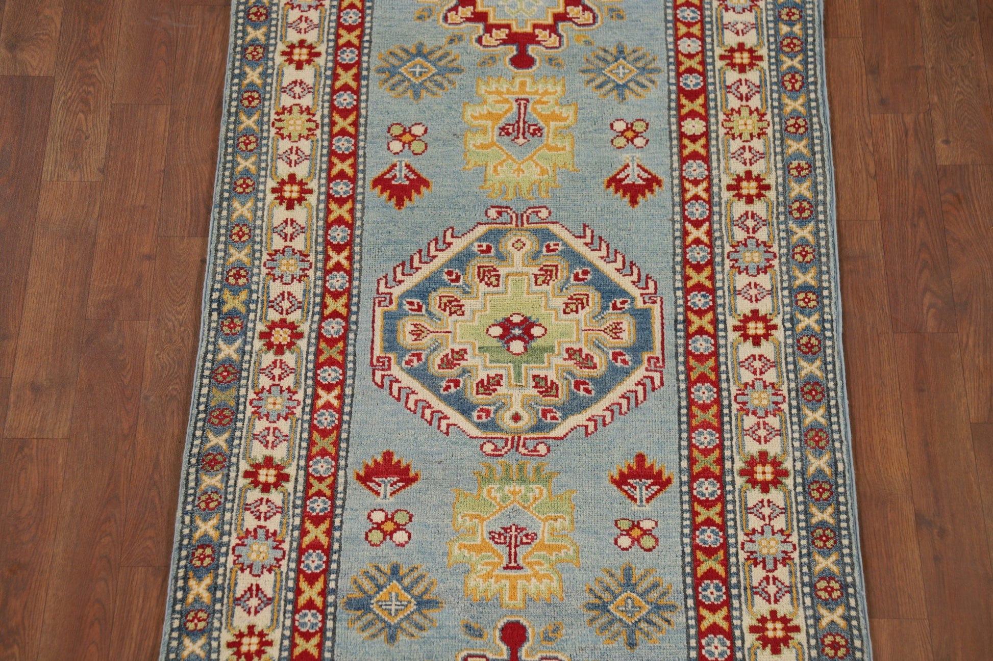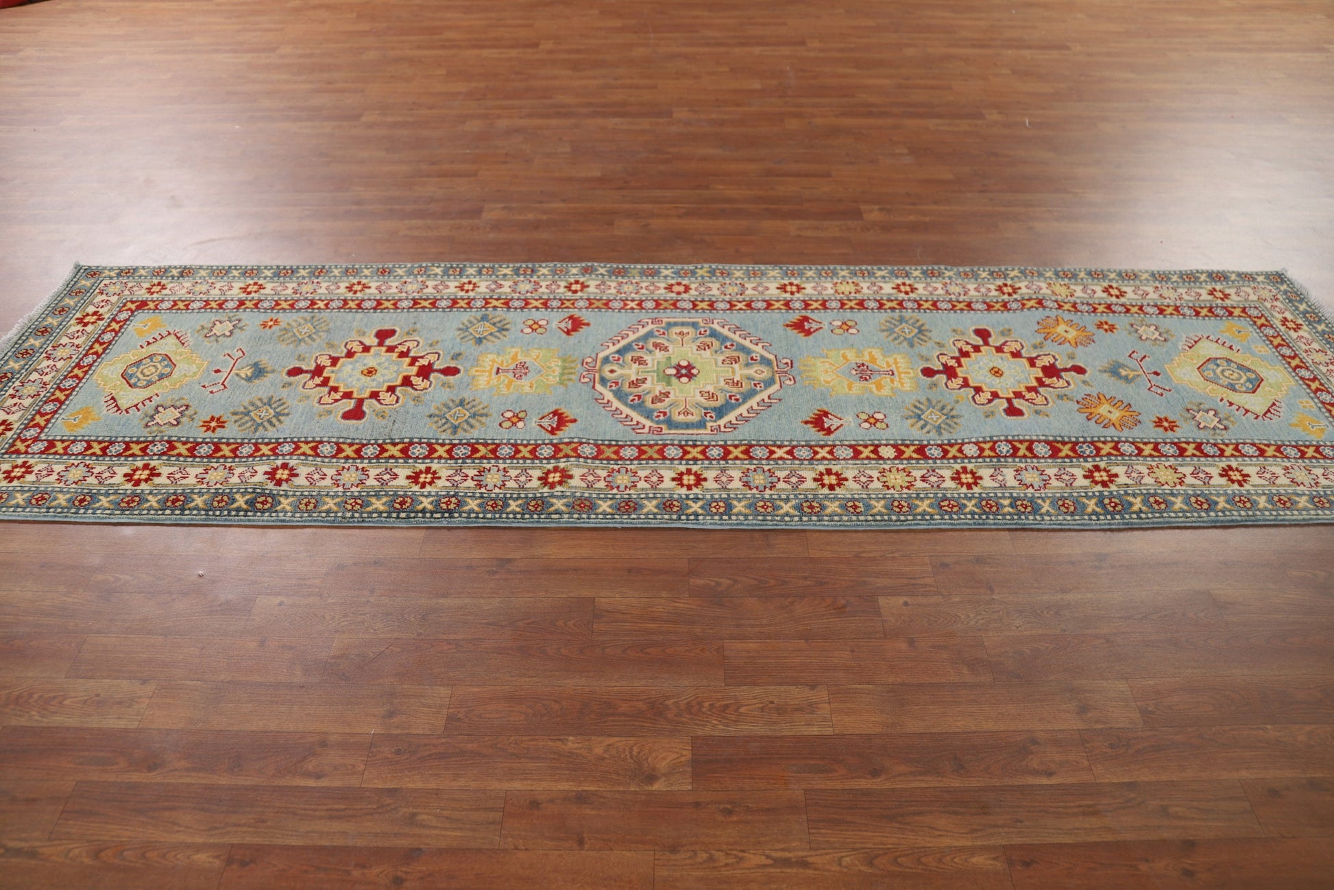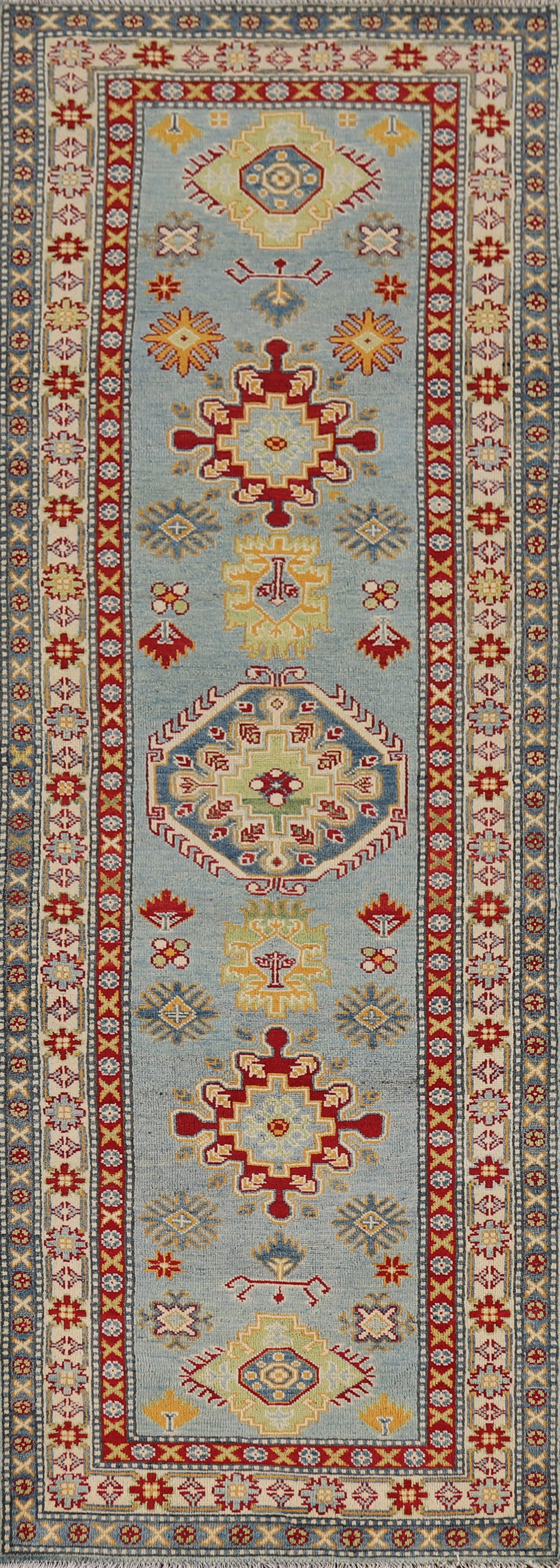 Light Blue Handmade Kazak Wool Runner Rug 3x10