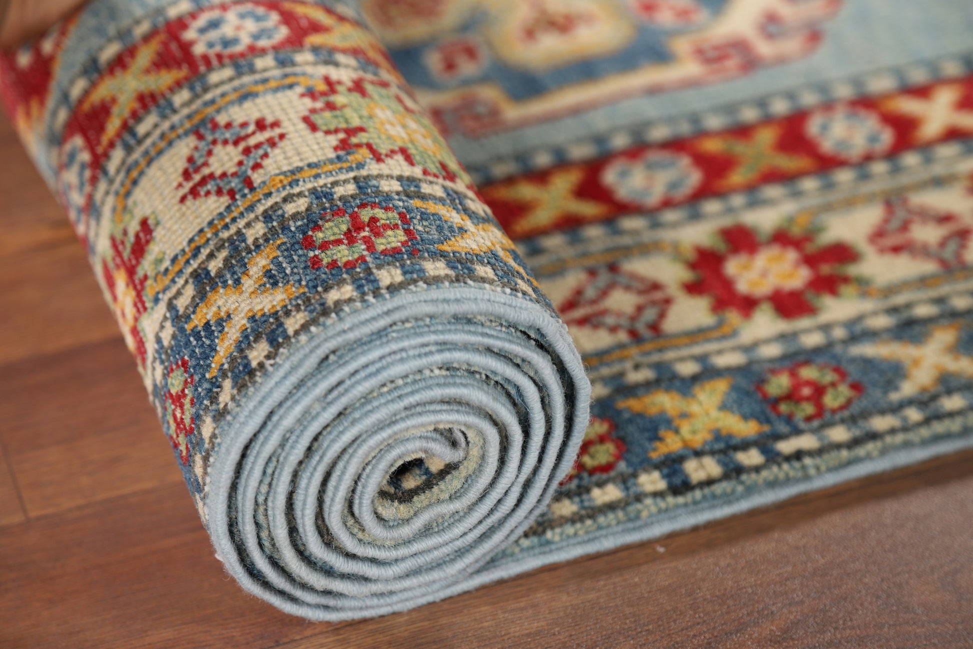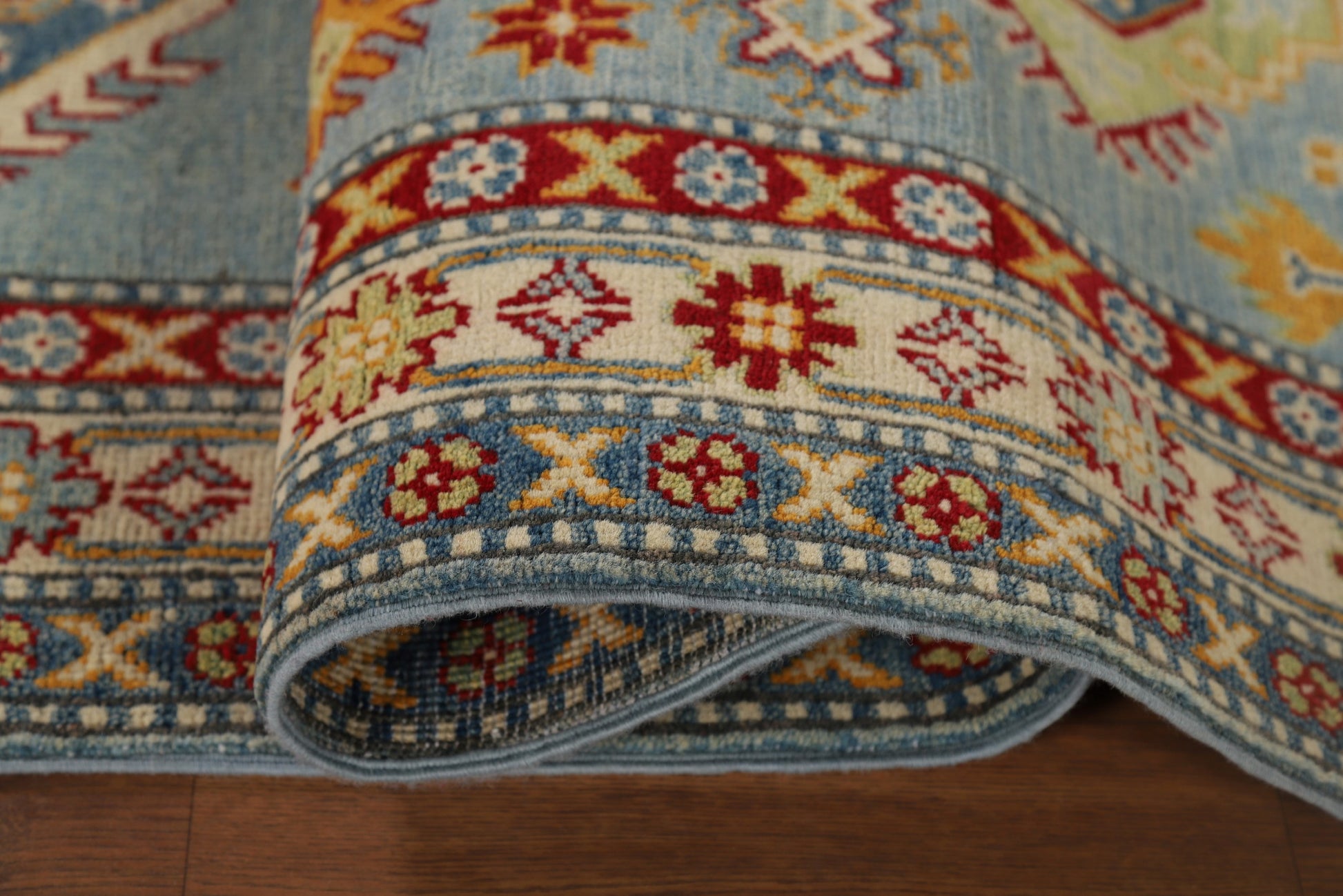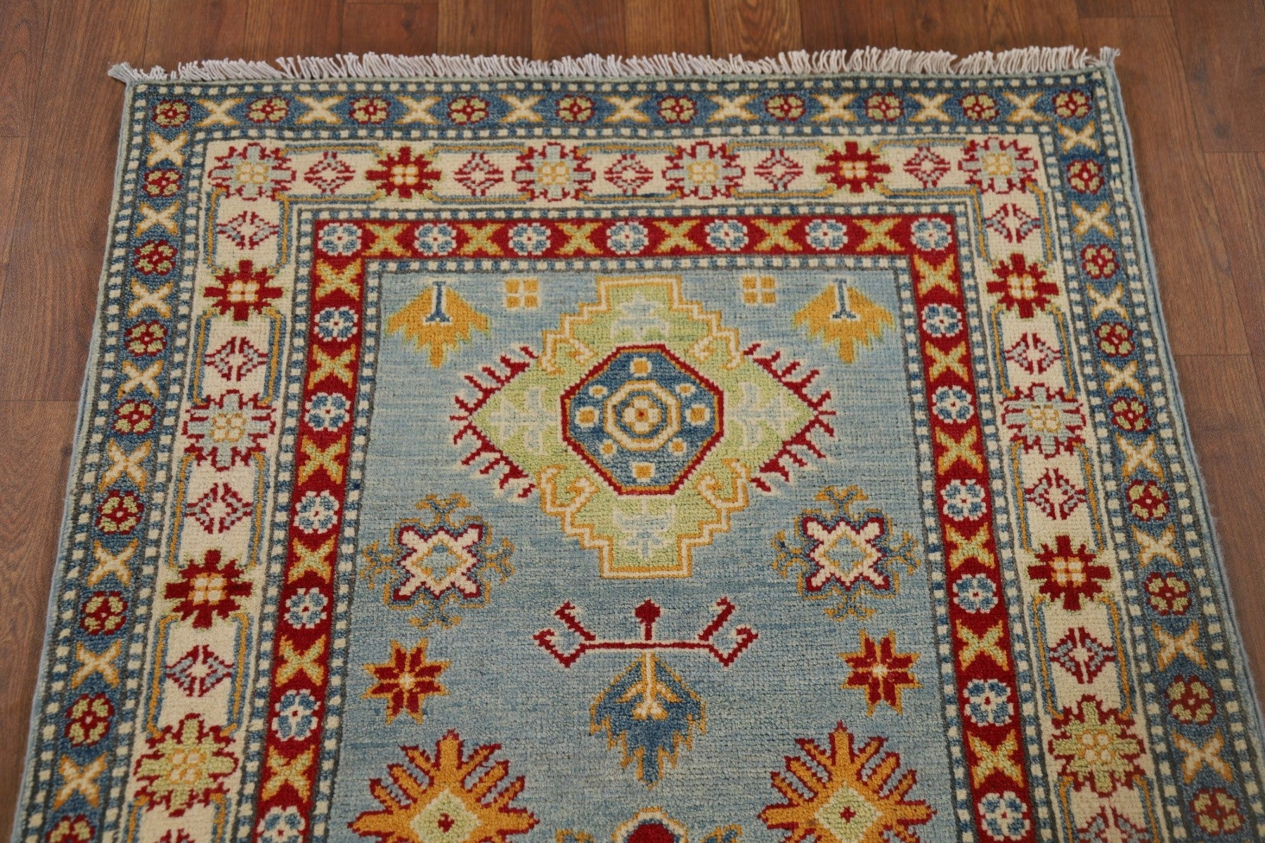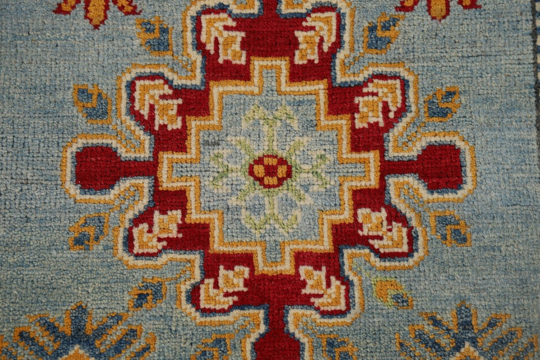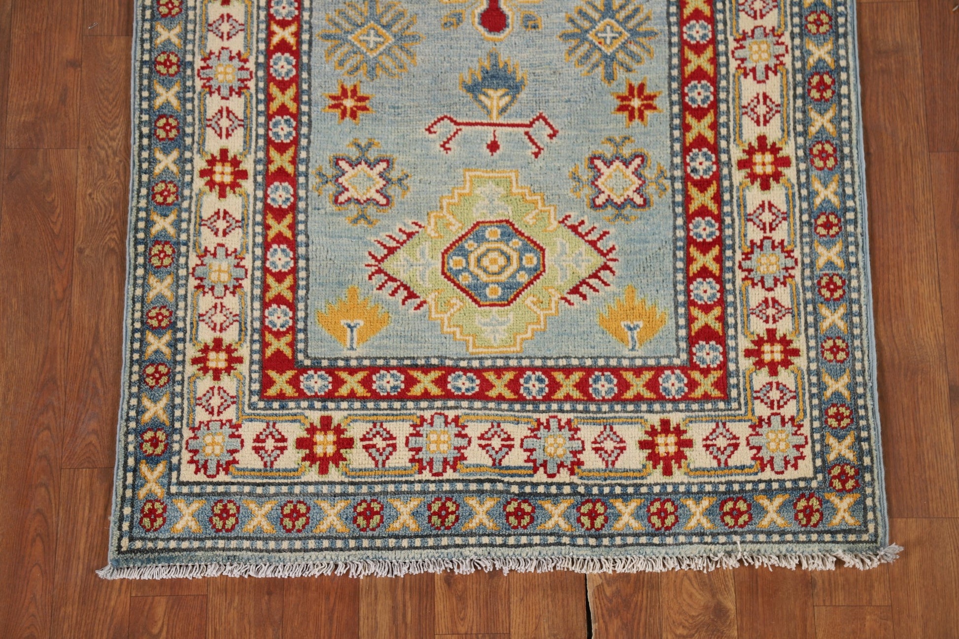 Light Blue Handmade Kazak Wool Runner Rug 3x10