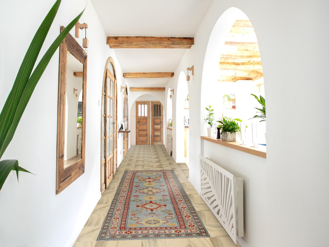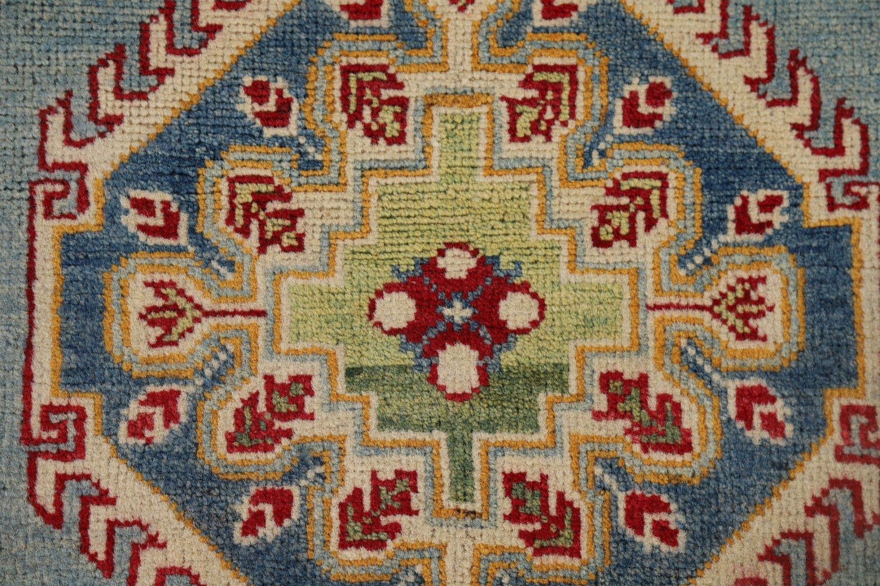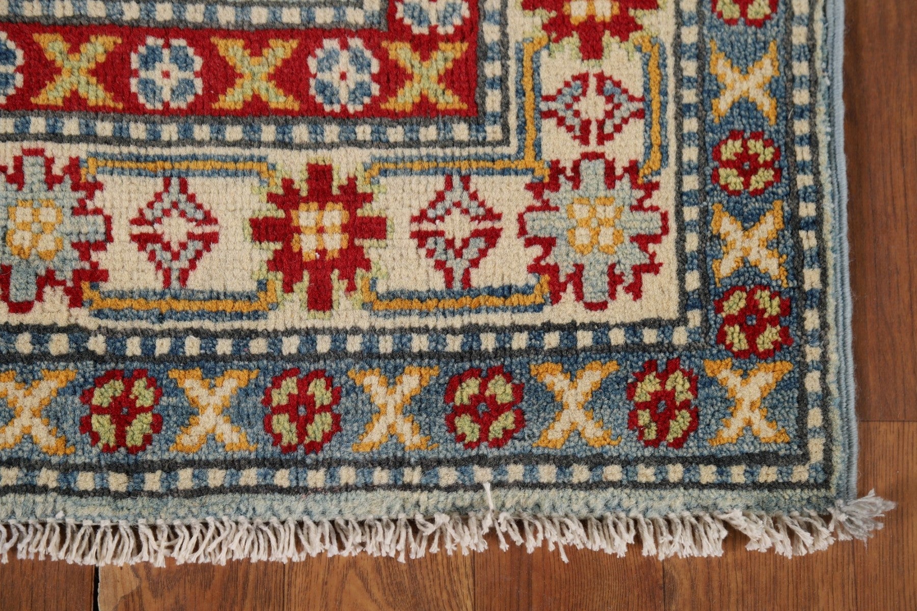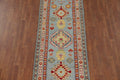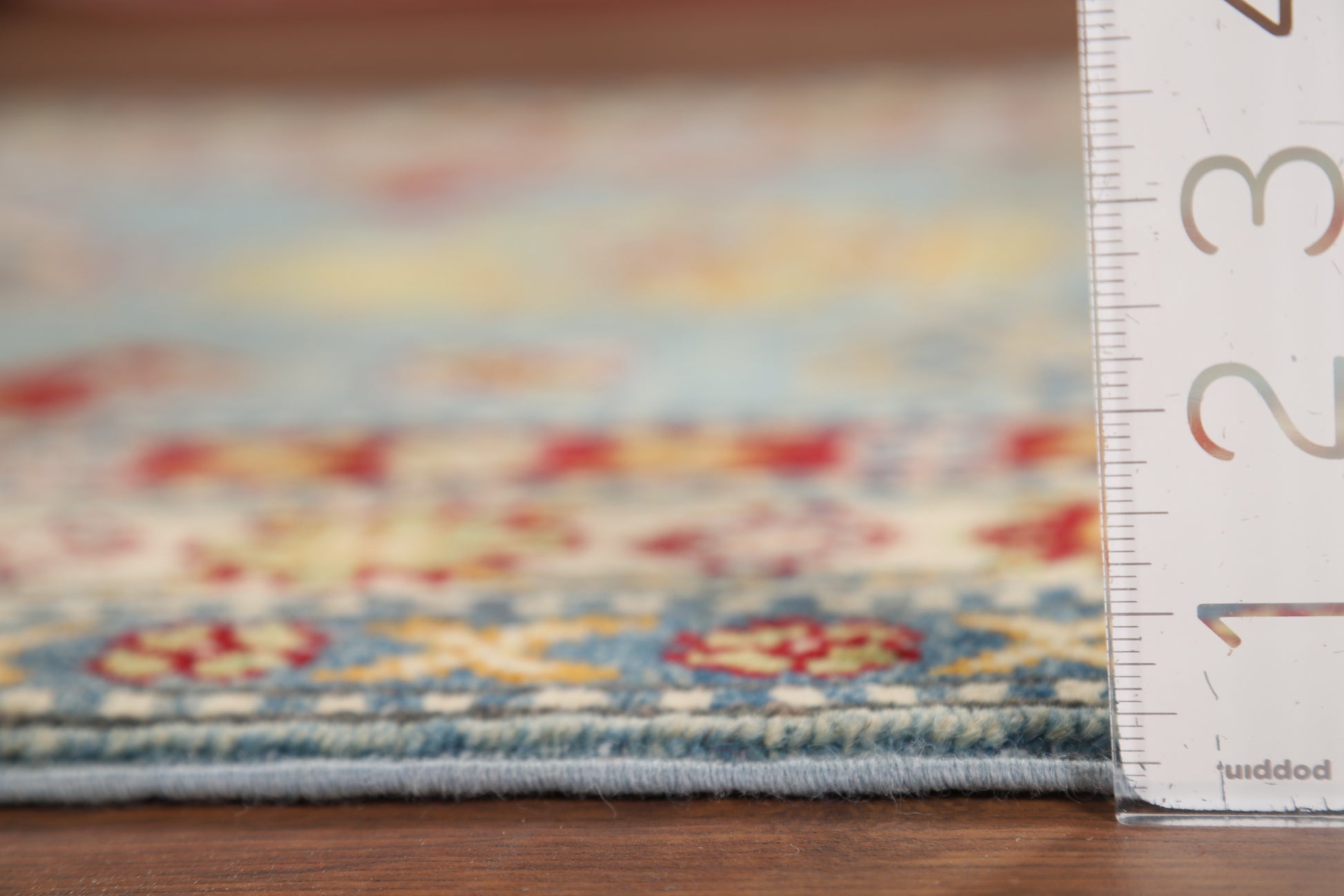 Light Blue Handmade Kazak Wool Runner Rug 3x10