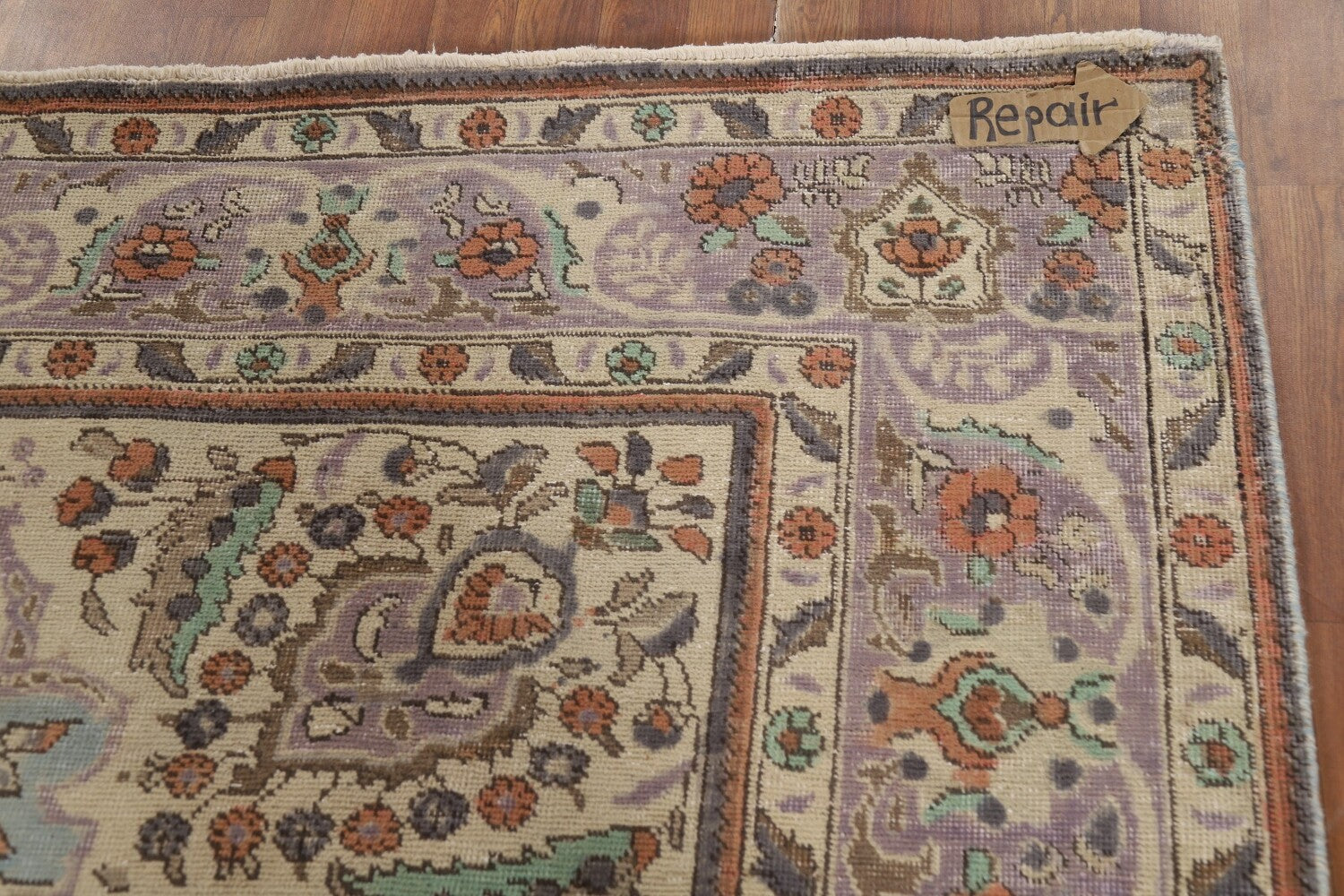 A Beautiful Genuine Persia ( Persia ) Tabriz rug is Hand Knotted by skillful weavers in Persia ( Persia ) with 100% Wool Material. This rug is in Very Good ( Evenly Low Pile-Repair) condition. dimensions are 11' 5'' X 8' 5'' in foot and 348 X 257 in centimeter. the primary color is Navy Blue & Blues.
