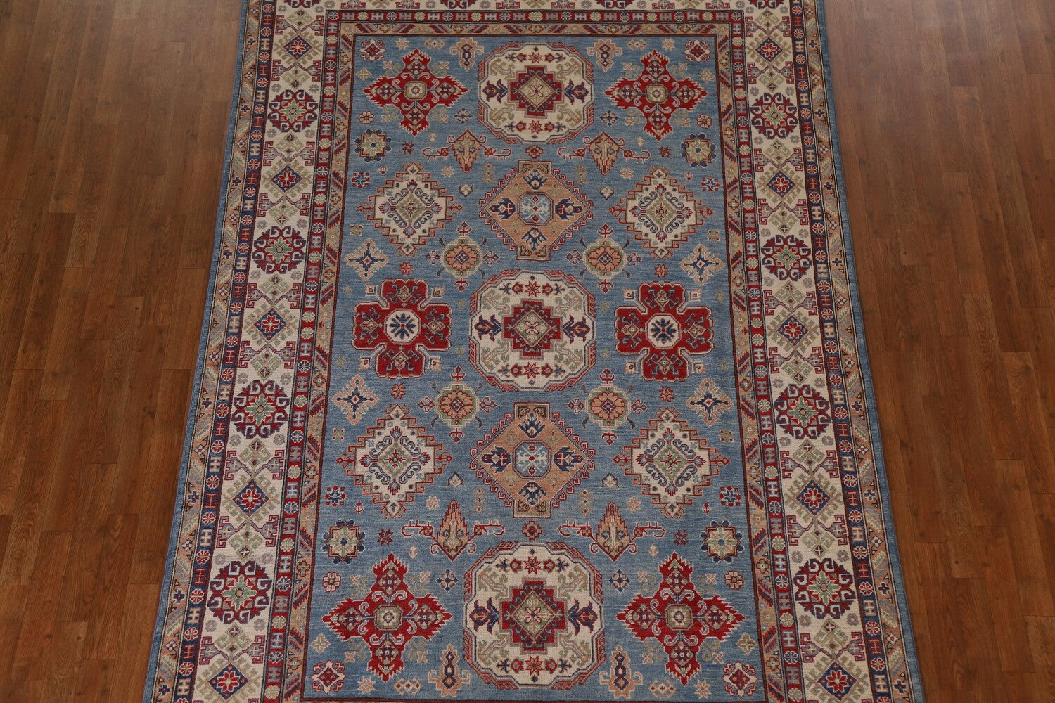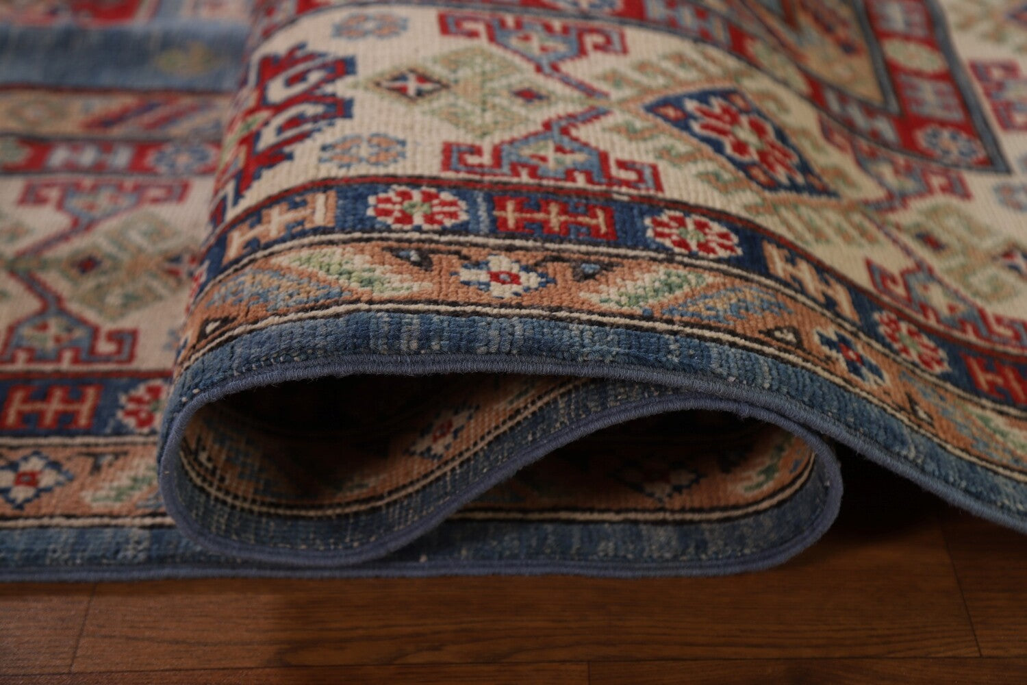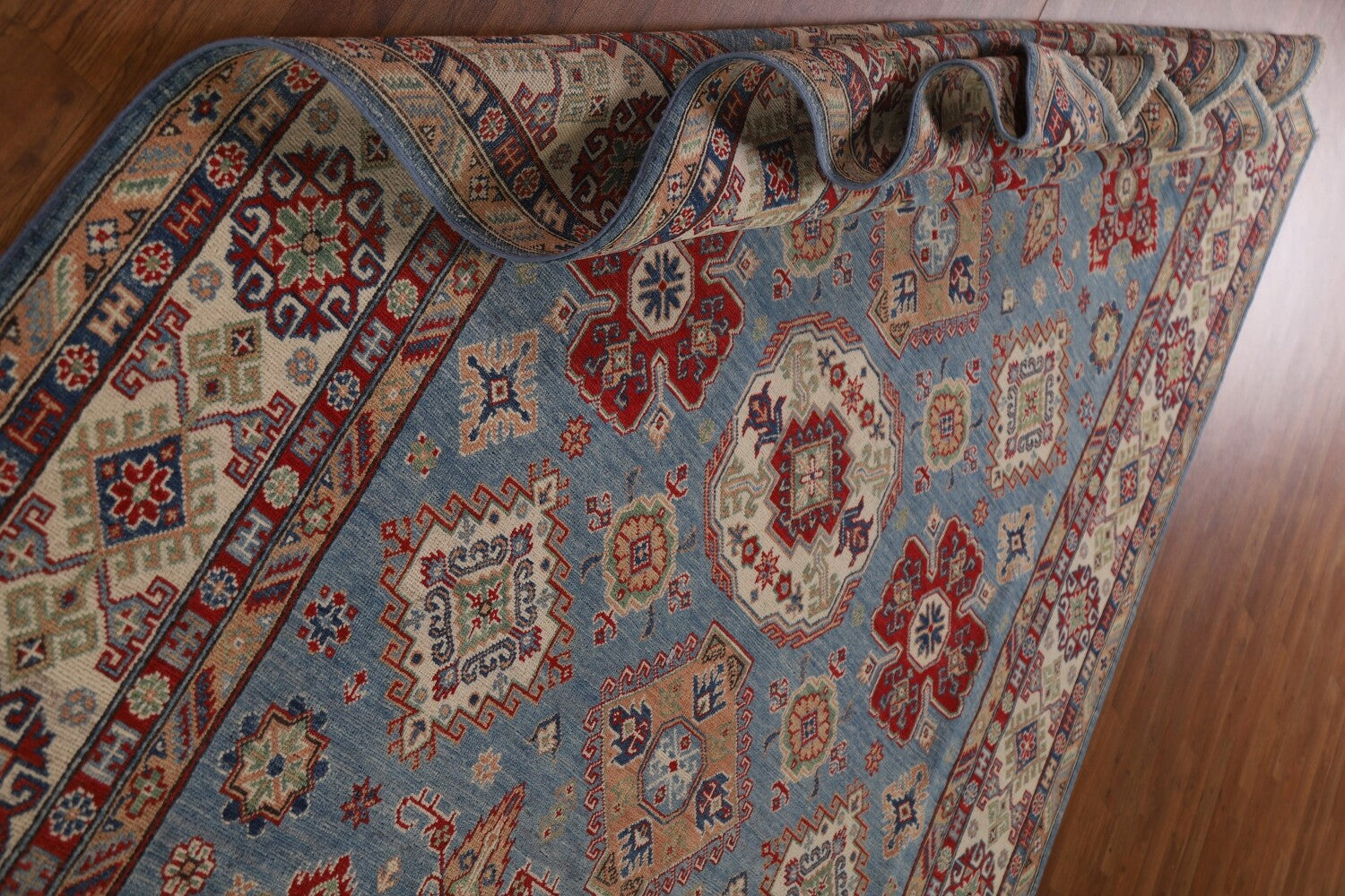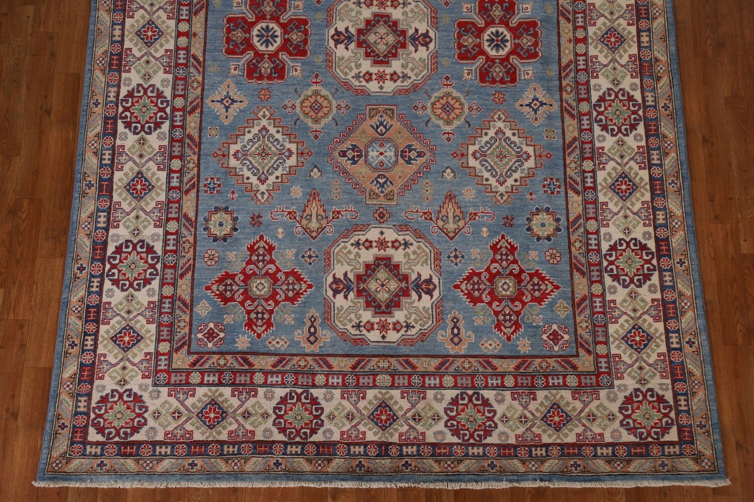 A Beautiful Genuine Pakistan Kazak rug is Hand Knotted by skillful weavers in Pakistan with 100% Wool Material. This rug is in condition. dimensions are 10' 2'' X 6' 6'' in foot and 310 X 198 in centimeter. the primary color is Navy Blue & Blues.