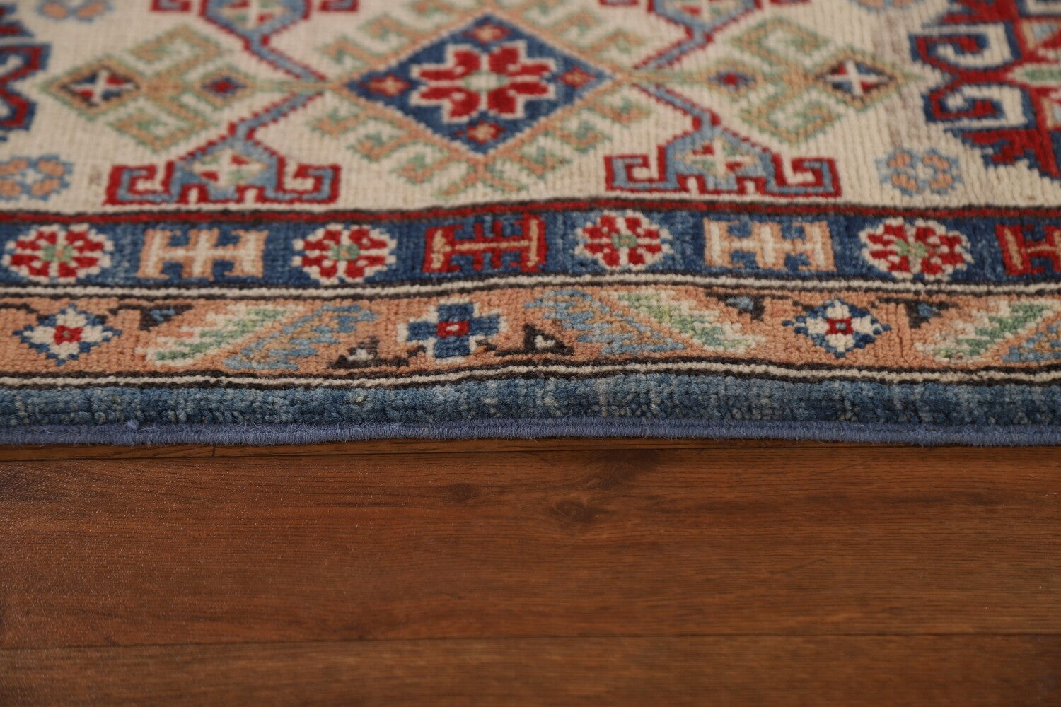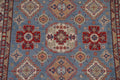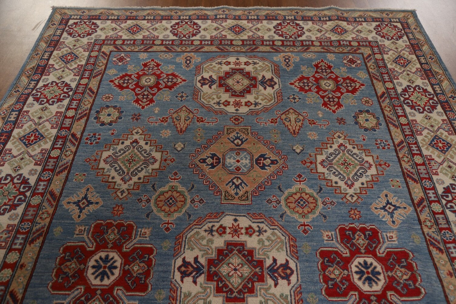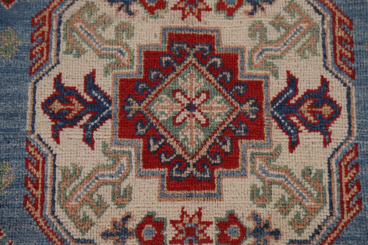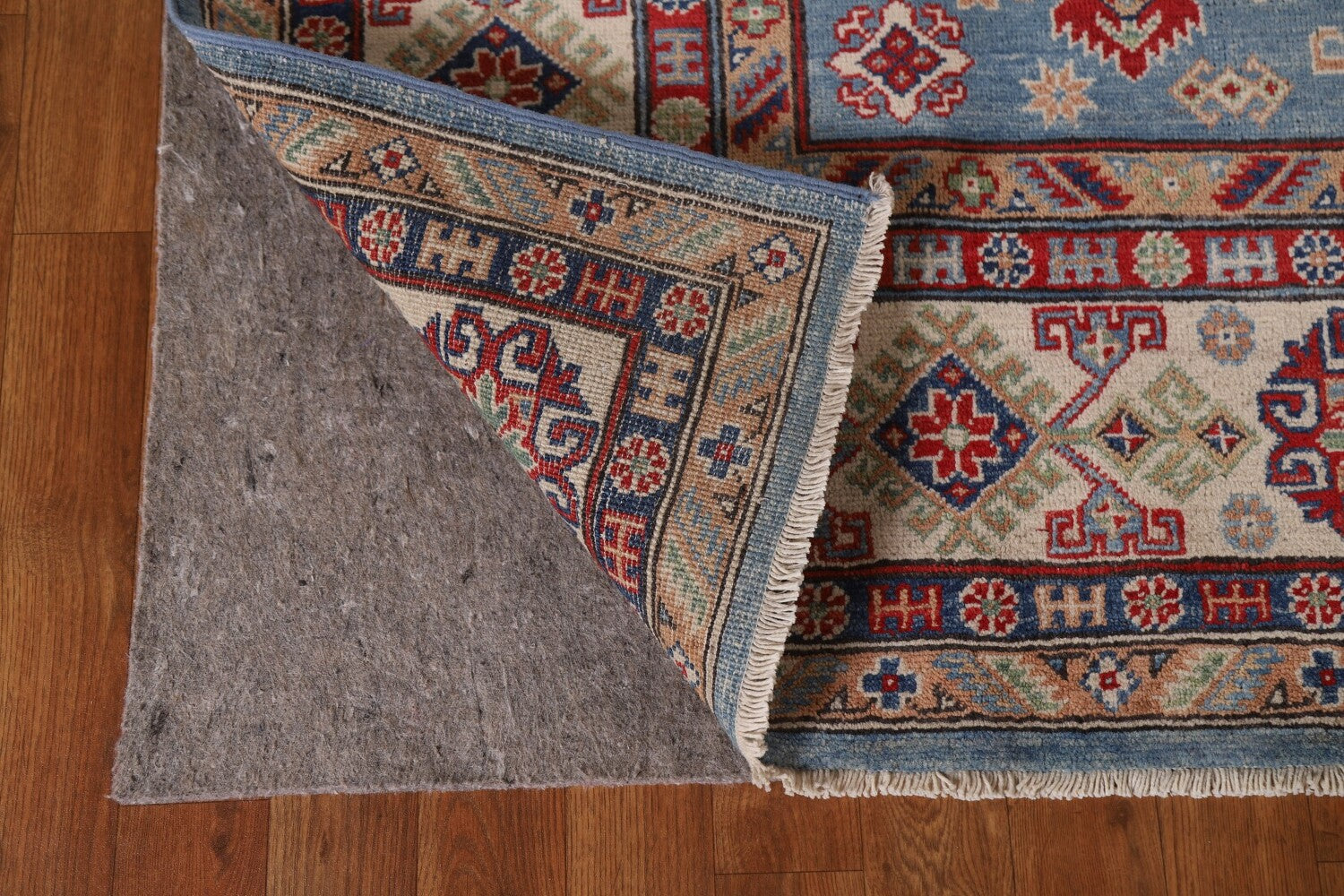 A Beautiful Genuine Pakistan Kazak rug is Hand Knotted by skillful weavers in Pakistan with 100% Wool Material. This rug is in condition. dimensions are 10' 2'' X 6' 6'' in foot and 310 X 198 in centimeter. the primary color is Navy Blue & Blues.