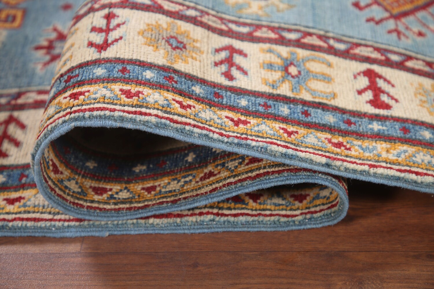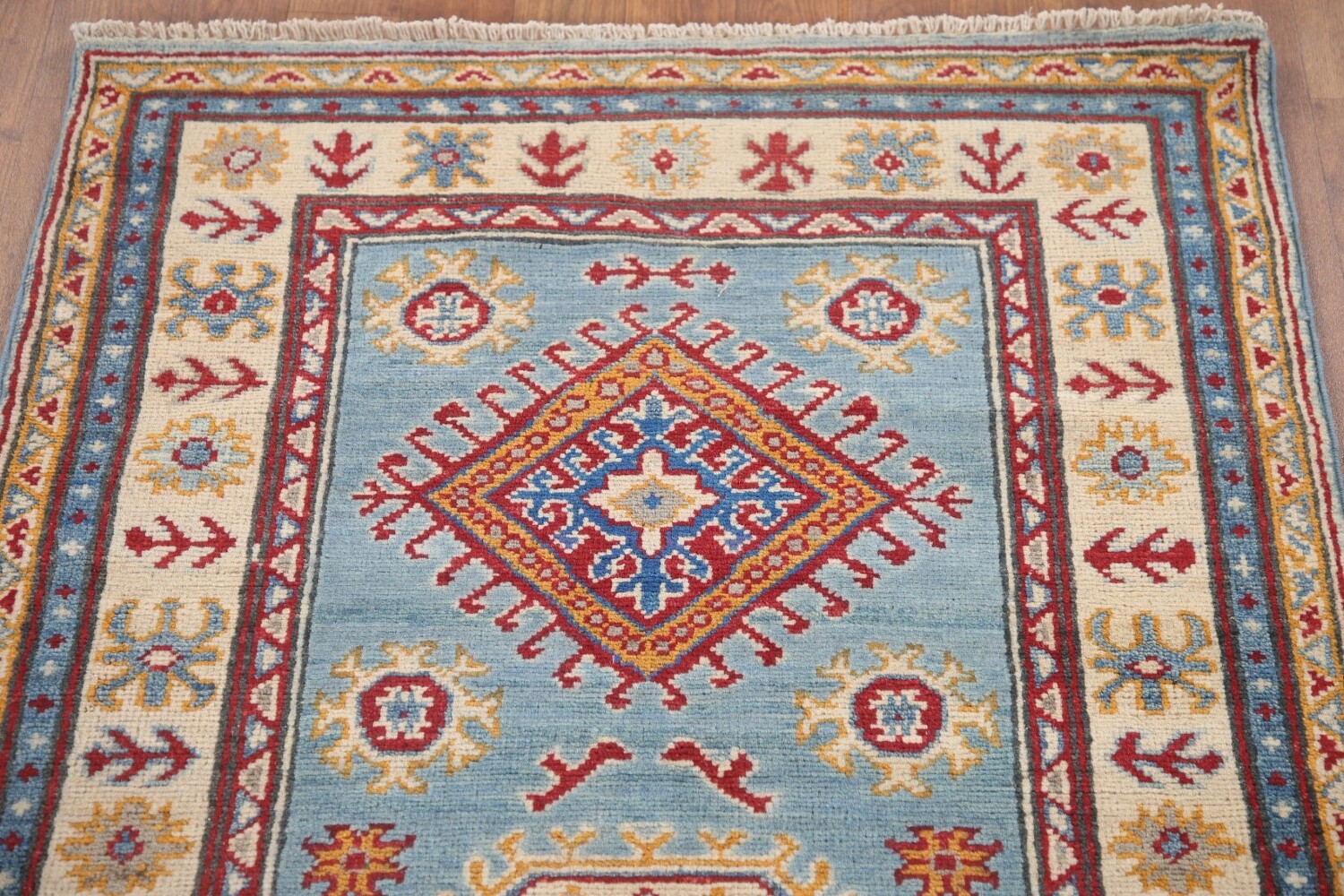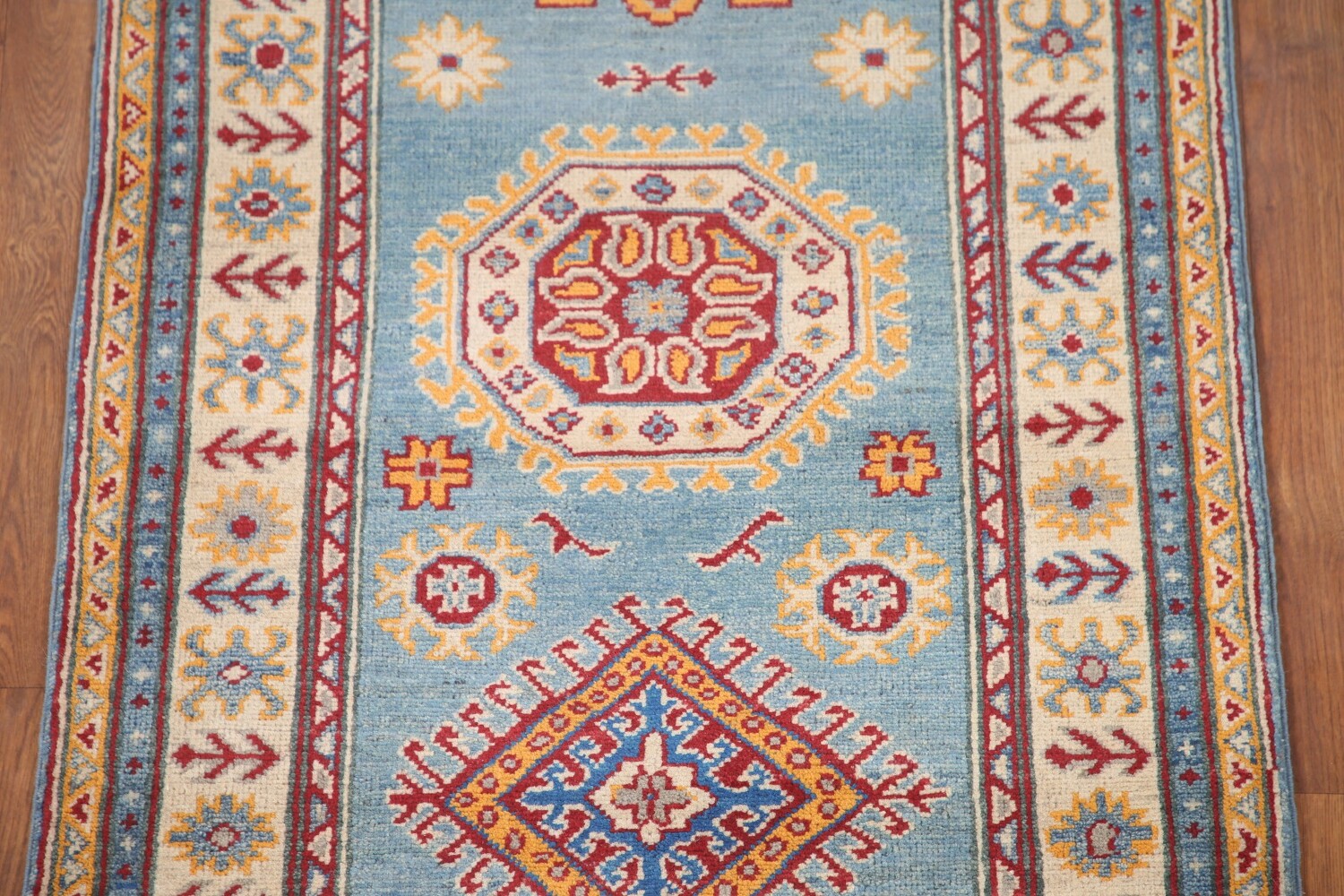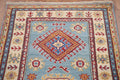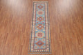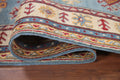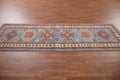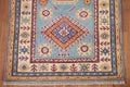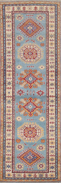 Light Blue Kazak Geometric Runner Rug 3x9