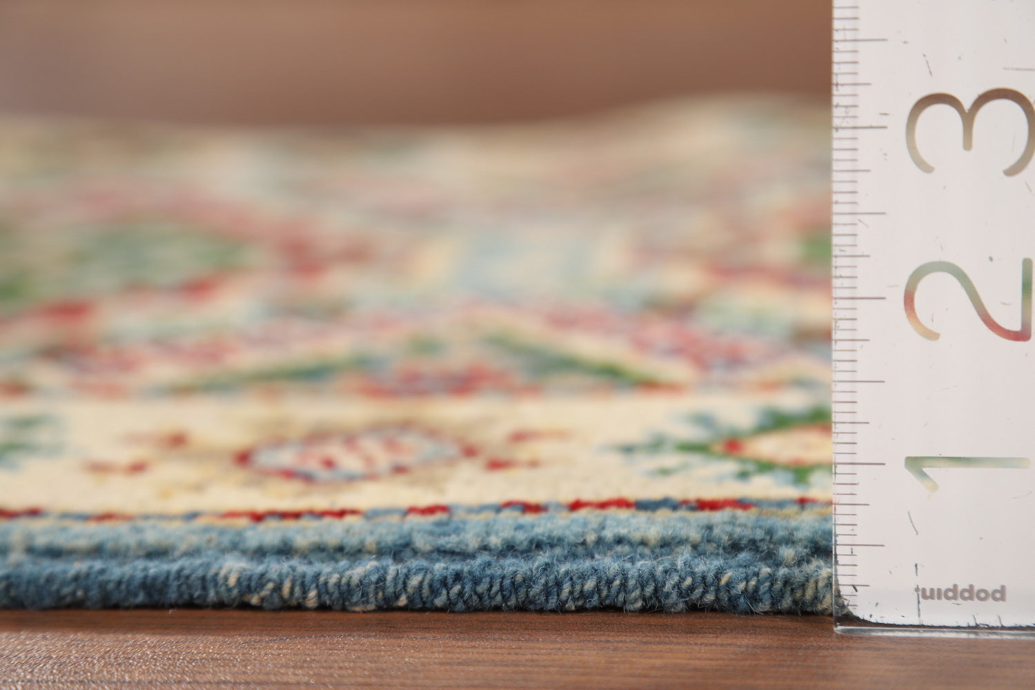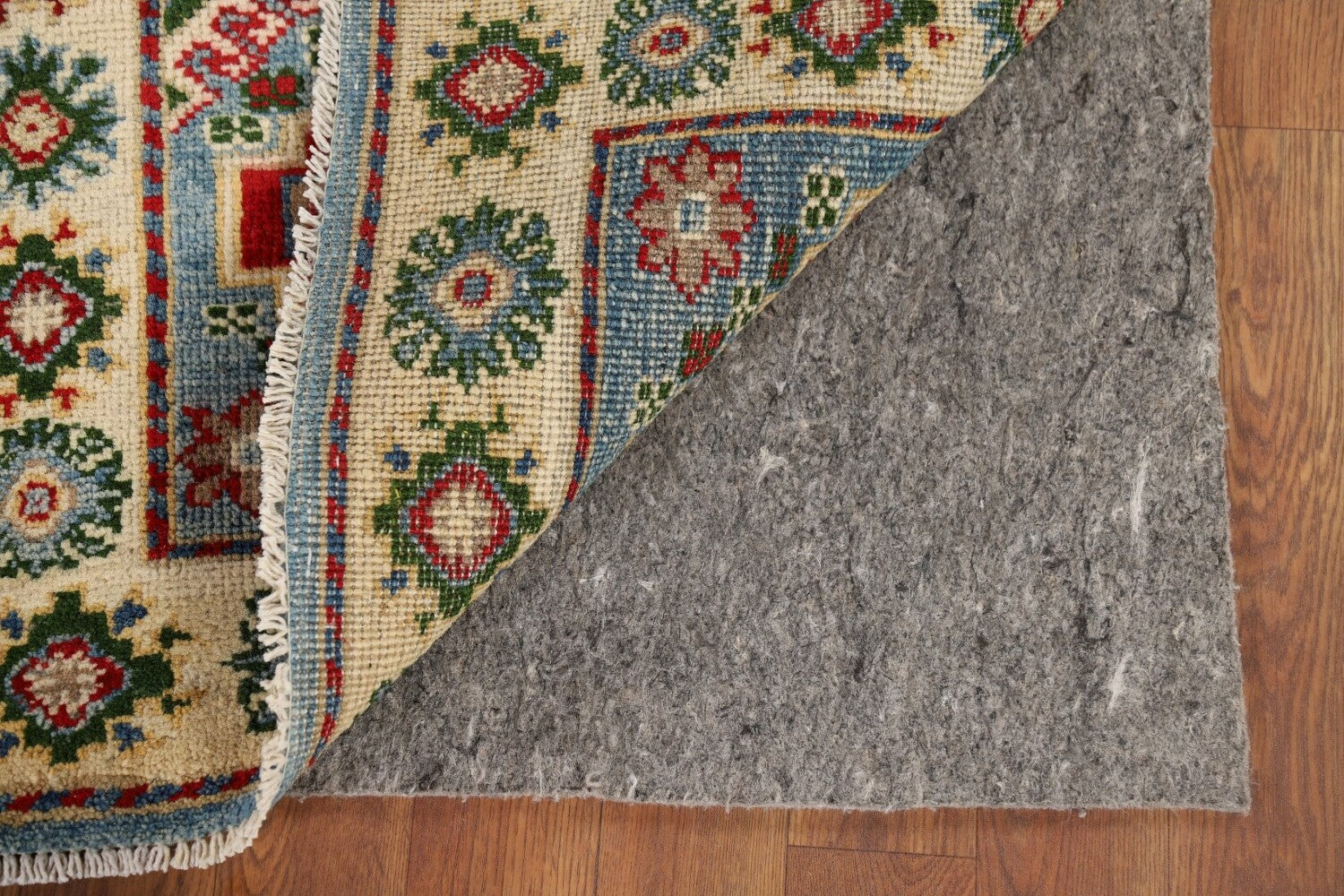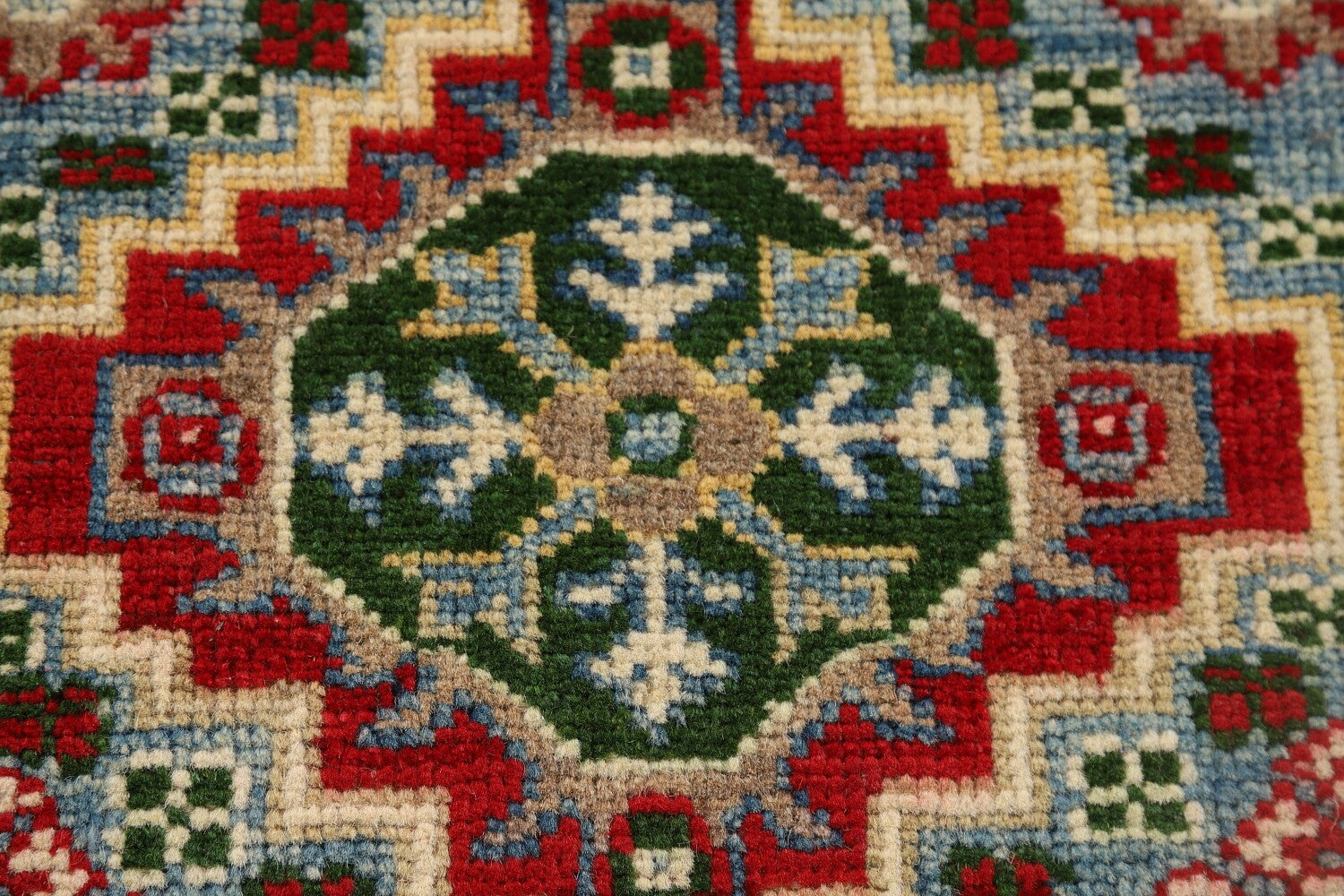 A Beautiful Genuine Pakistan Kazak rug is Hand Knotted by skillful weavers in Pakistan with 100% Wool Material. This rug is in New, First Quality condition. dimensions are 3' 0'' X 2' 1'' in foot and 91 X 64 in centimeter. the primary color is Navy Blue & Blues.