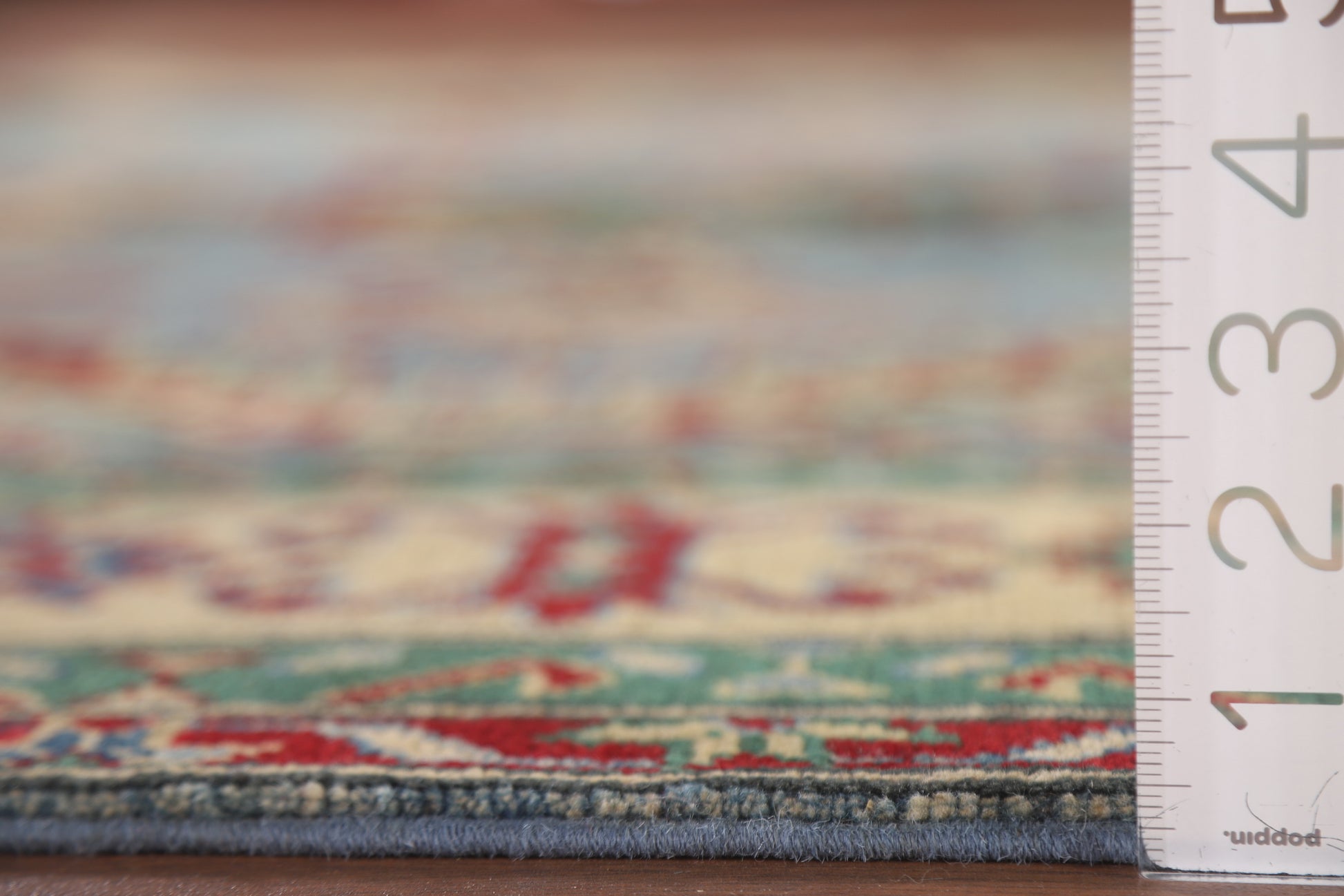 A Beautiful Genuine Pakistan Kazak rug is Hand Knotted by skillful weavers in Pakistan with 100% Wool Material. This rug is in New, First Quality condition. dimensions are 9' 9'' X 6' 6'' in foot and 297 X 198 in centimeter. the primary color is Navy Blue & Blues.