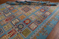 A Beautiful Genuine Pakistan Kazak rug is Hand Knotted by skillful weavers in Pakistan with 100% Wool Material. This rug is in condition. dimensions are 11' 7'' X 8' 4'' in foot and 353 X 254 in centimeter. the primary color is Navy Blue & Blues.