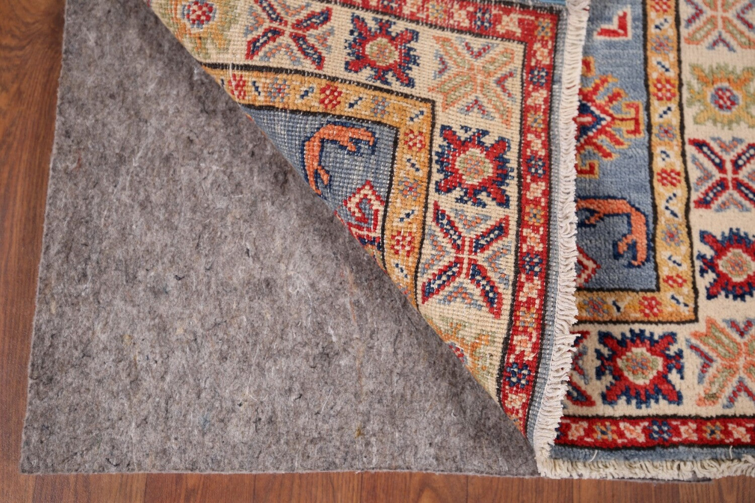 A Beautiful Genuine Pakistan Kazak rug is Hand Knotted by skillful weavers in Pakistan with 100% Wool Material. This rug is in New, First Quality condition. dimensions are 2' 11'' X 2' 1'' in foot and 89 X 64 in centimeter. the primary color is Navy Blue & Blues.