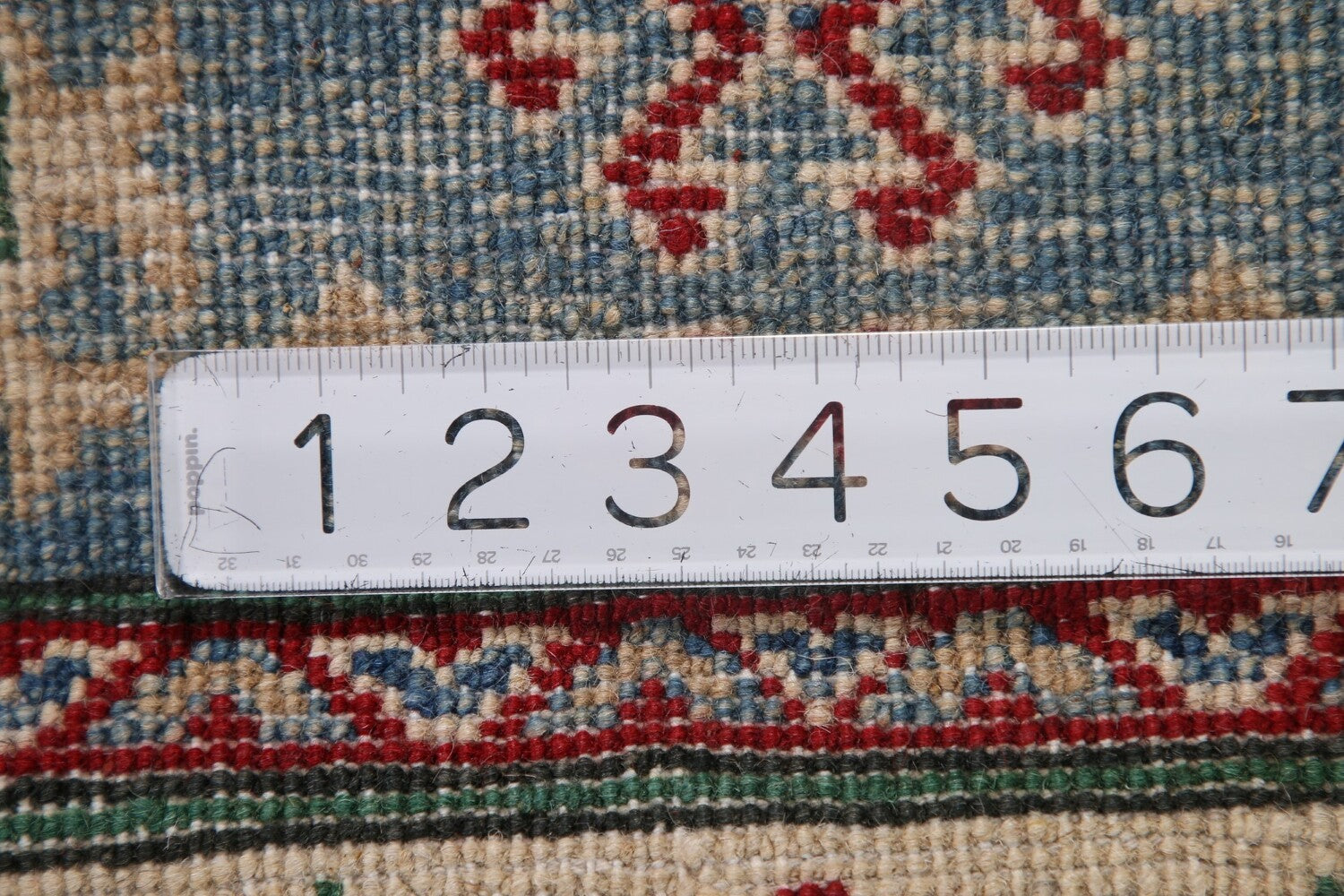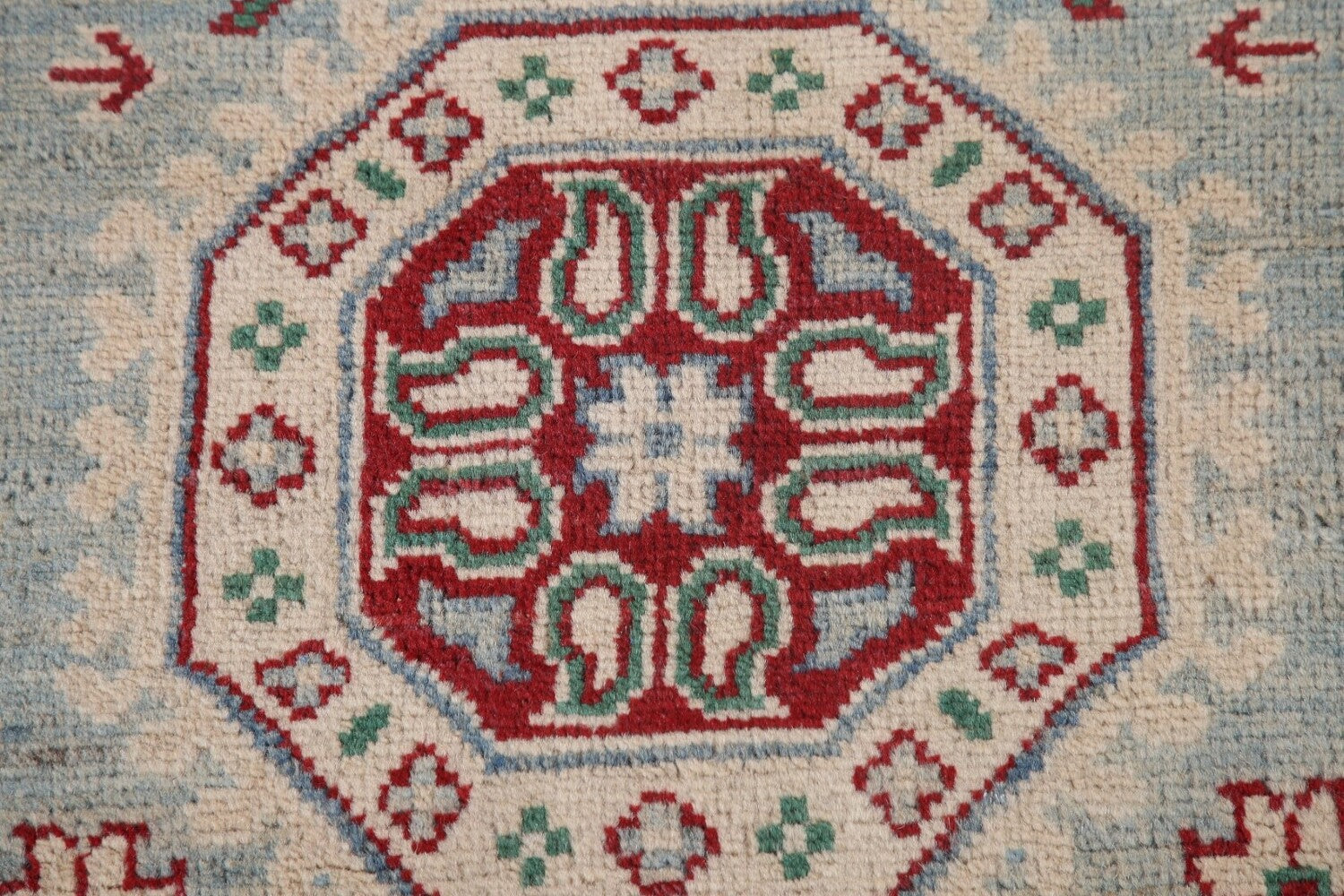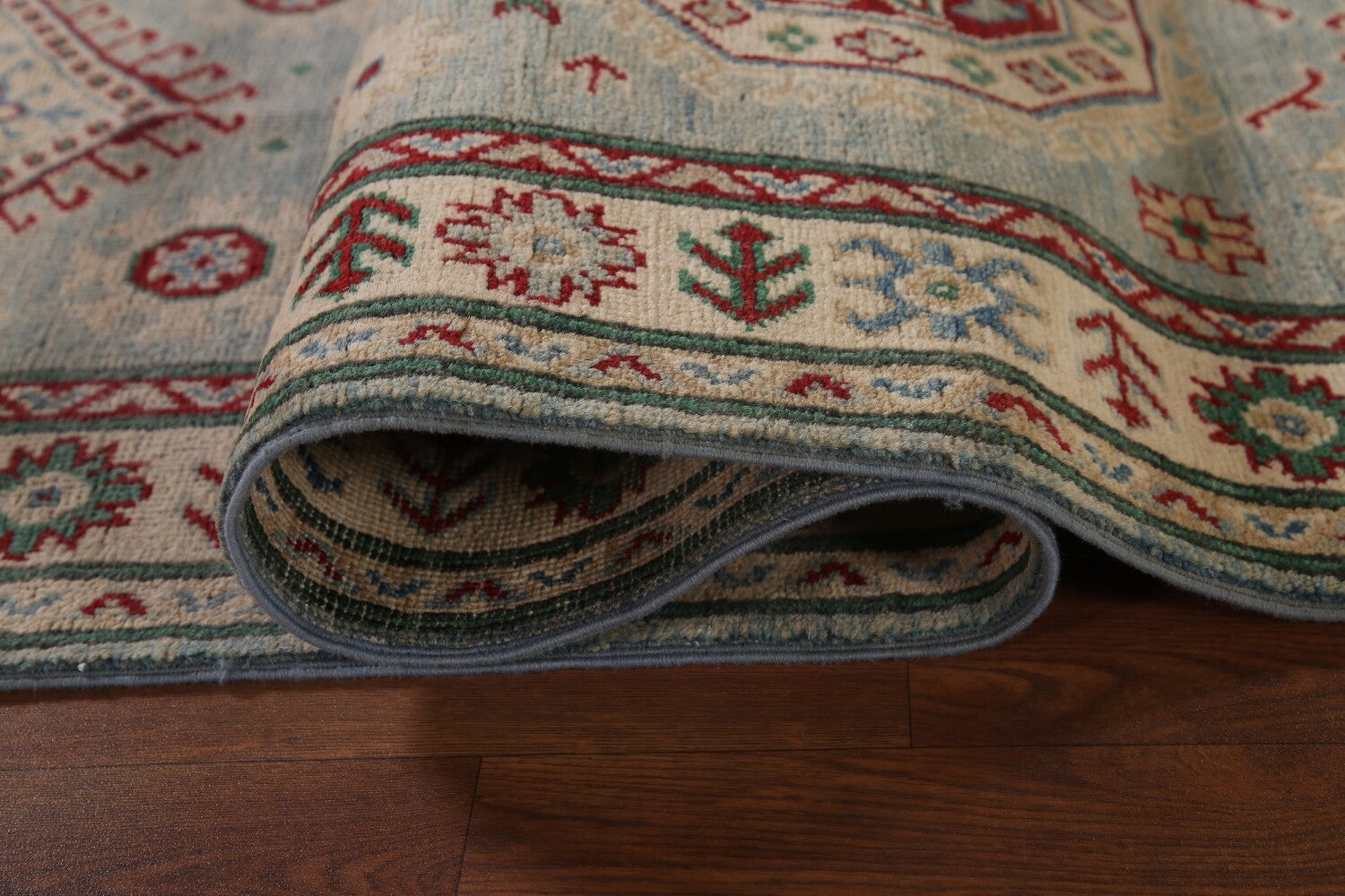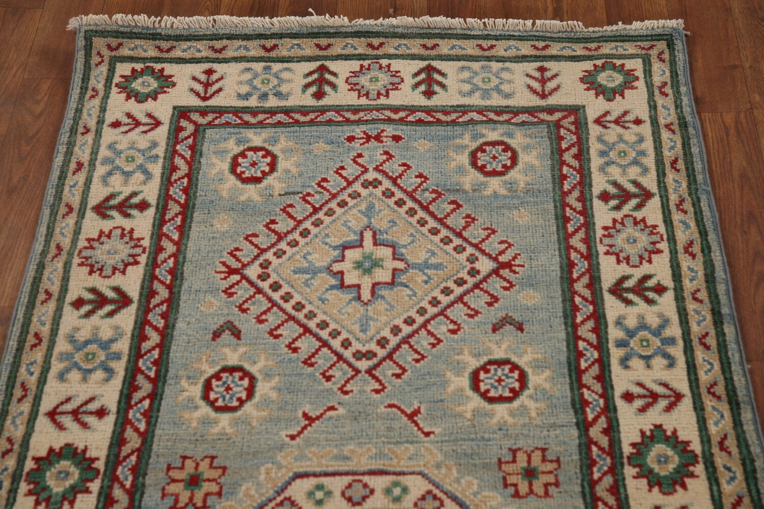 A Beautiful Genuine Pakistan Kazak rug is Hand Knotted by skillful weavers in Pakistan with 100% Wool Material. This rug is in New, First Quality condition. dimensions are 13' 4'' X 2' 8'' in foot and 406 X 81 in centimeter. the primary color is Navy Blue & Blues.
