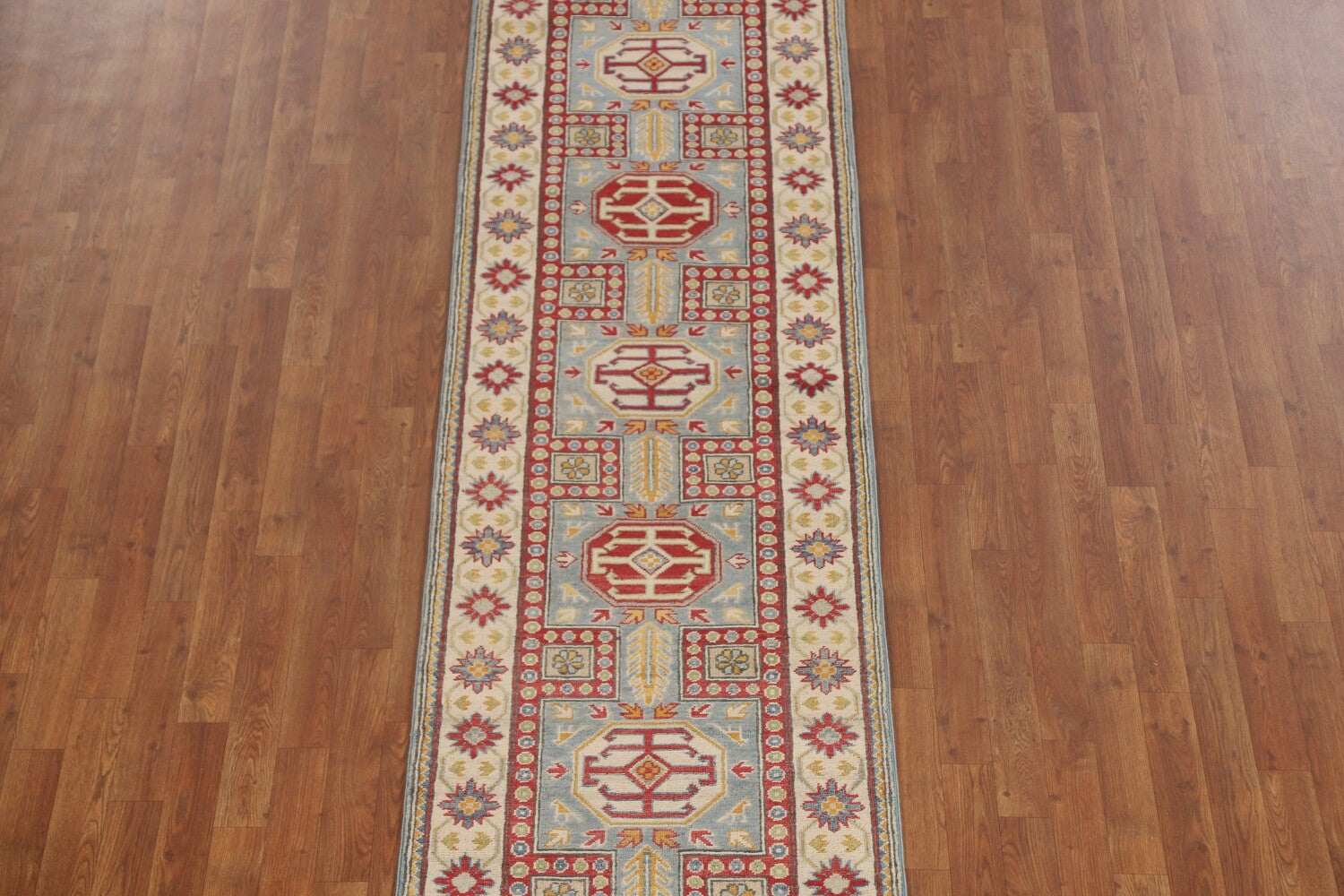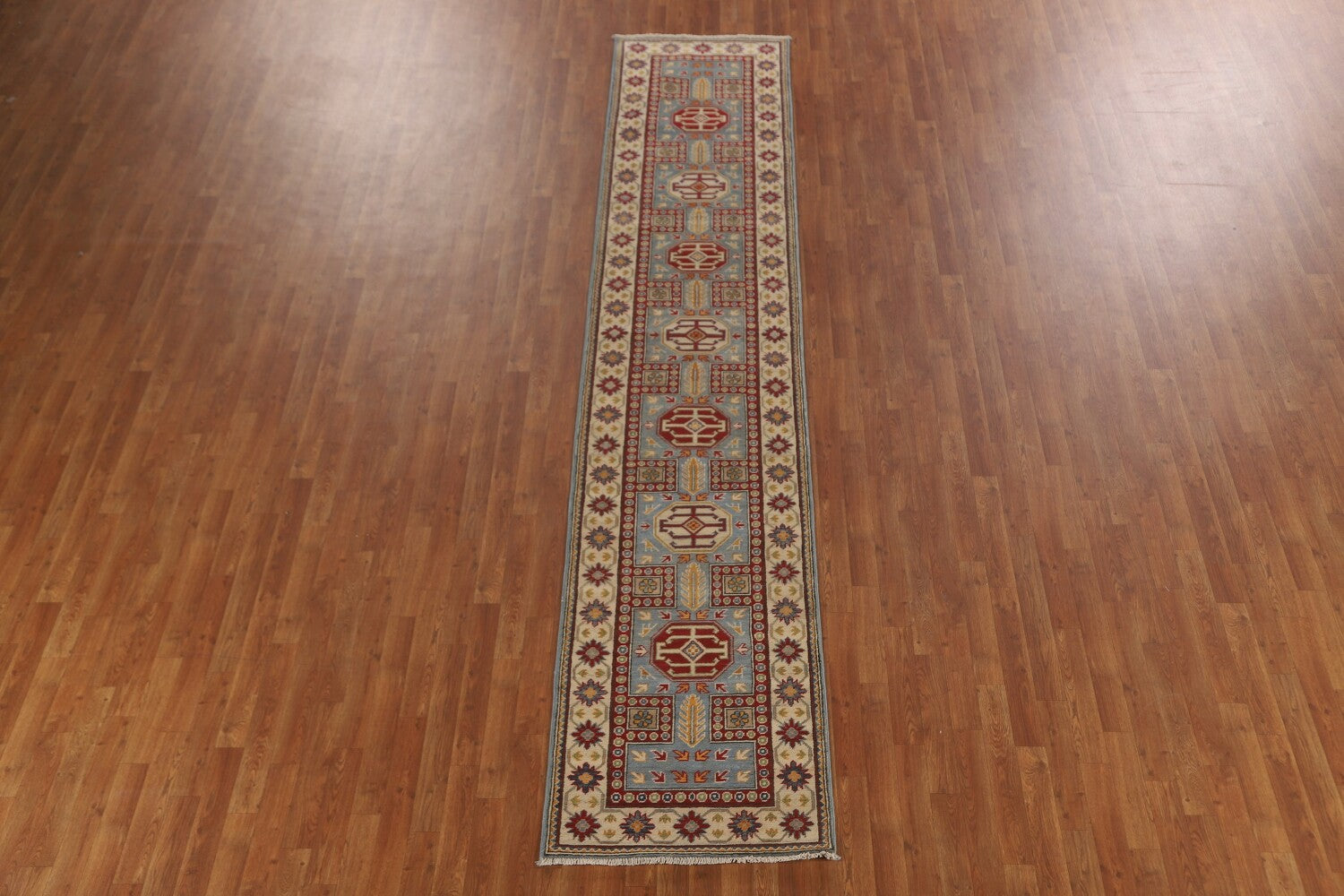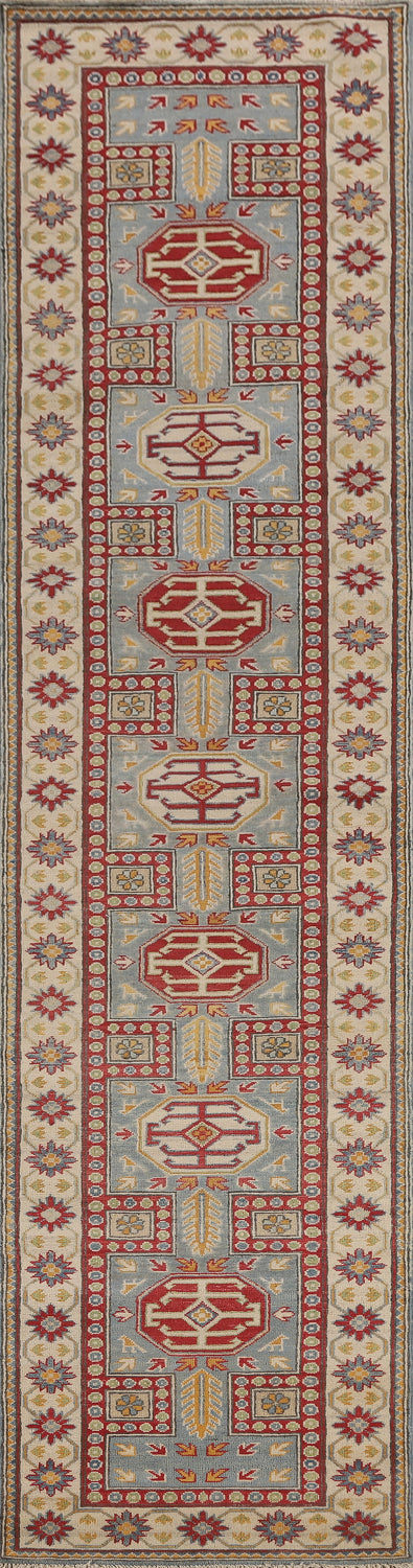 Light Blue Kazak Oriental Runner Rug 3x13