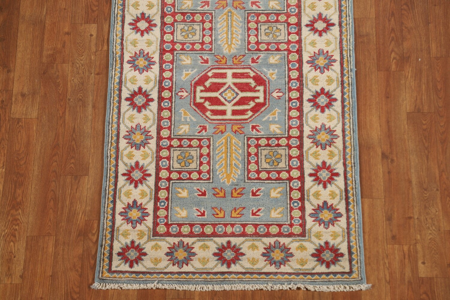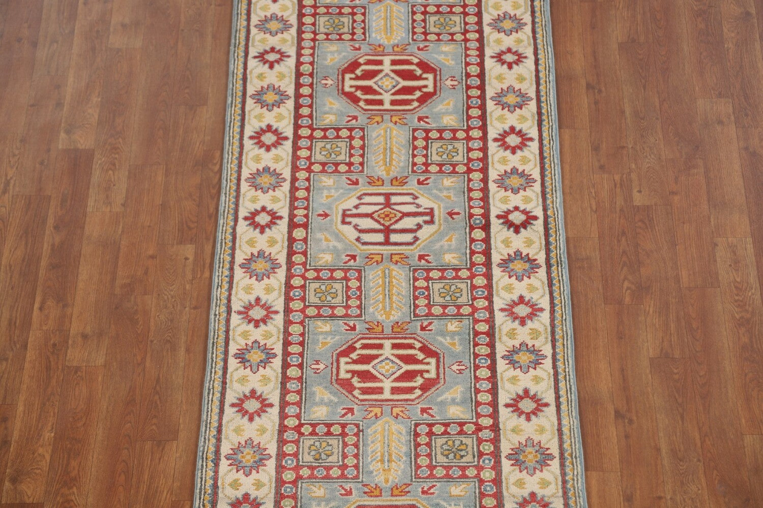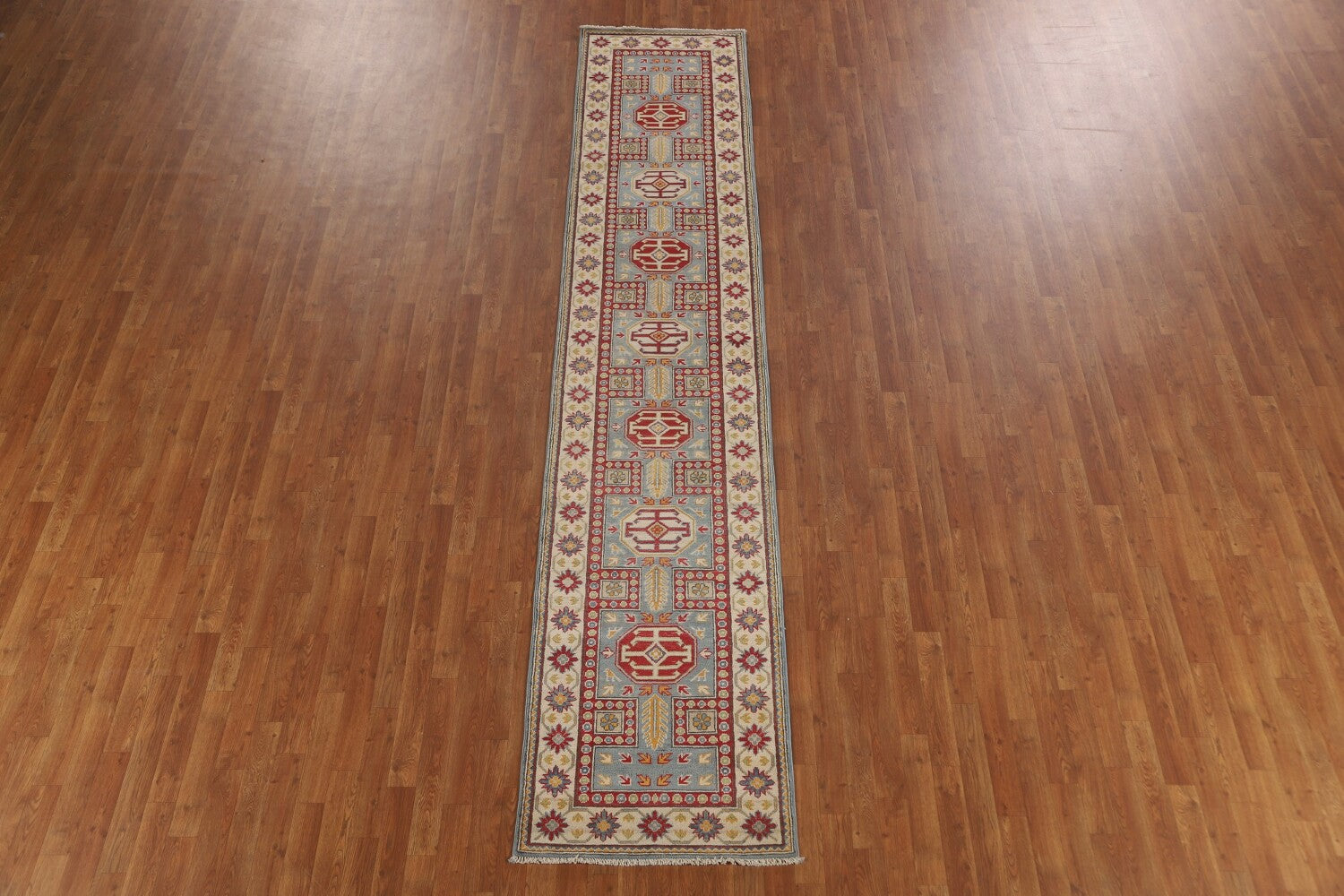 Light Blue Kazak Oriental Runner Rug 3x13