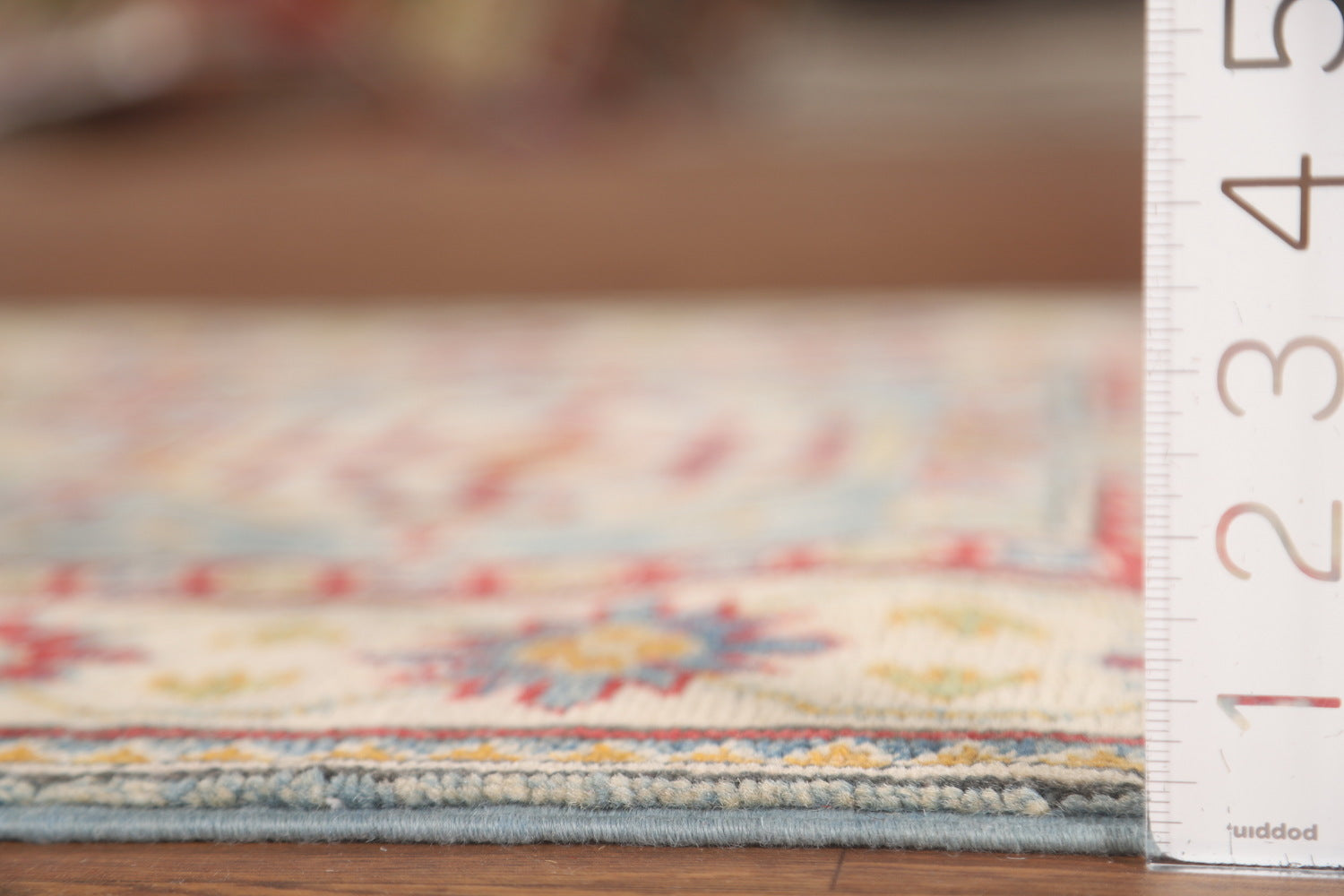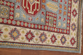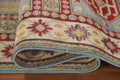 A Beautiful Genuine Pakistan Kazak rug is Hand Knotted by skillful weavers in Pakistan with 100% Wool Material. This rug is in New, First Quality condition. dimensions are 13' 1'' X 2' 6'' in foot and 399 X 76 in centimeter. the primary color is Navy Blue & Blues.