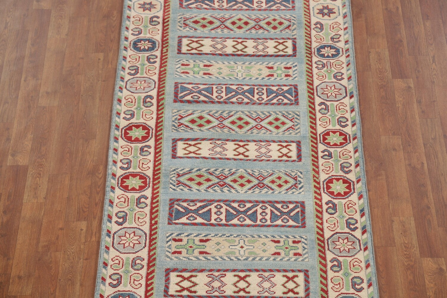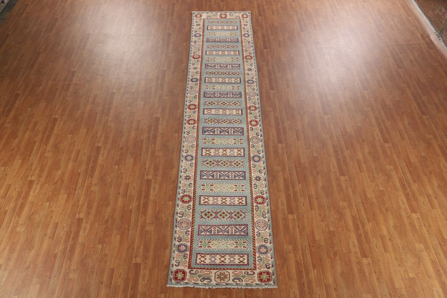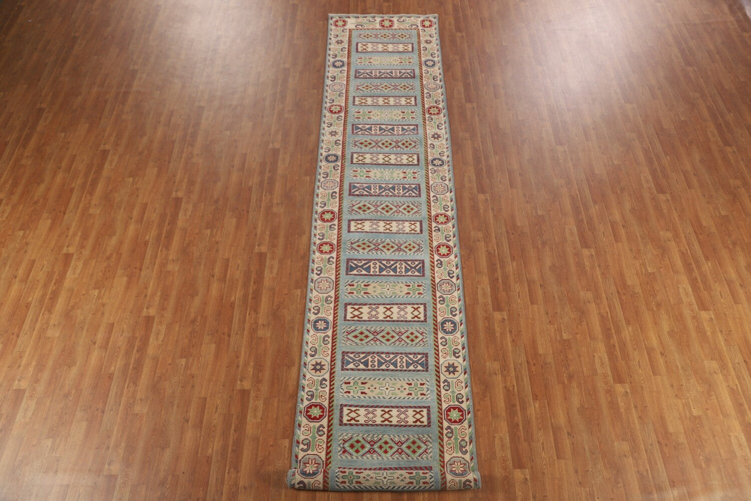 Light Blue Kazak Oriental Runner Rug 3x16