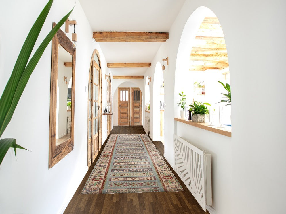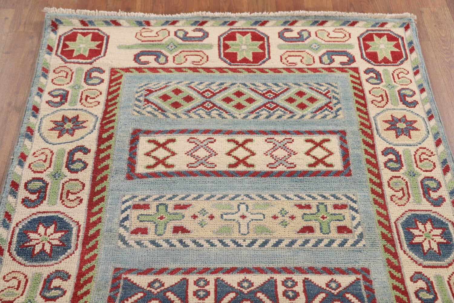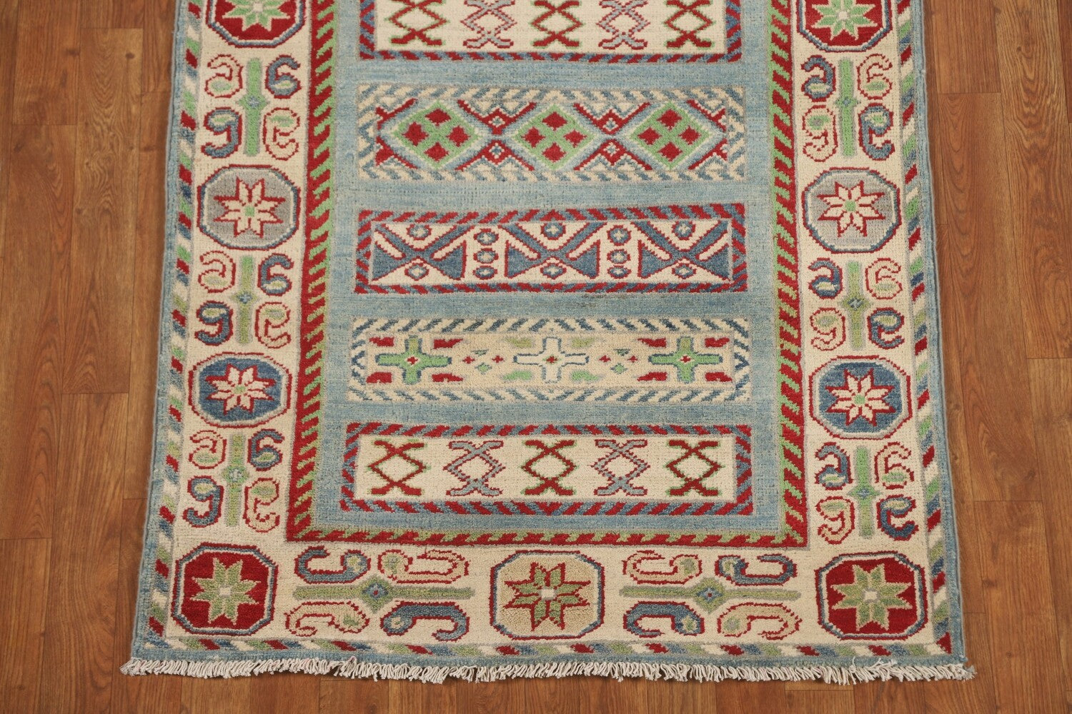 Light Blue Kazak Oriental Runner Rug 3x16